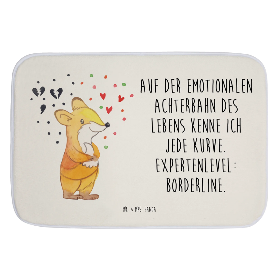 Mit einem einzigartigen Design, das einen emotionalen Fuchs zeigt, der zwischen gebrochenen und verliebten Herzen wechselt, bringt diese Badematte eine besondere Botschaft in dein Bad. Der Spruch 'Auf der emotionalen Achterbahn des Lebens kenne ich jede Kurve. Expertenlevel: Borderline.' macht deutlich, wie wichtig es ist, die Höhen und Tiefen des Lebens zu akzeptieren.
