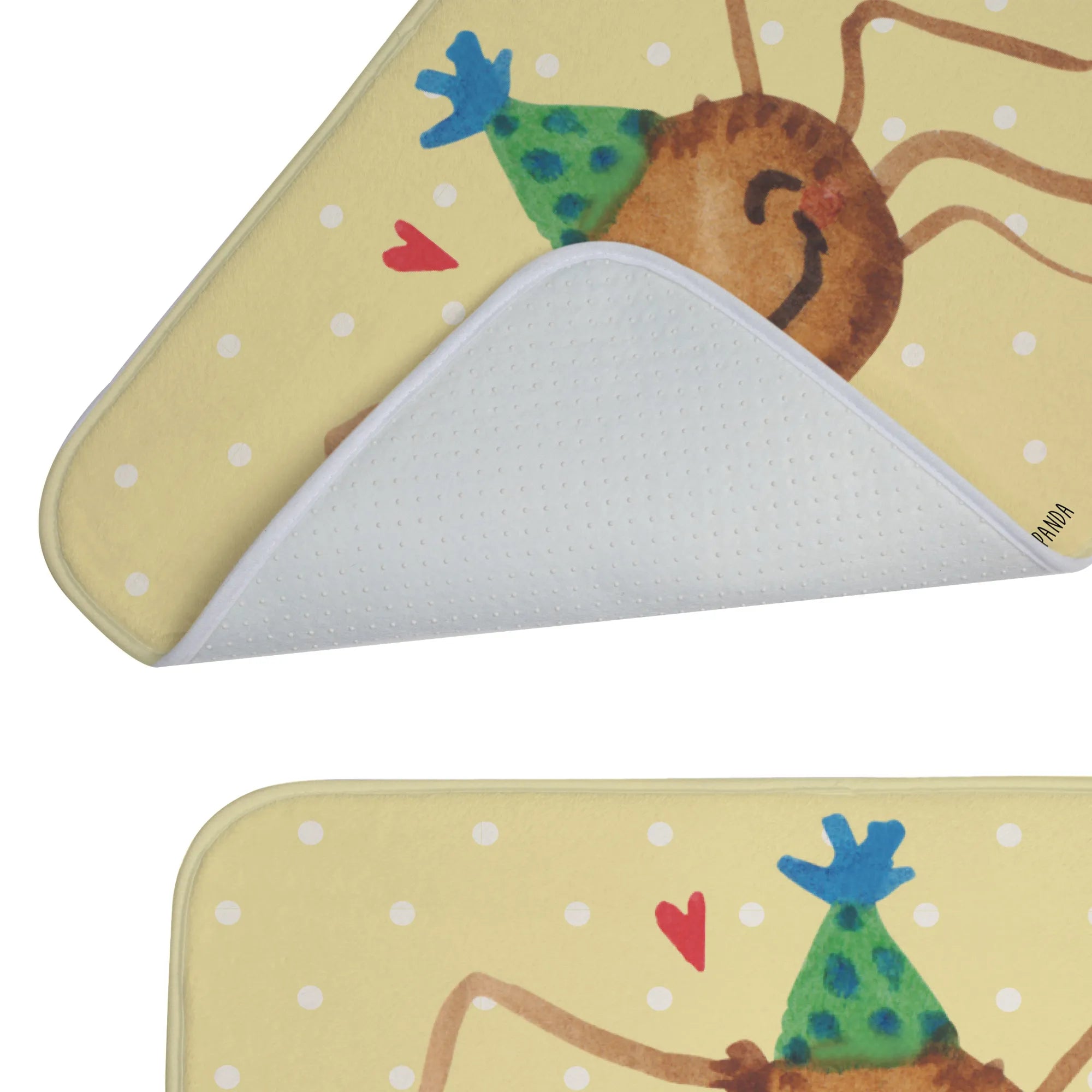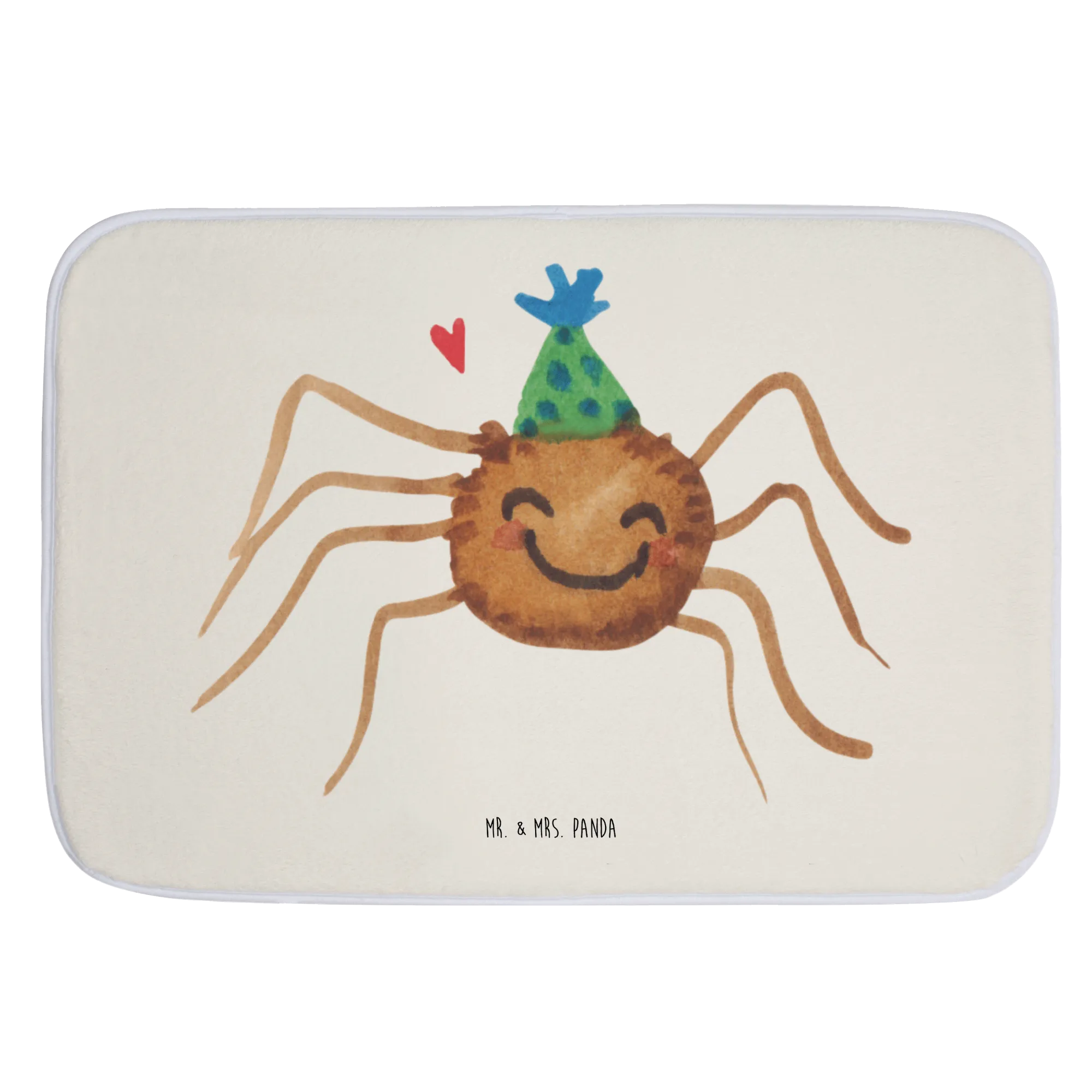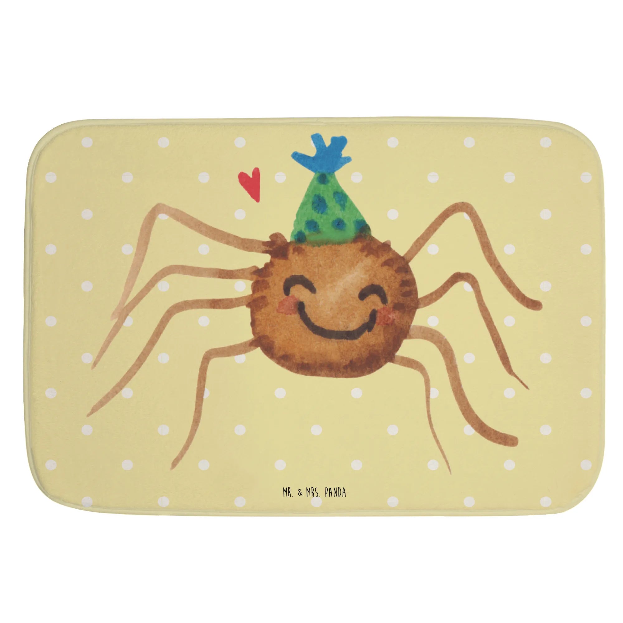 Die Badematte Spinne Agathe Party von Mr. & Mrs. Panda ist der perfekte Begleiter für dein Badezimmer. Mit einem fröhlichen Motiv der bezaubernden Spinne Agathe, die mit einem Partyhut geschmückt ist, bringt dieser Badvorleger nicht nur eine tolle Optik, sondern auch viel Freude und Motivation in deinen Alltag.