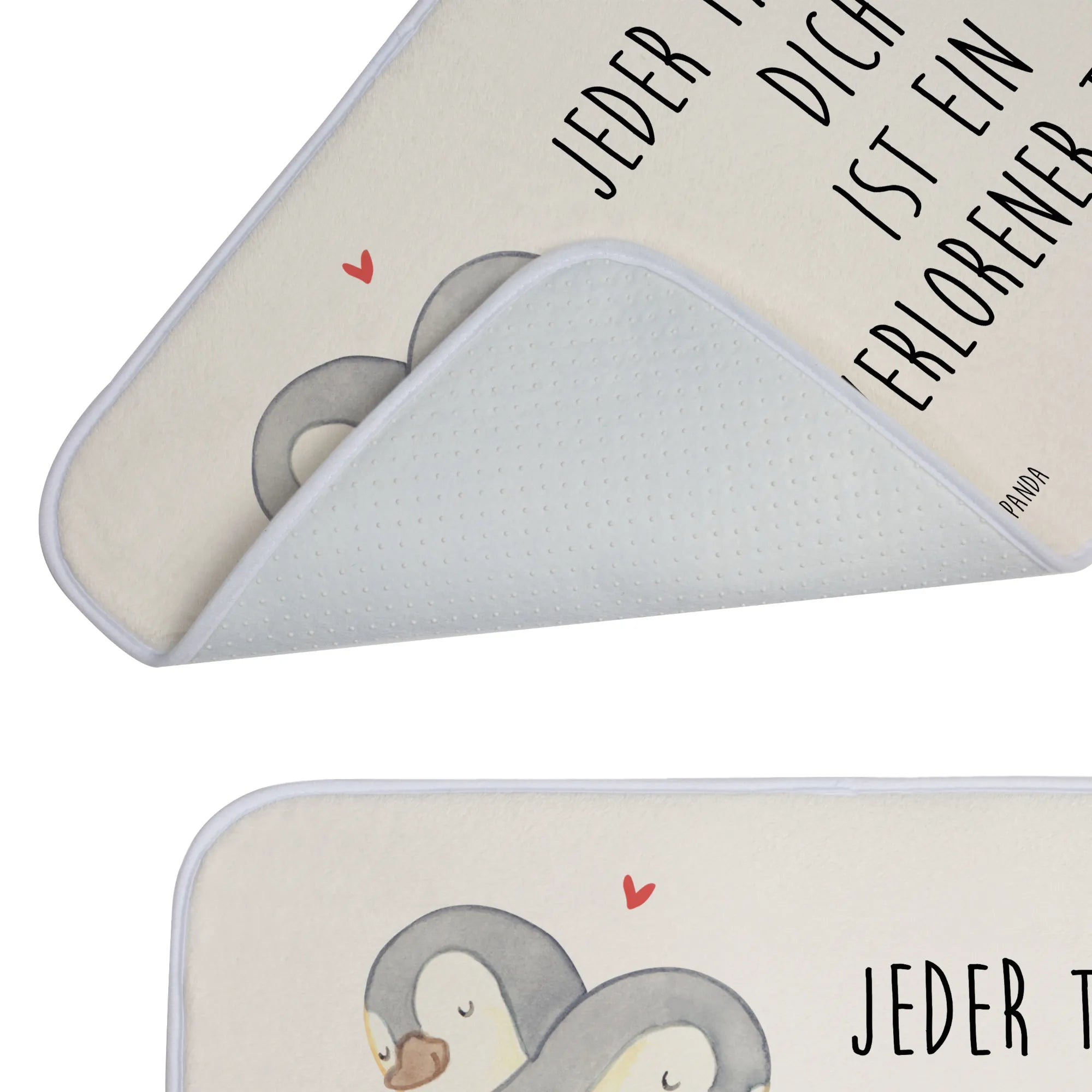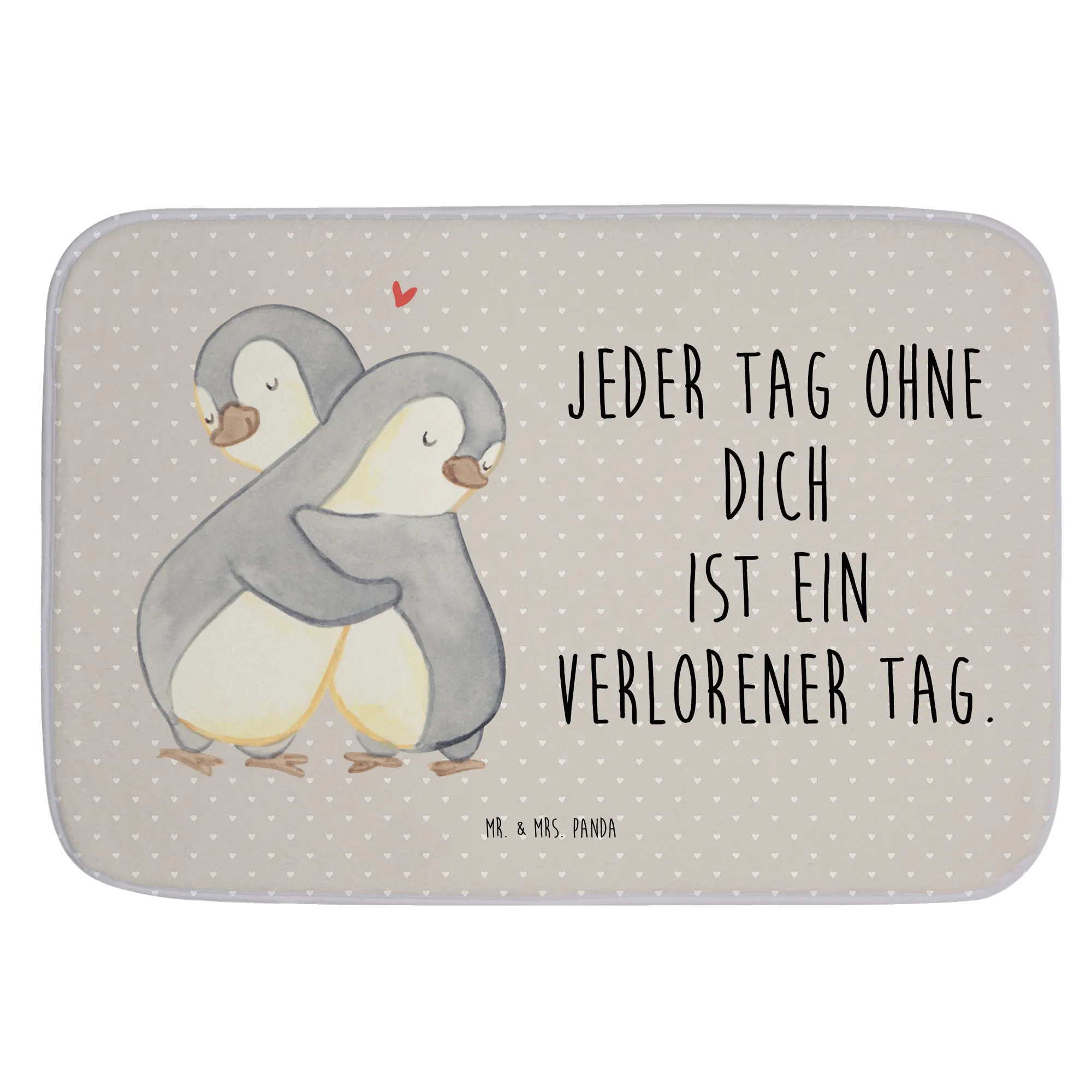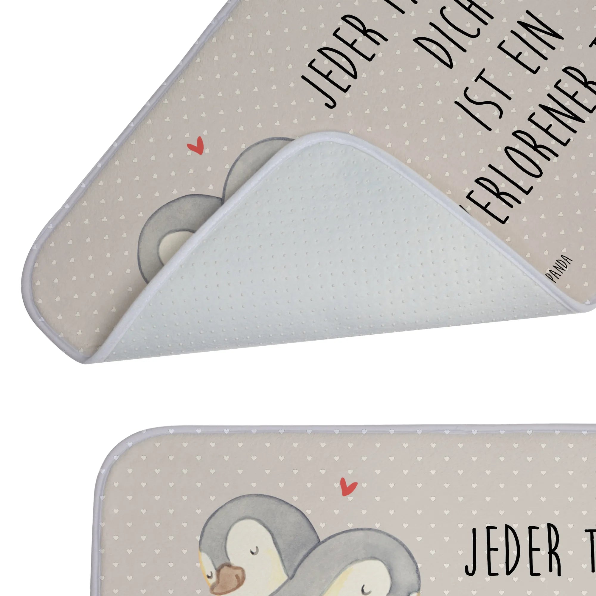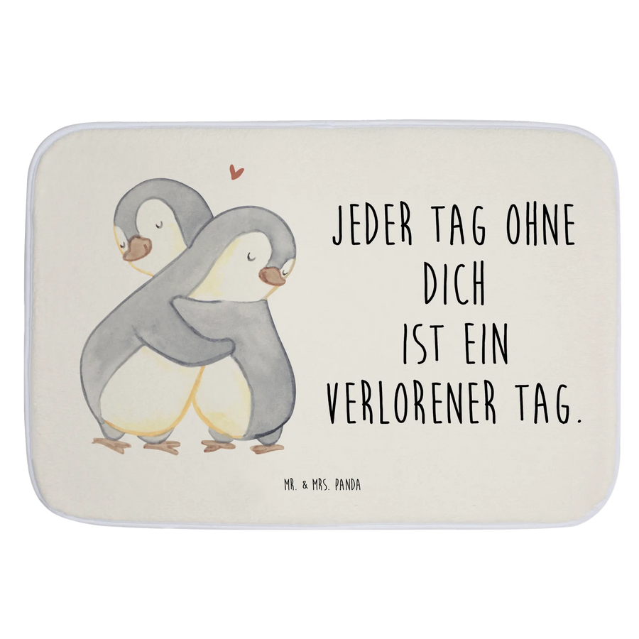Entdecke die perfekte Ergänzung für dein Badezimmer mit unserem zauberhaften Badvorleger "Pinguine Kuscheln" aus der Sammlung Liebe von Mr. & Mrs. Panda! Diese Badematte ist mehr als nur ein nützlicher Gegenstand – sie verkörpert die Magie der Liebe und ist ein wunderbares Geschenk für jeden, der etwas Besonderes schätzt. Die zwei süßen Pinguine, die sich liebevoll umarmen, sorgen für ein warmes und gemütliches Ambiente in deinem Zuhause. Über den Pinguinen schwebt ein rotes Herz, das die liebevolle Atmosphäre unterstreicht.