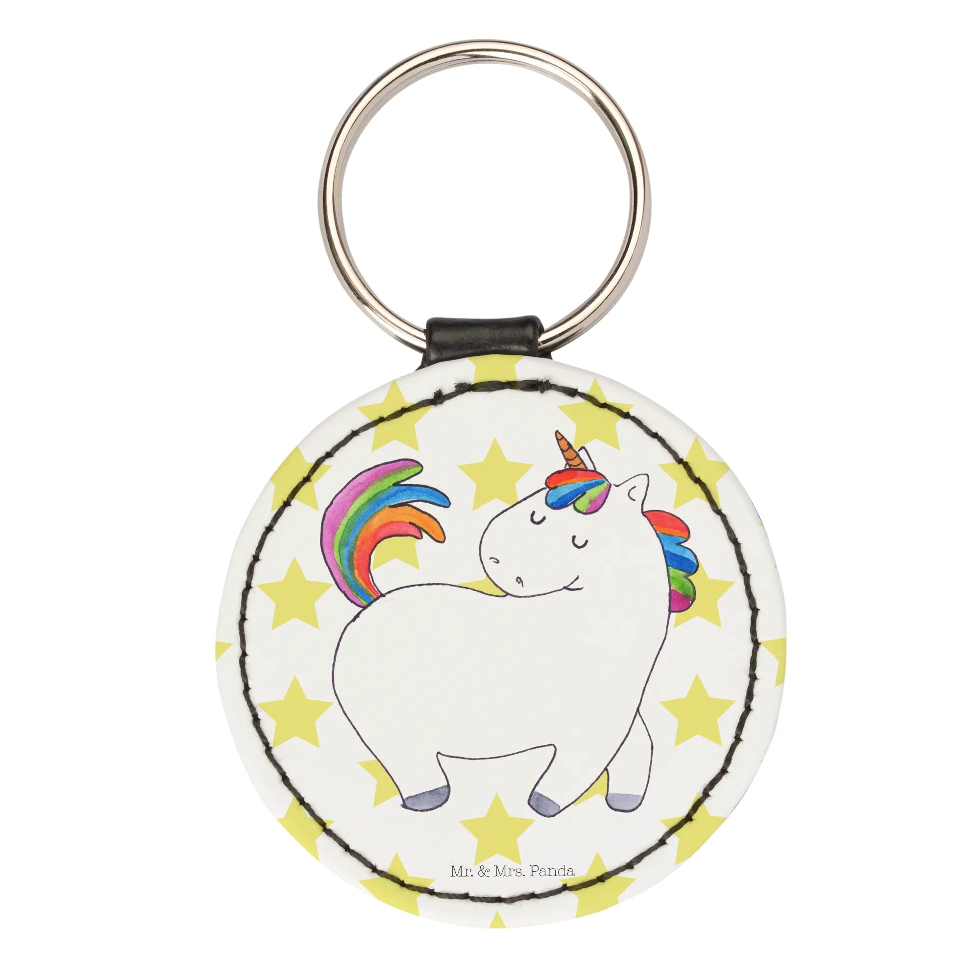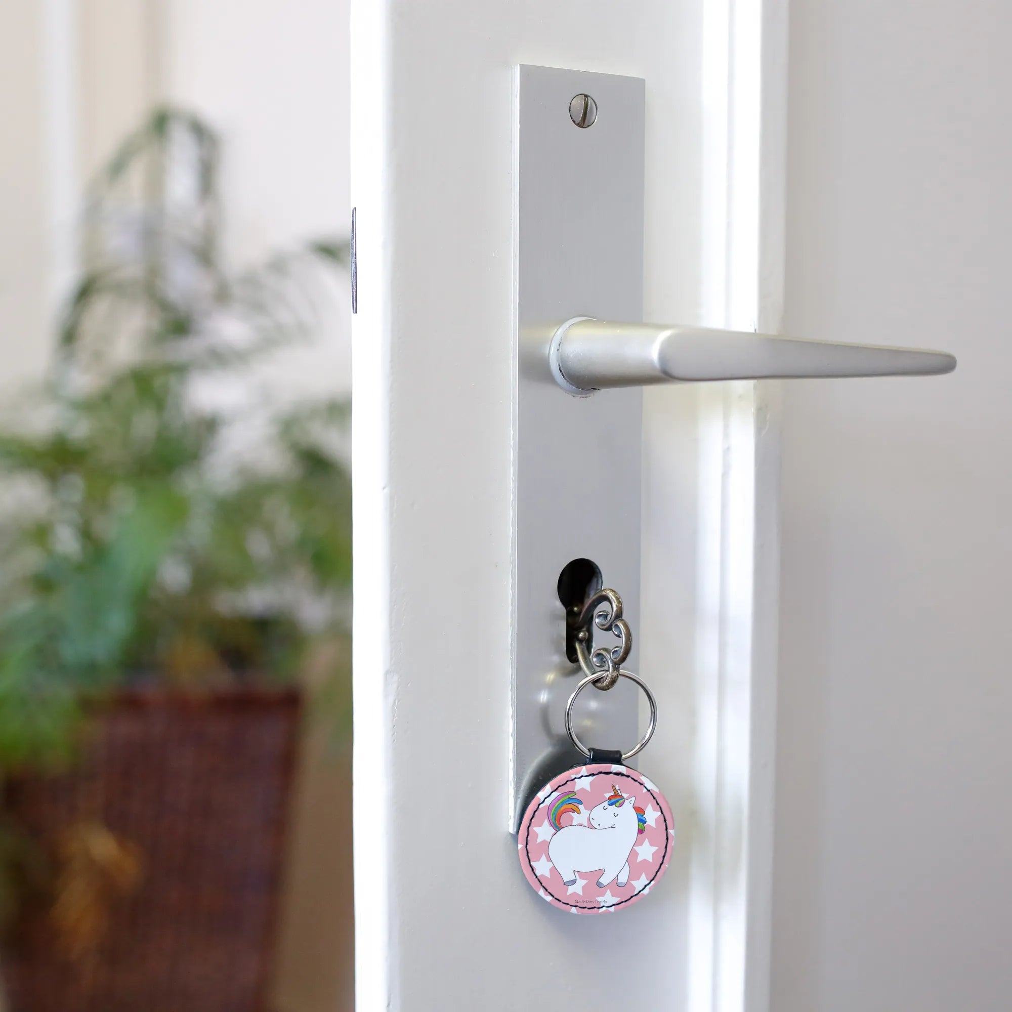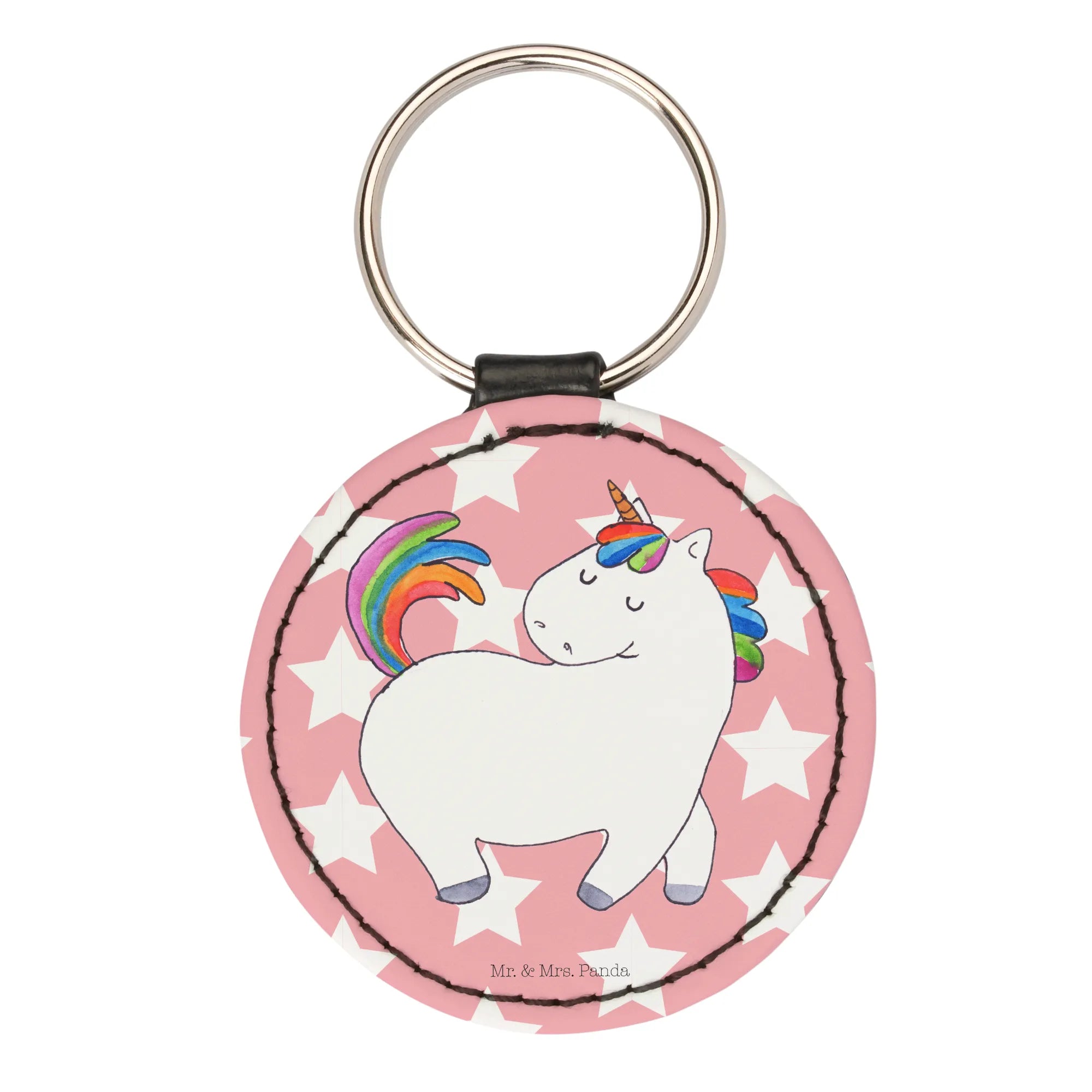 Okrągły brelok jednorożec dumnie kroczyć - Pastelowy czerwony