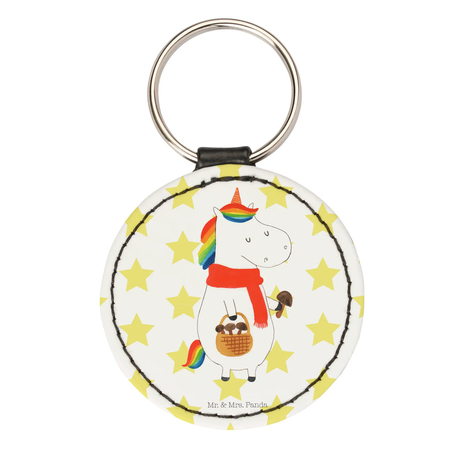 Okrągły brelok Jednorożec grzyb - Biały