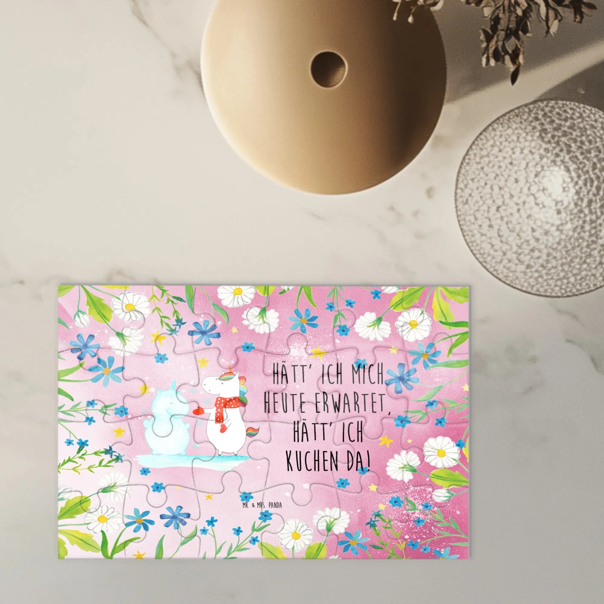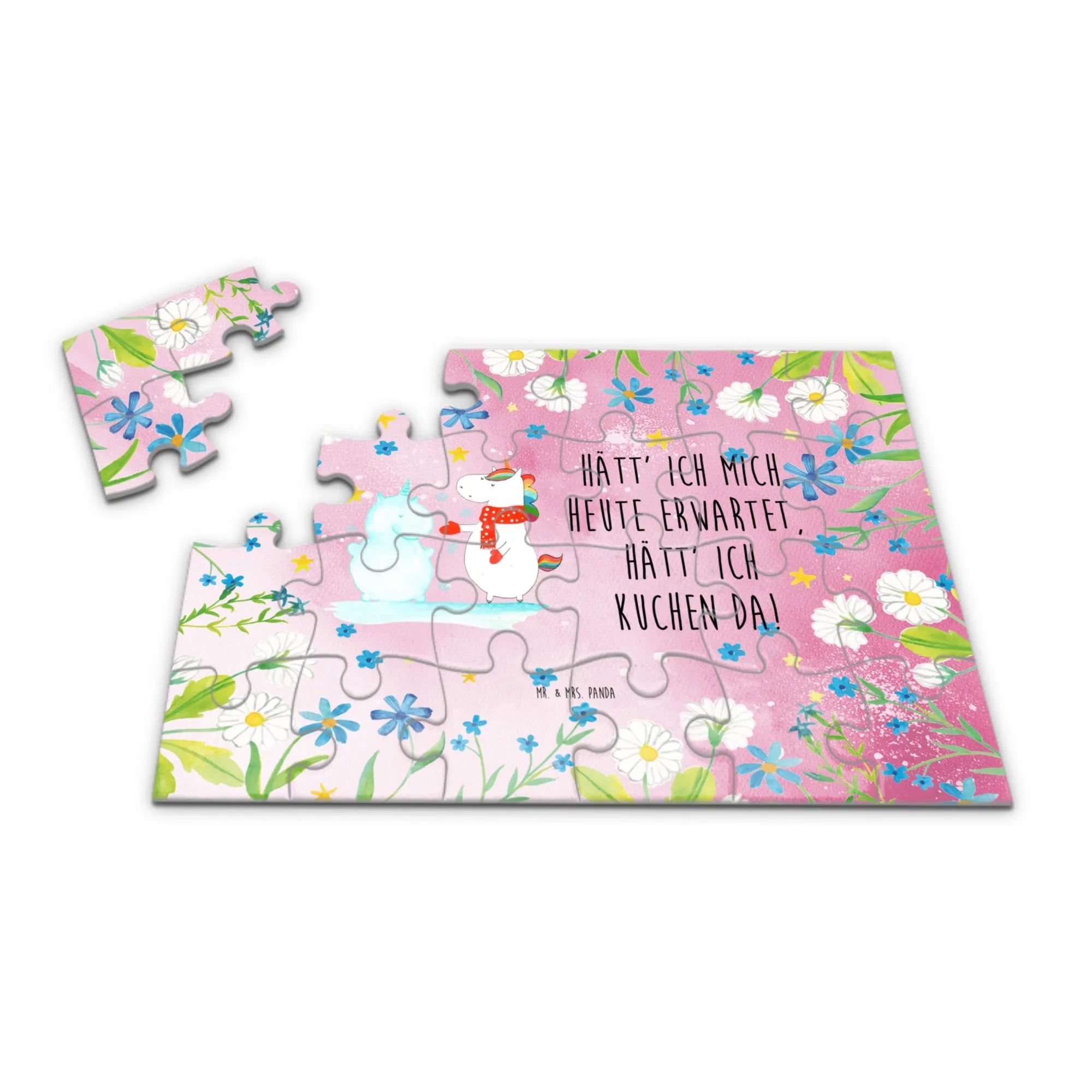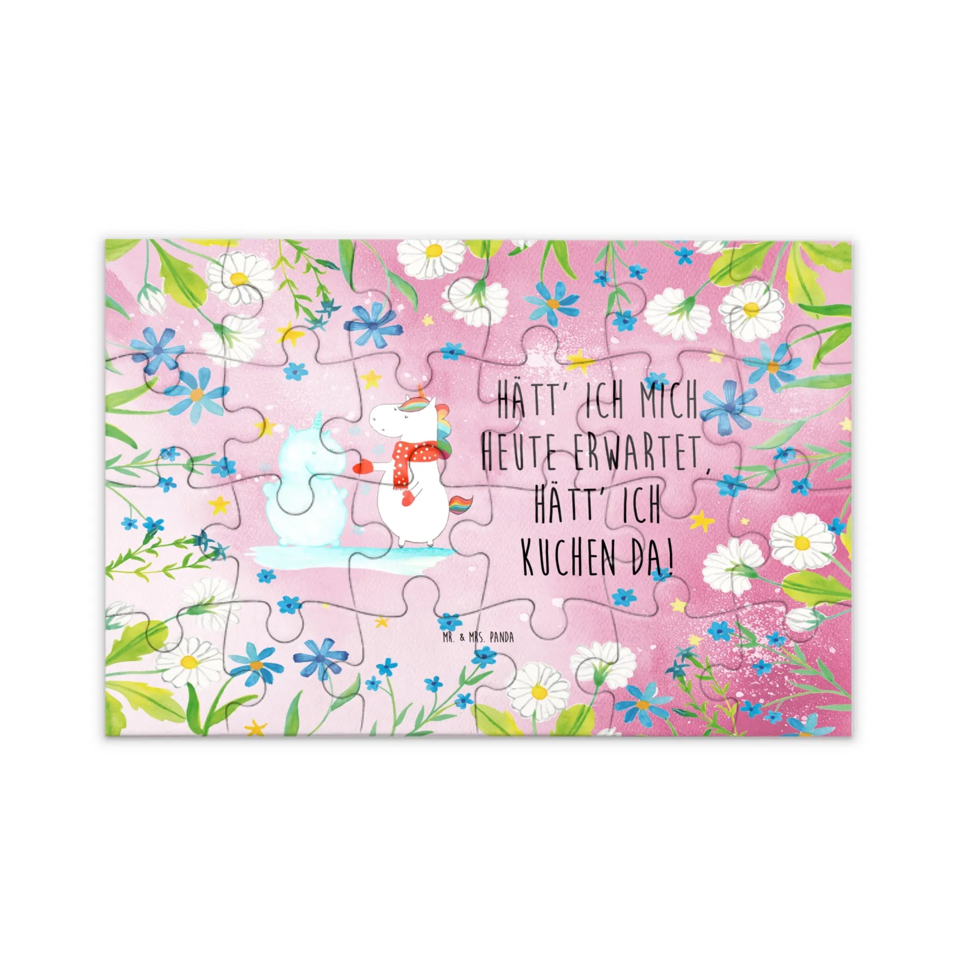Du liebst Einhörner und die gemütliche Stimmung im Winter? Dann ist dieses Puzzle aus der Einhorn - Kollektion von Mr. & Mrs. Panda genau das richtige für dich. Das Motiv zeigt ein niedliches Einhorn, das freudig einen Schneemann baut. Auf dem Bild prangt der witzige Spruch: „Hätt‘ ich mich heute erwartet, hätt‘ ich Kuchen da!" – ein perfektes Augenzwinkern für die kalte Jahreszeit.
