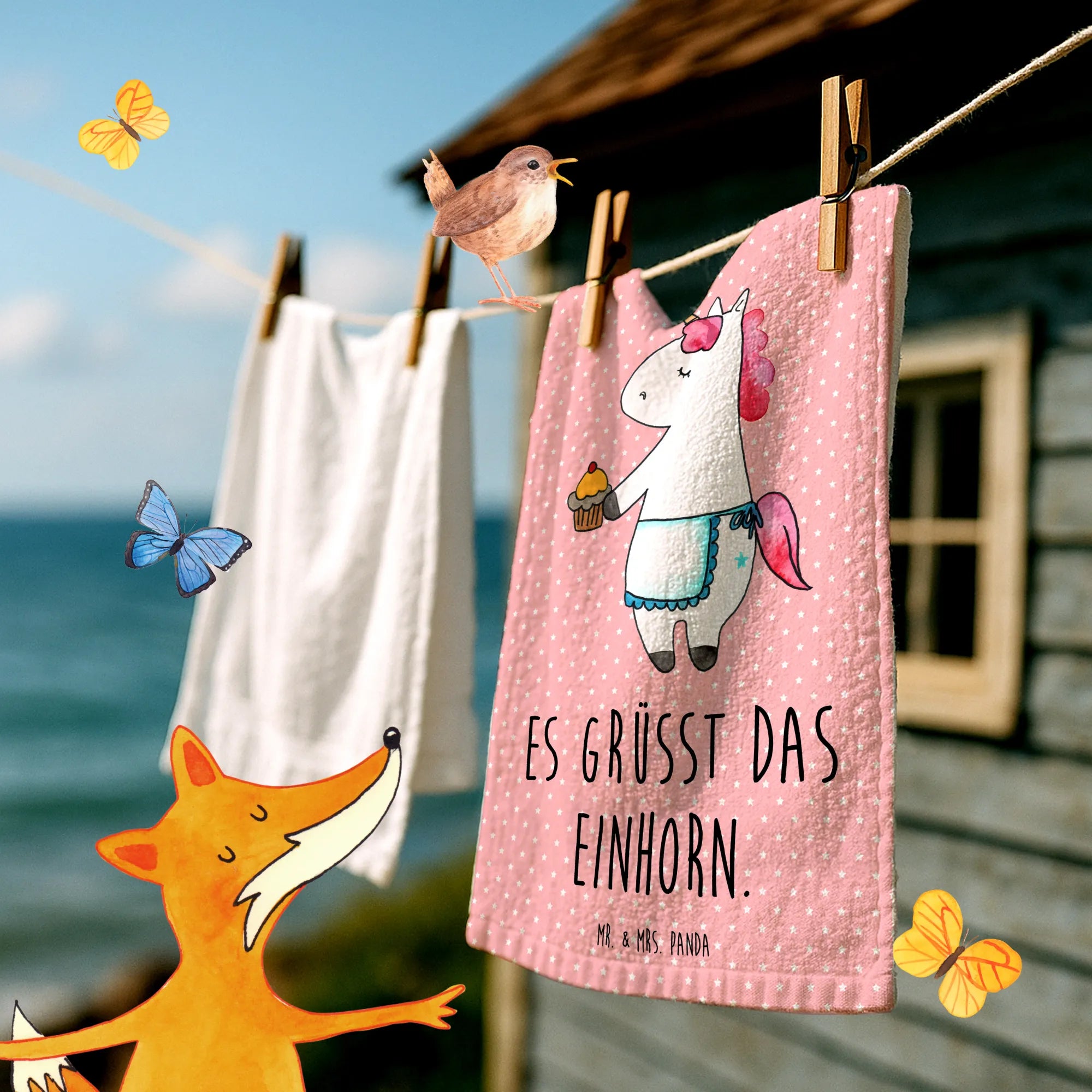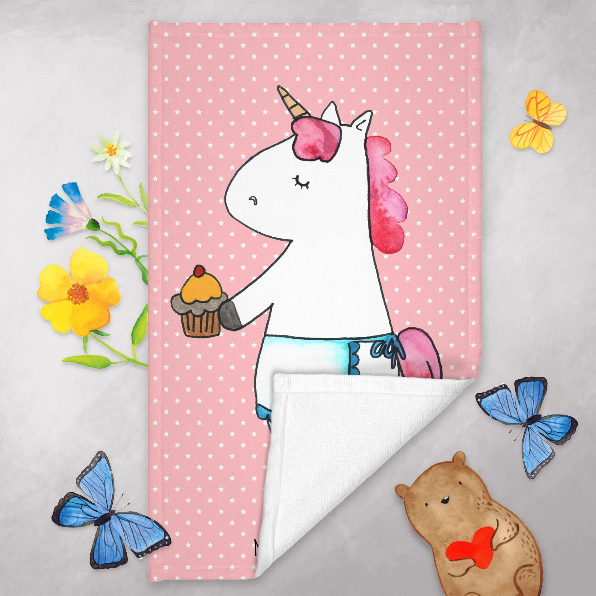 Ręcznik dla gości Jednorożec muffinka - z napisem - Pastelowy czerwony
