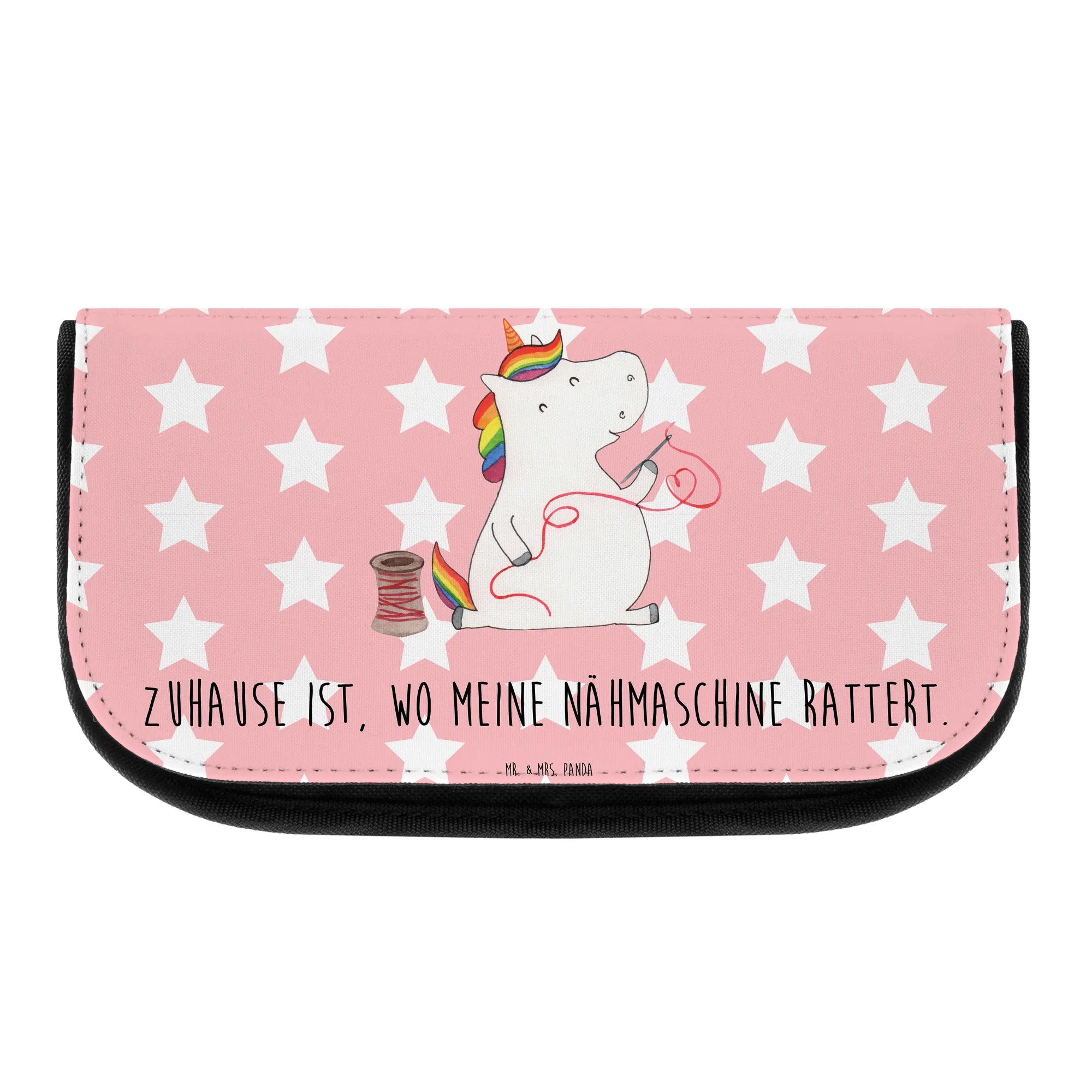 Kosmetyczka Jednorożec krawcowa - z napisem - Pastelowy czerwony