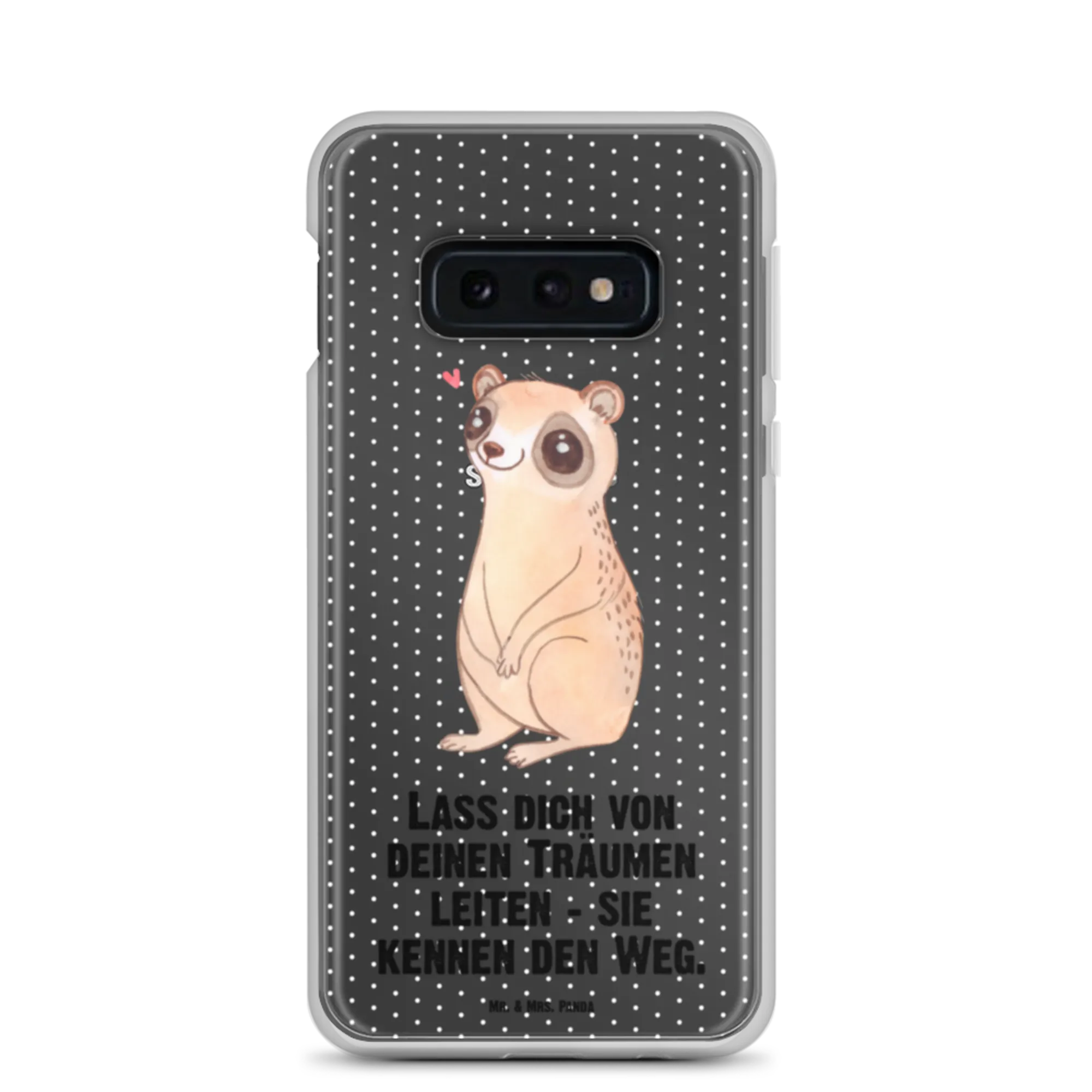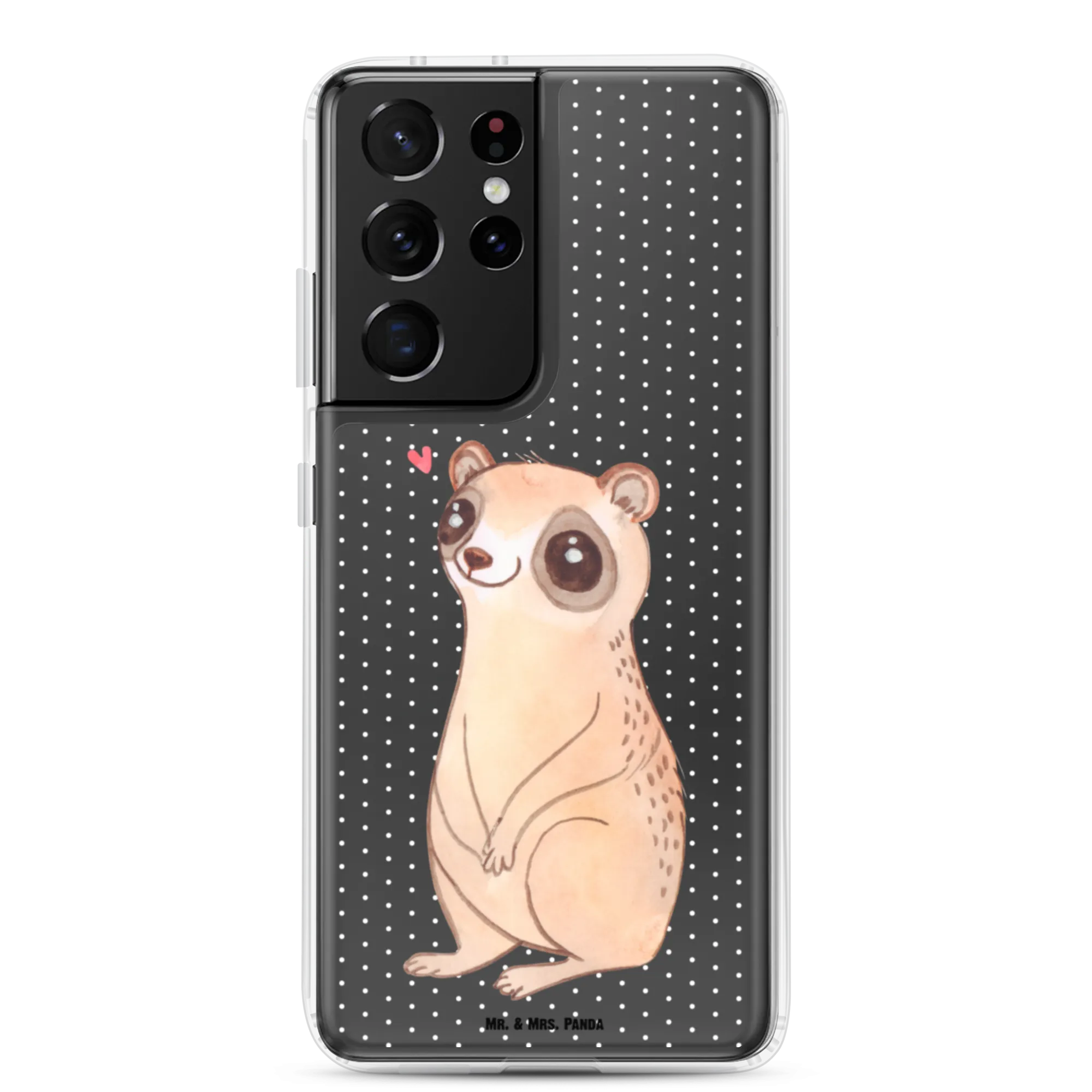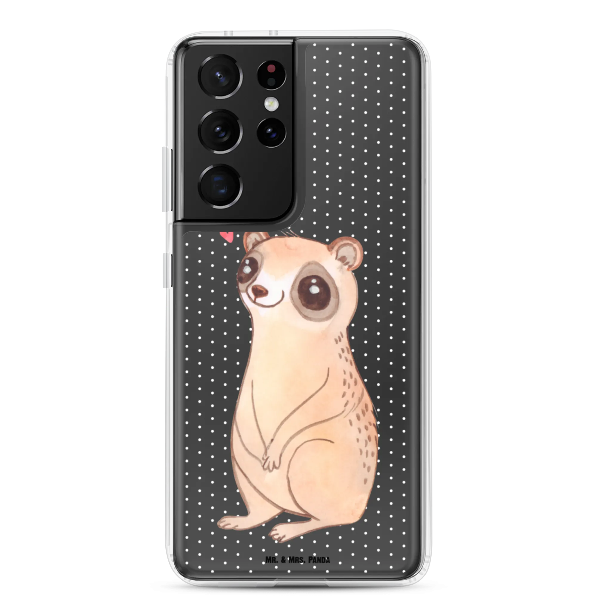 Mit dieser stilvollen, durchsichtigen Handyhülle trägst du jeden Tag ein kleines Stück Freude bei dir. Der niedliche Plumplori schaut mit großen Augen voller Liebe und Glück in die Welt und zaubert sofort ein Lächeln auf dein Gesicht. Das Motiv wirkt besonders harmonisch auf einer transparenten Hülle und lässt die Farbe deines Smartphones durchscheinen.