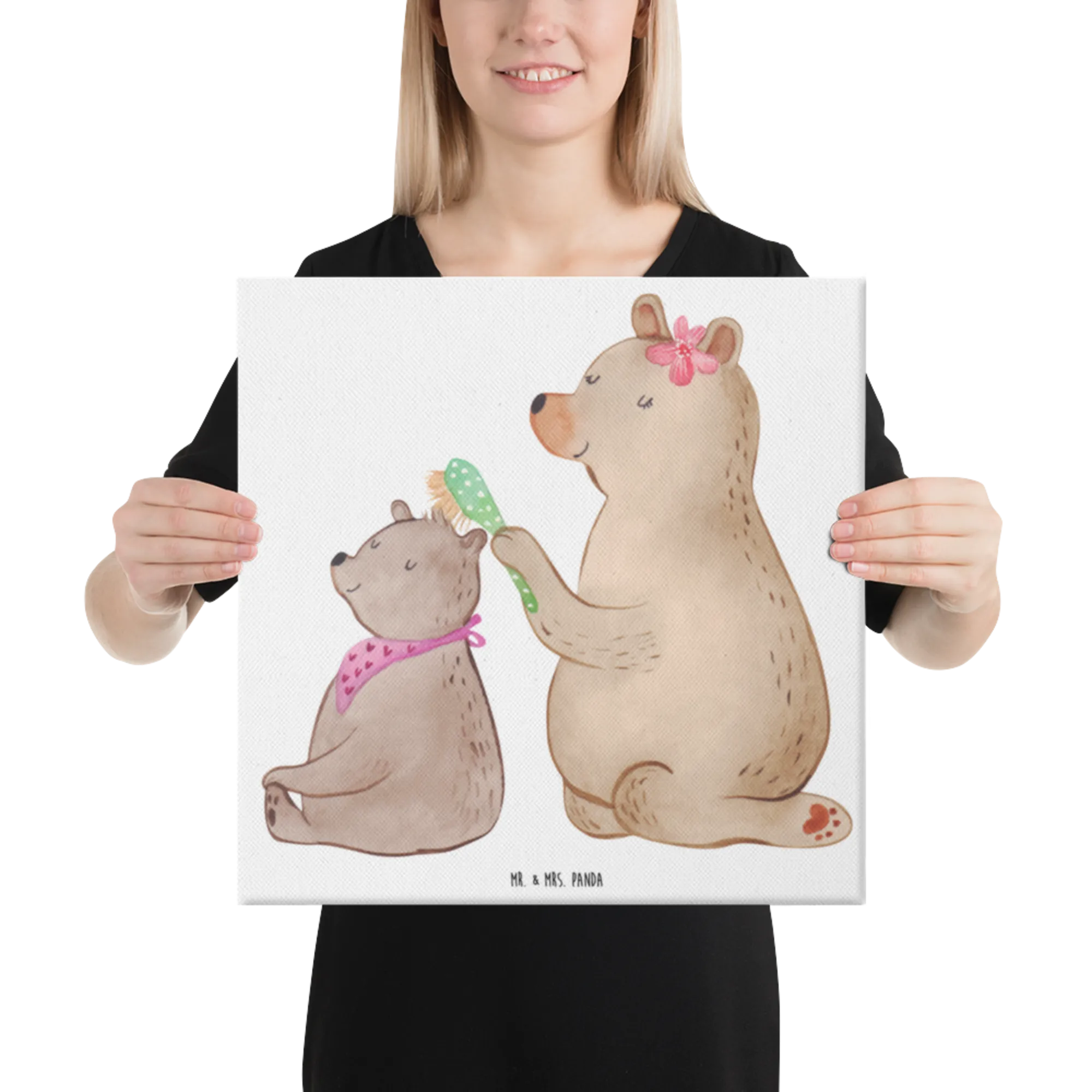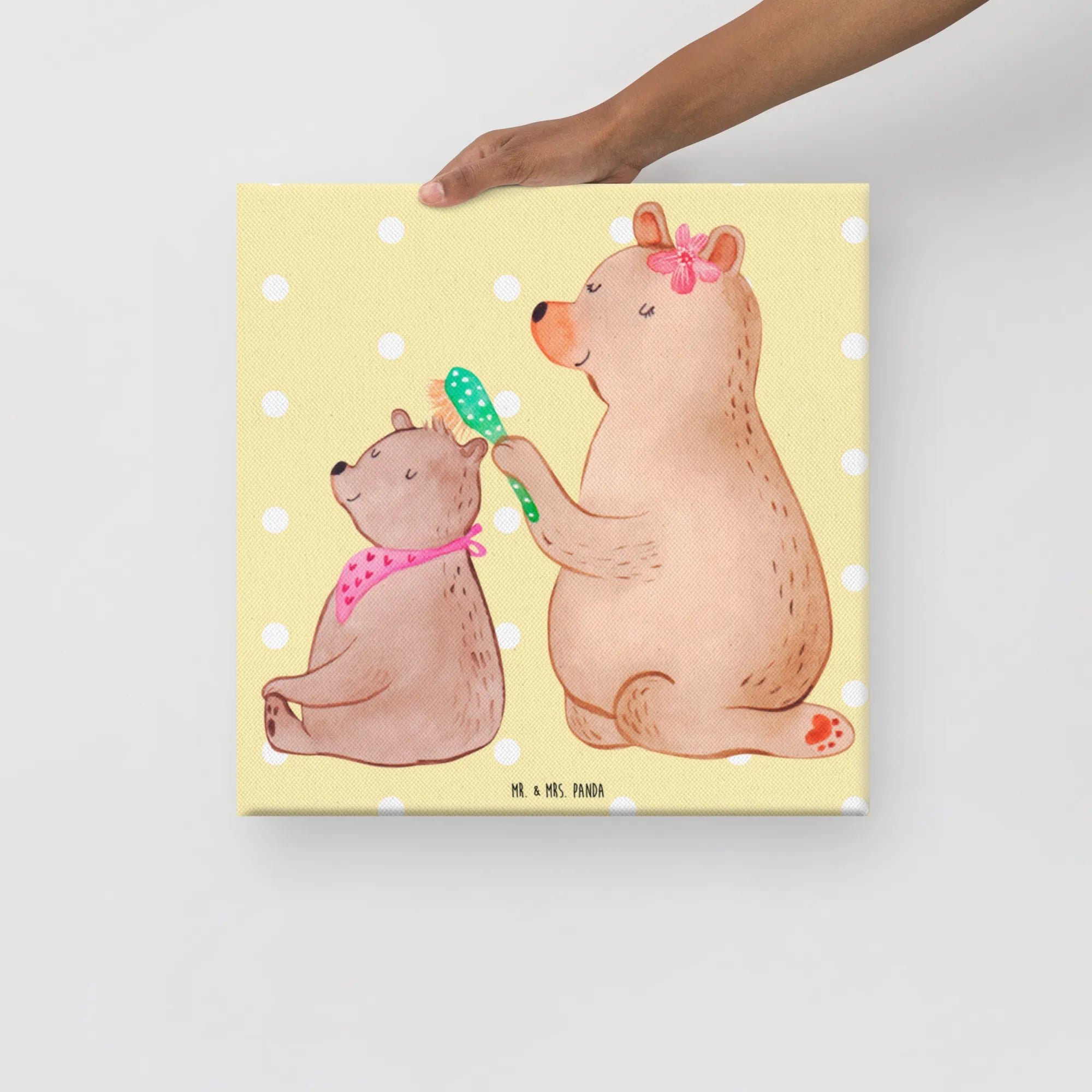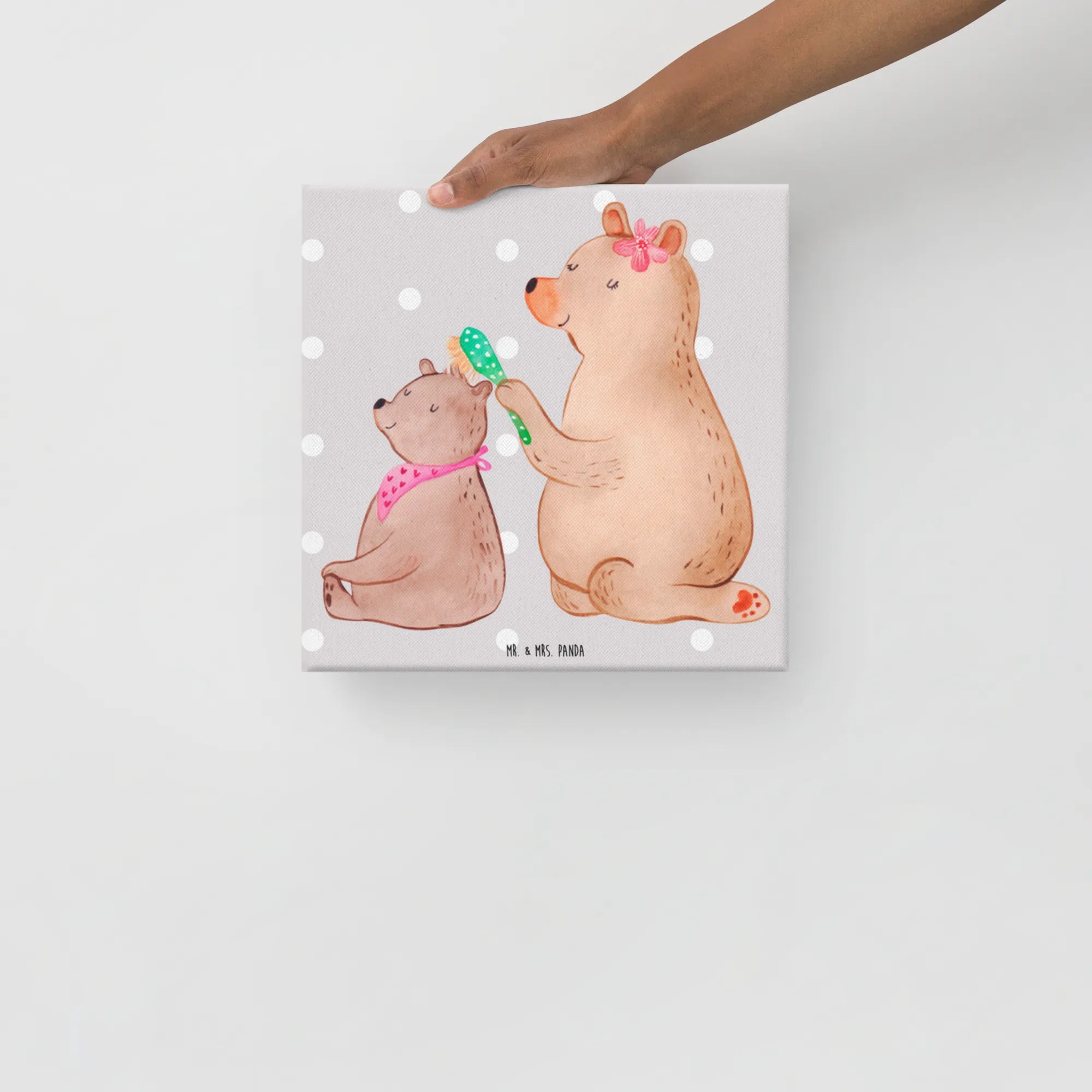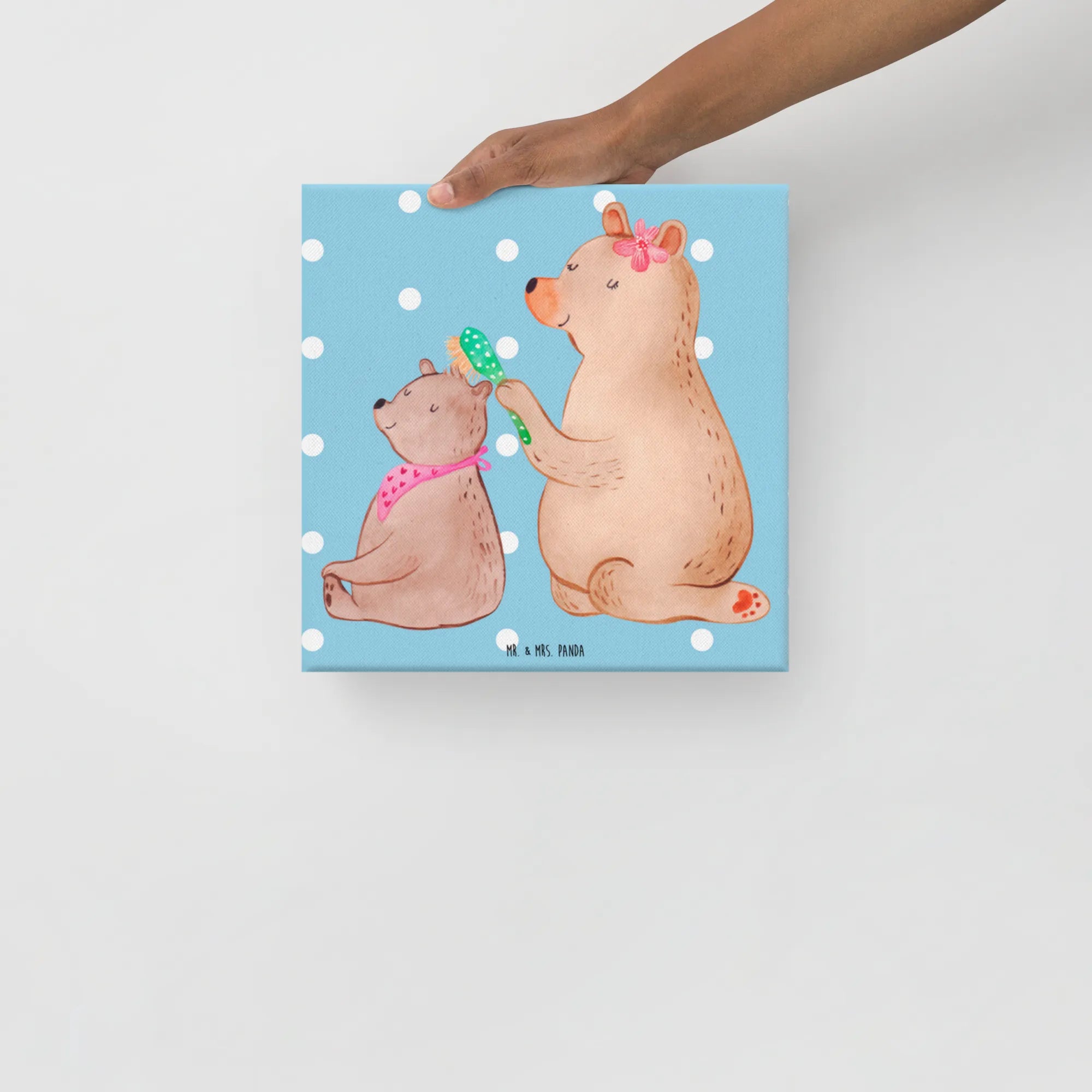 Obraz na płótnie niedźwiedź dziecko - 40 x 40 cm - z napisem - biały