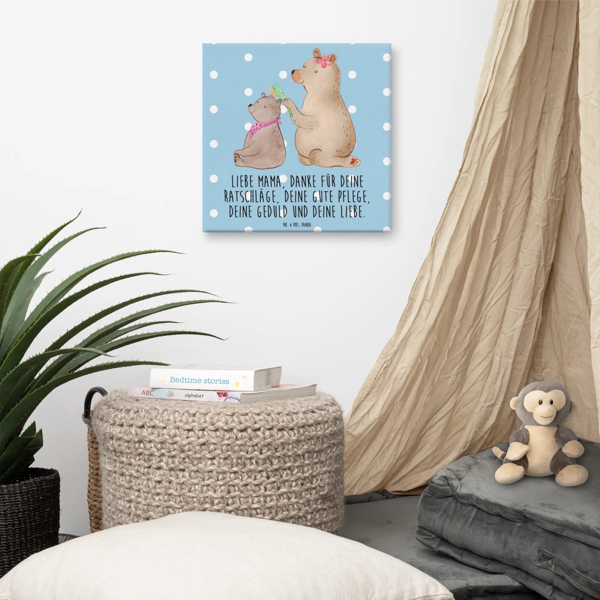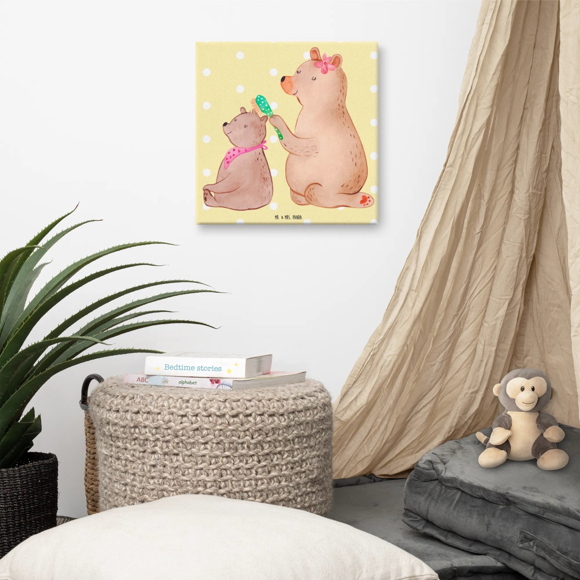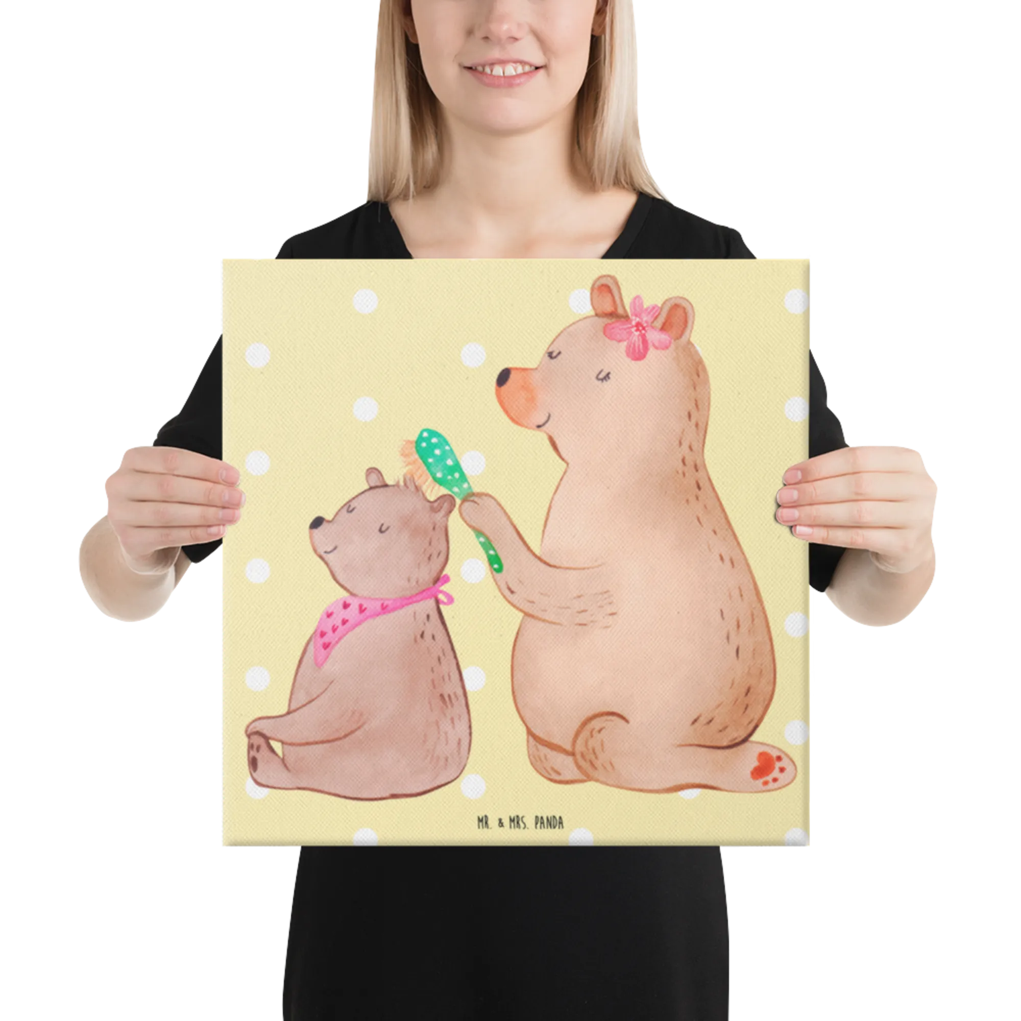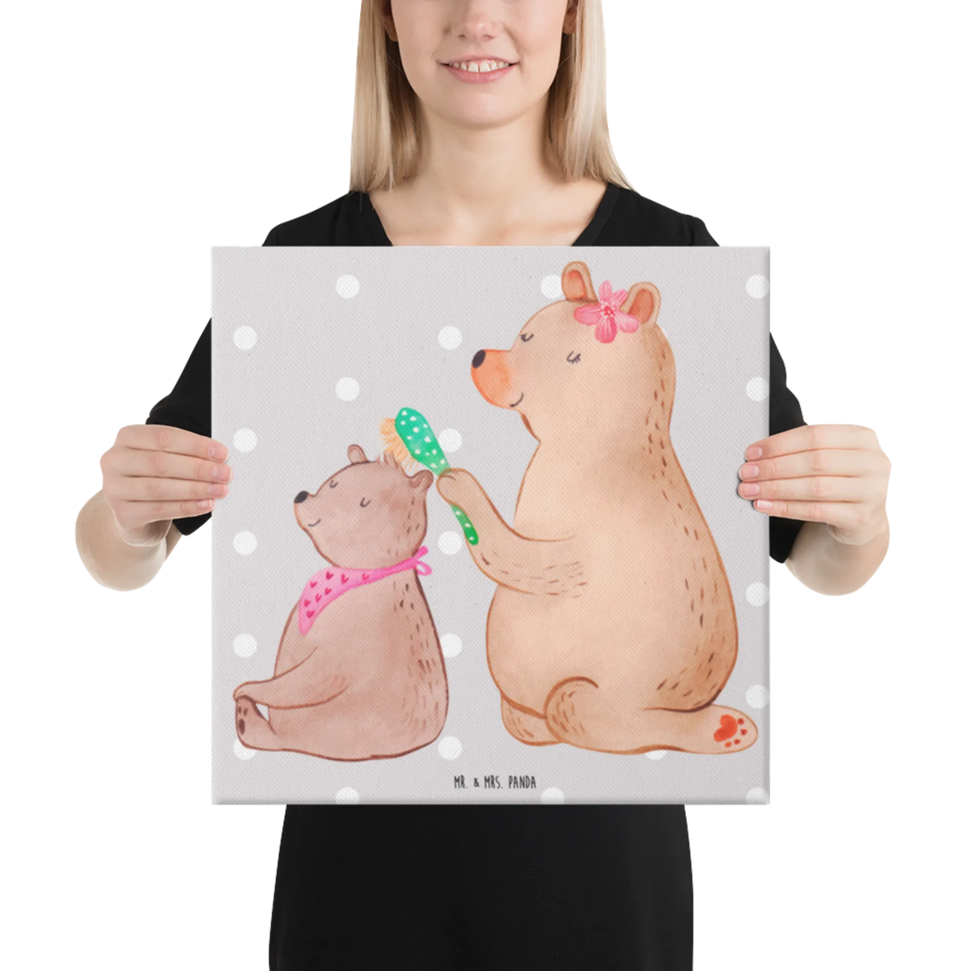 Obraz na płótnie niedźwiedź dziecko - 40 x 40 cm - z napisem - biały