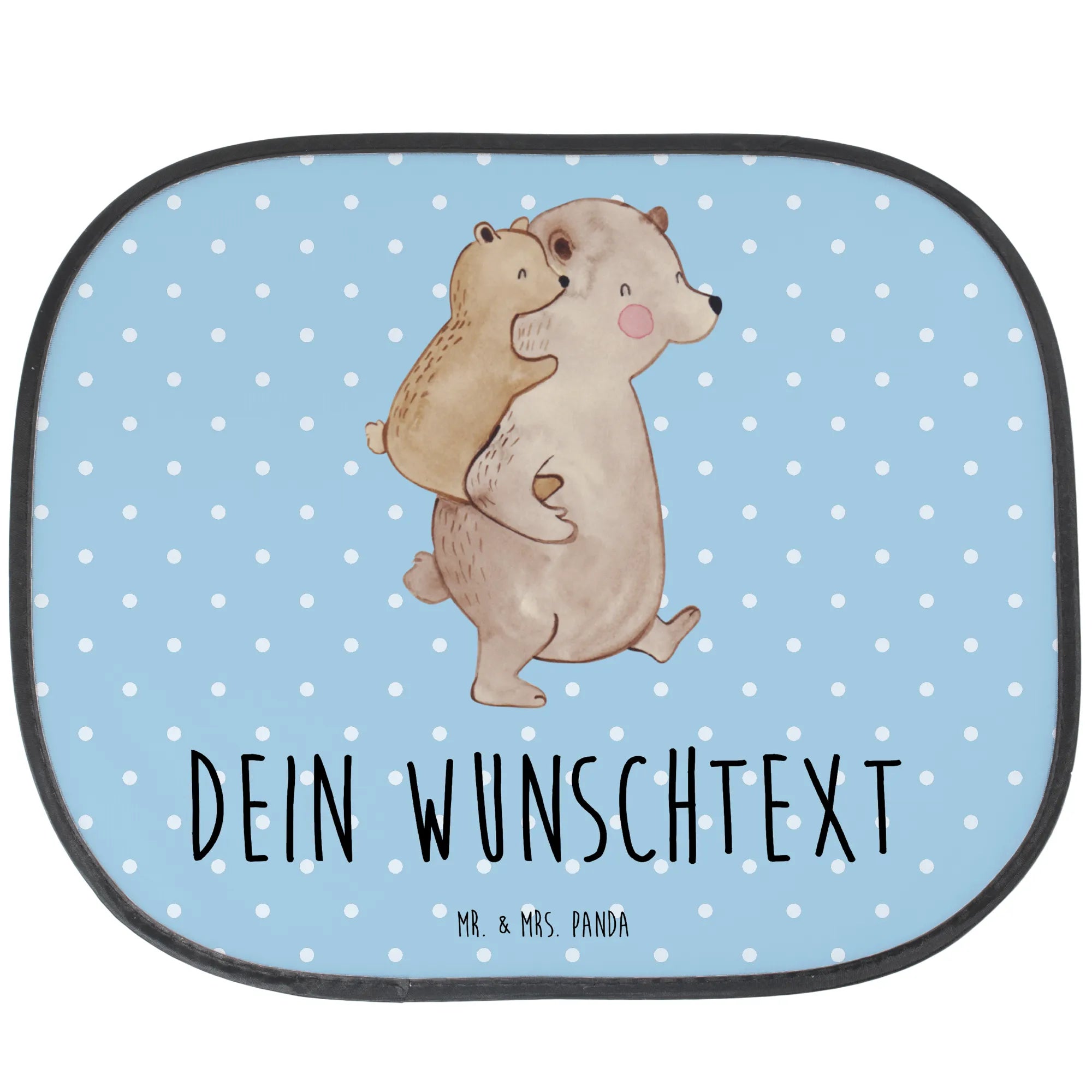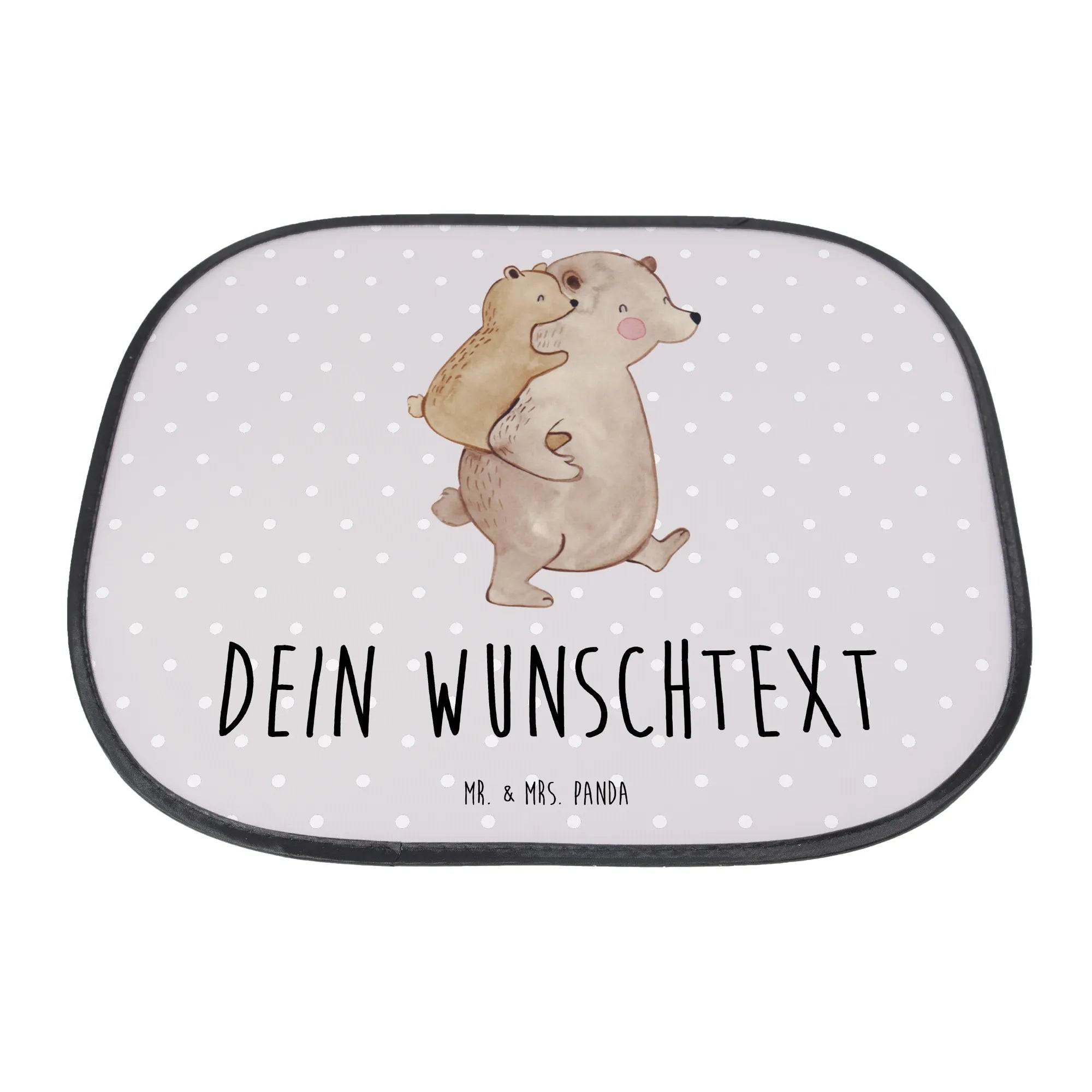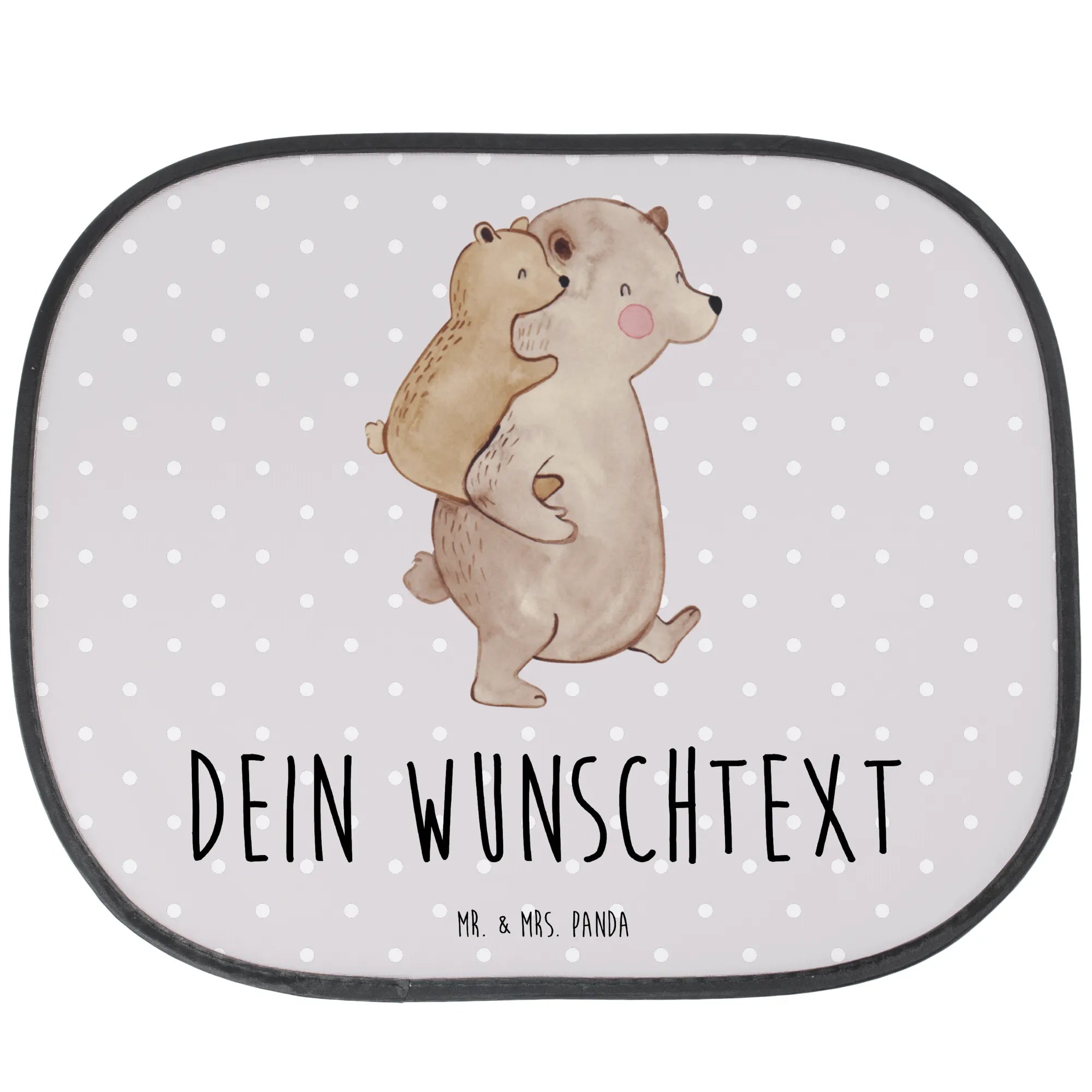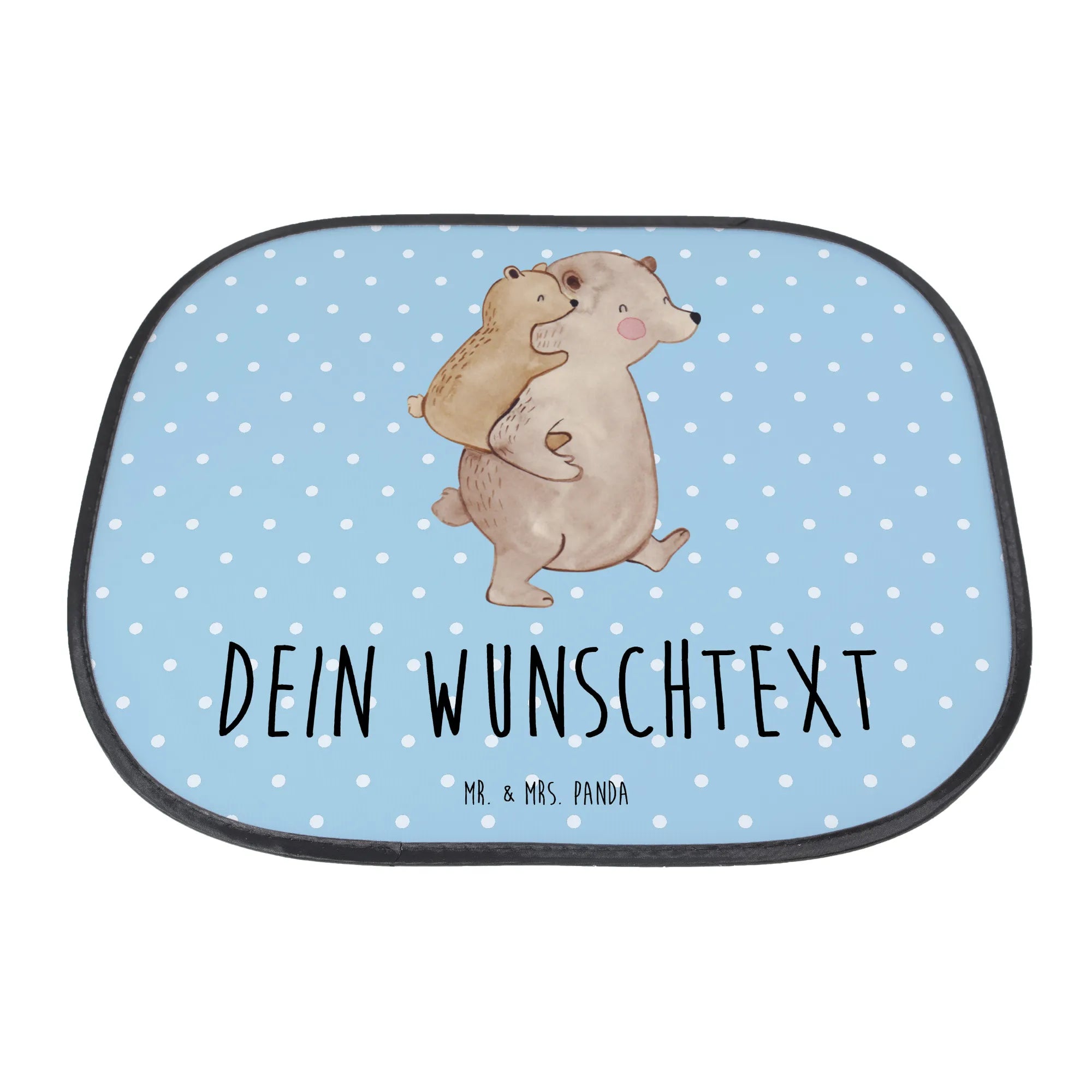 Der personalisierbare Auto Sonnenschutz "Papa Bär" von Mr. & Mrs. Panda ist das perfekte Geschenk für alle Väter, Onkel und Großväter, die sich nach einem besonderen Geschenk zum Vatertag oder Geburtstag umsehen. Mit einem wunderschönen Motiv von zwei Bären, die sich liebevoll umarmen, sorgt dieser Sonnenschutz nicht nur für angenehme Schattenmomente, sondern vermittelt auch eine Botschaft der Zuneigung und Wertschätzung.