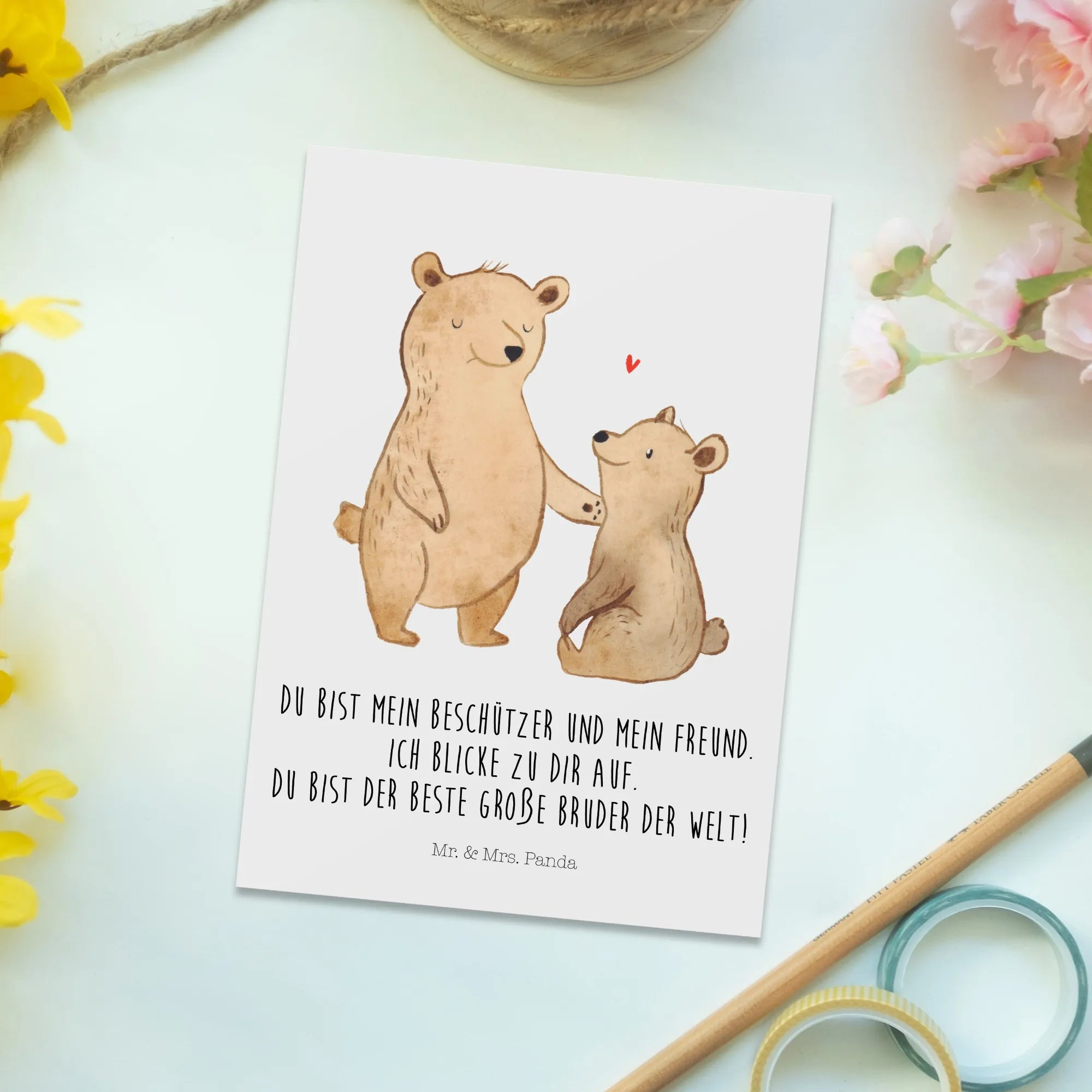 Pocztówka Niedźwiedź Starszy brat - z napisem - Pastelowy niebieski