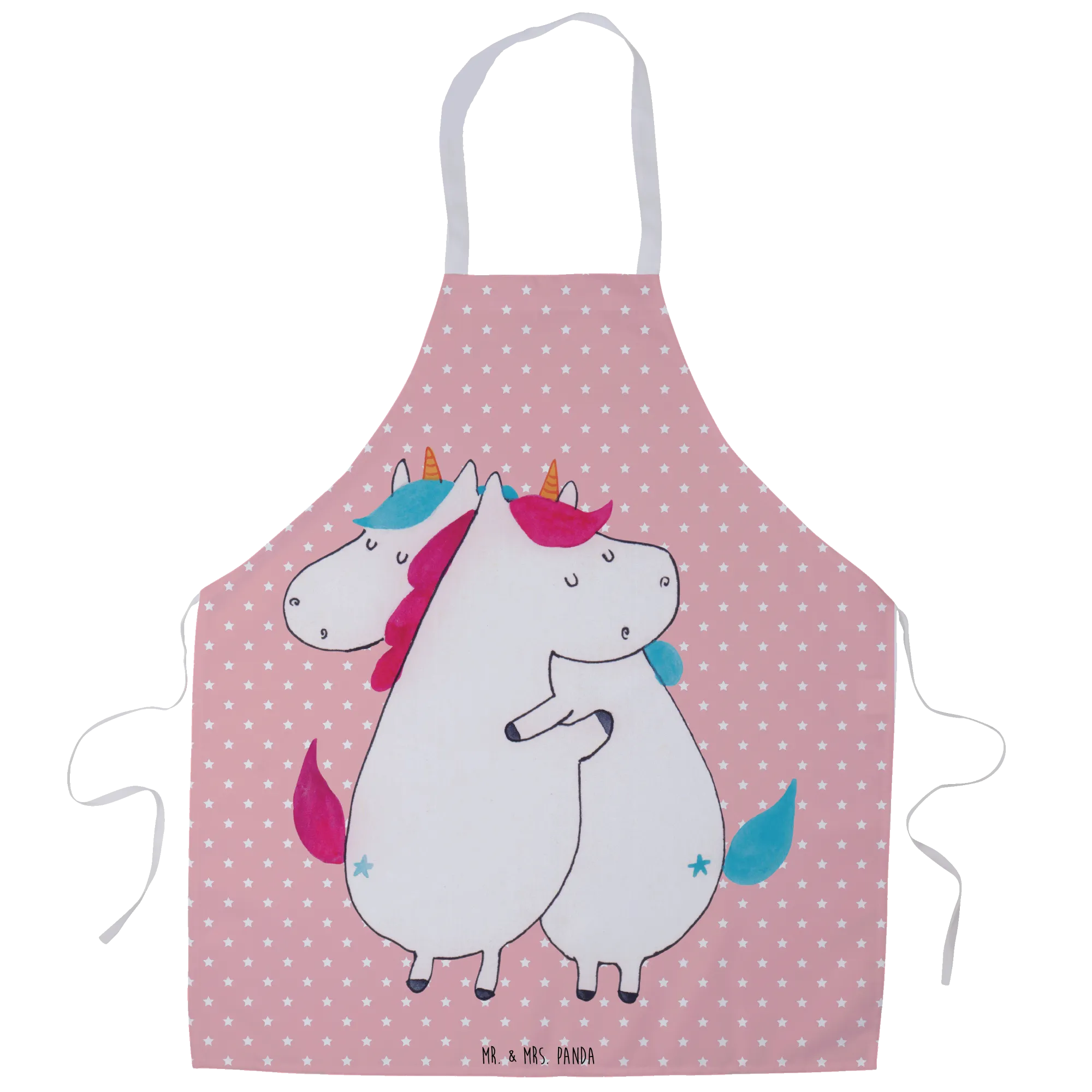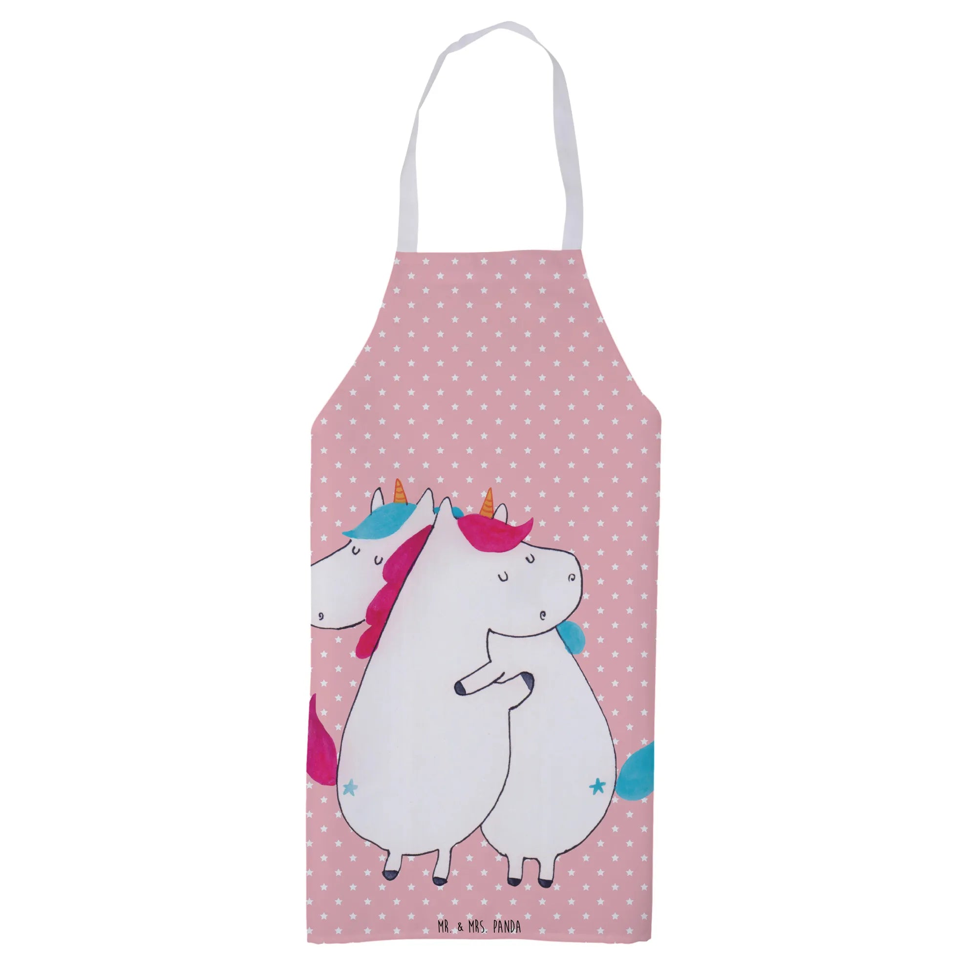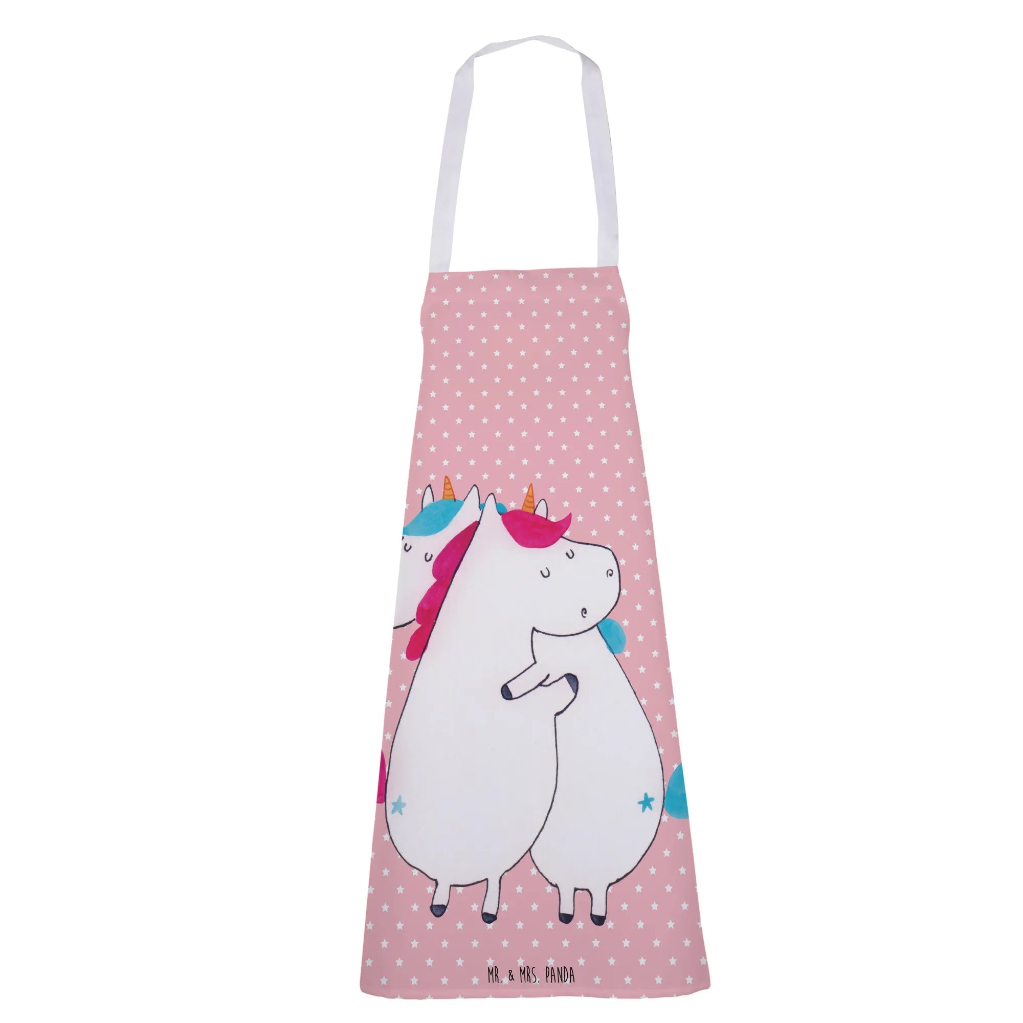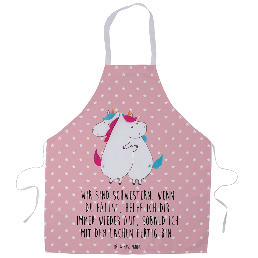 Fartuch kuchenny Jednorożce Przytulanie - z napisem - Pastelowy czerwony