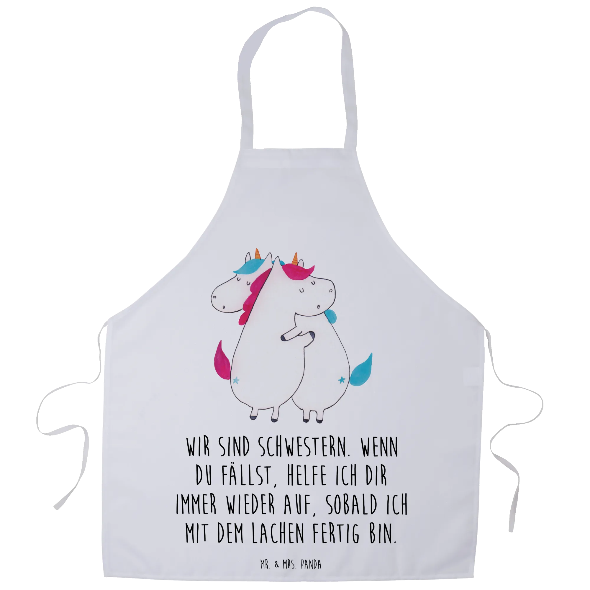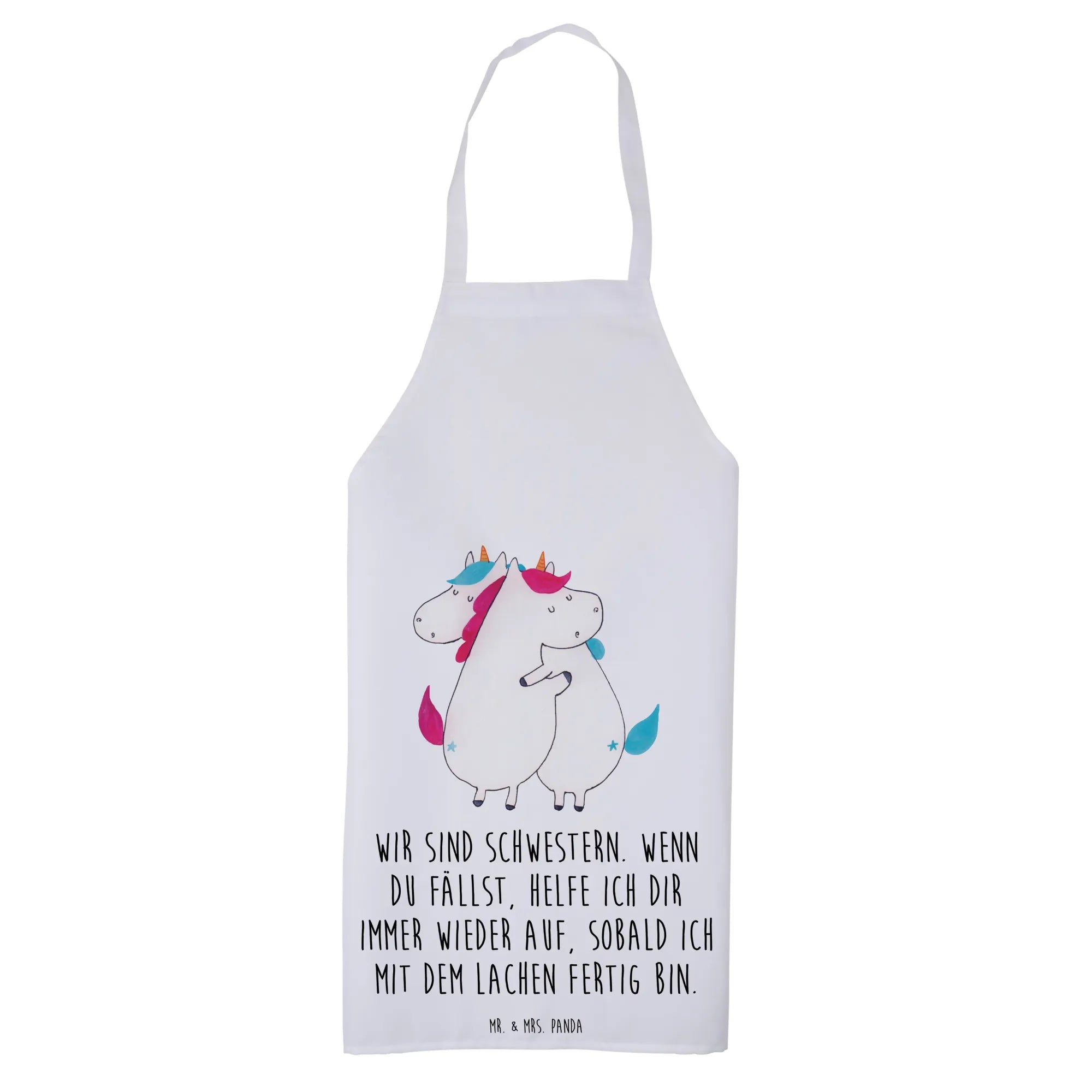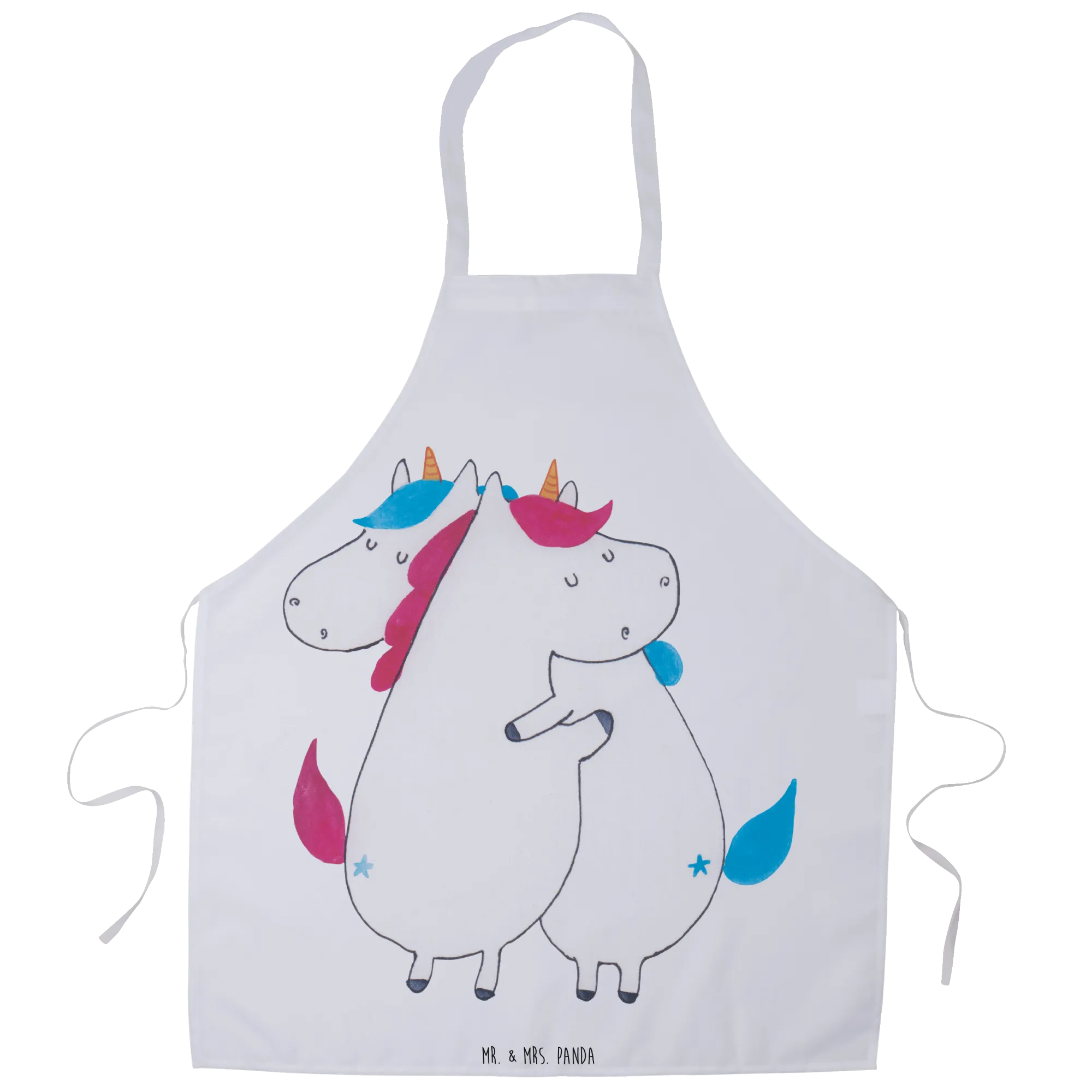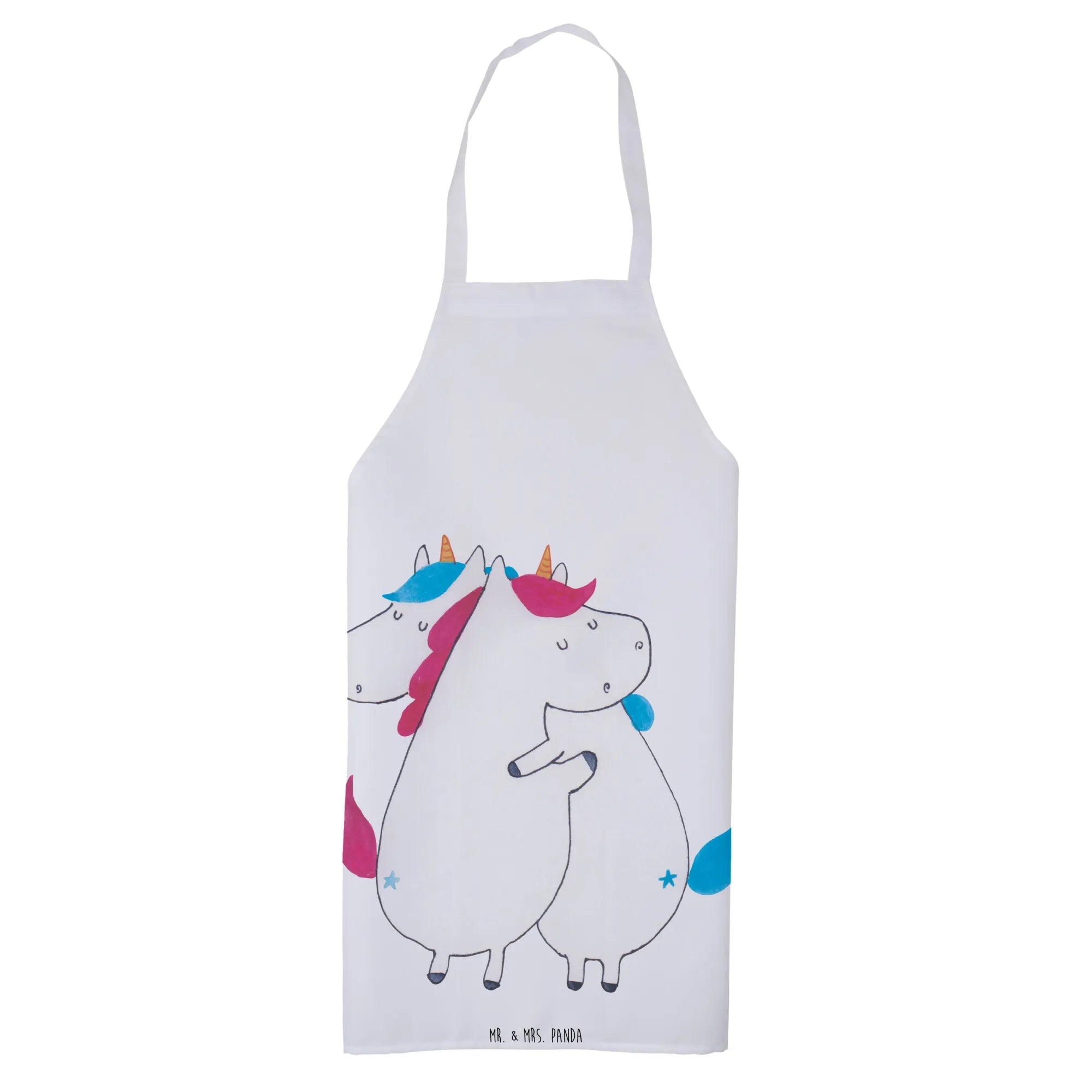 Fartuch kuchenny Jednorożce Przytulanie - z napisem - Pastelowy czerwony