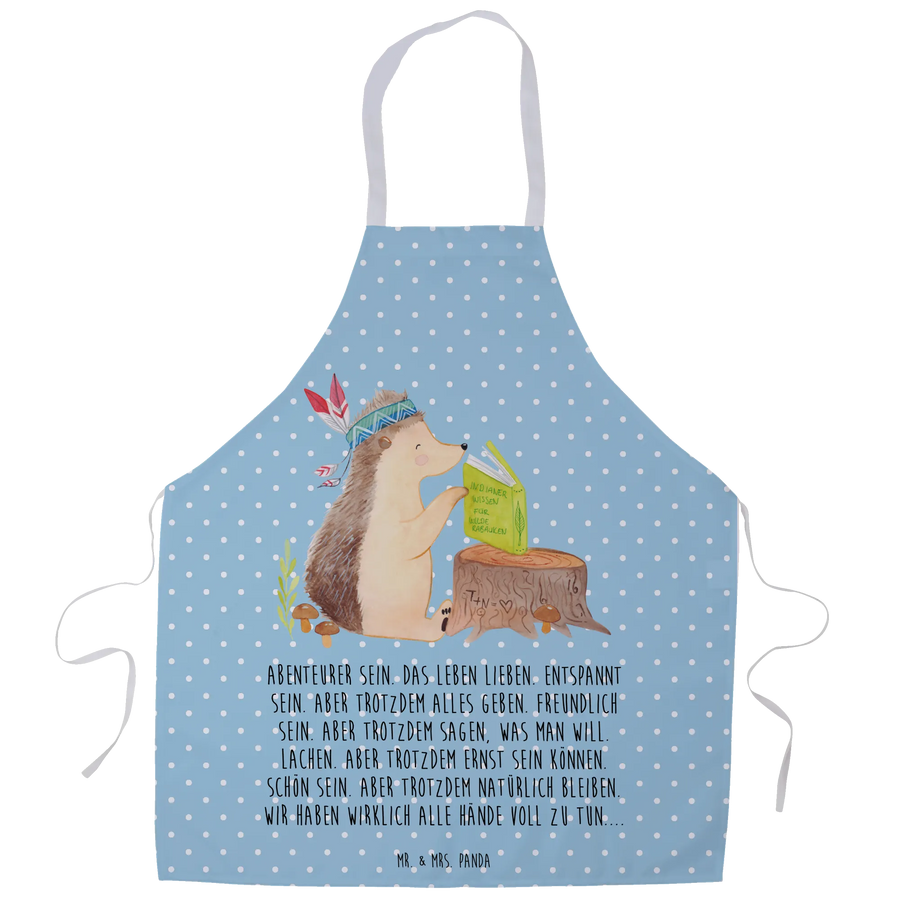 Fartuch kuchenny jeż Ozdoba z piór - z napisem - Niebieski Pastel