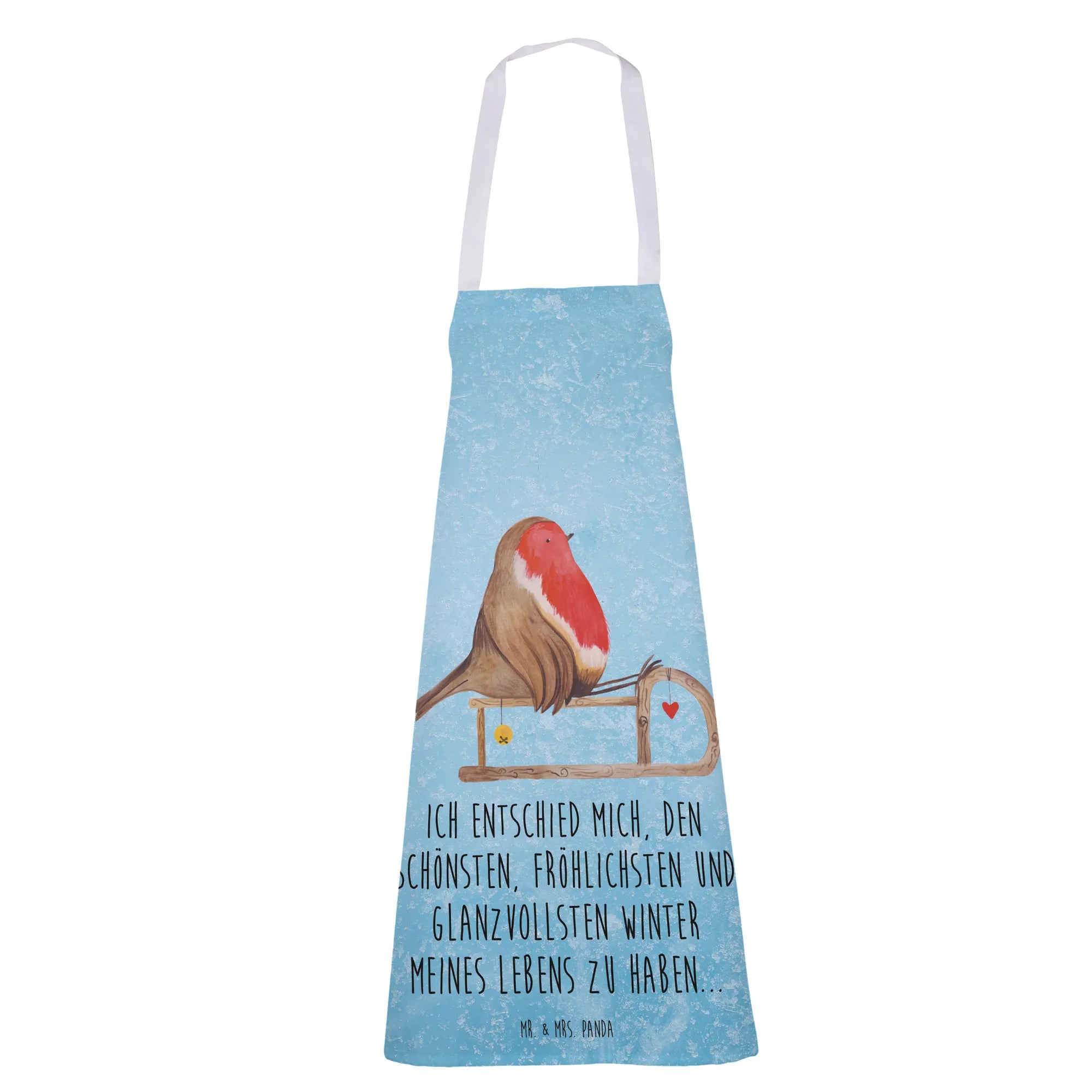 Fartuch kuchenny rudzik sanki - z napisem - lodowoniebieski