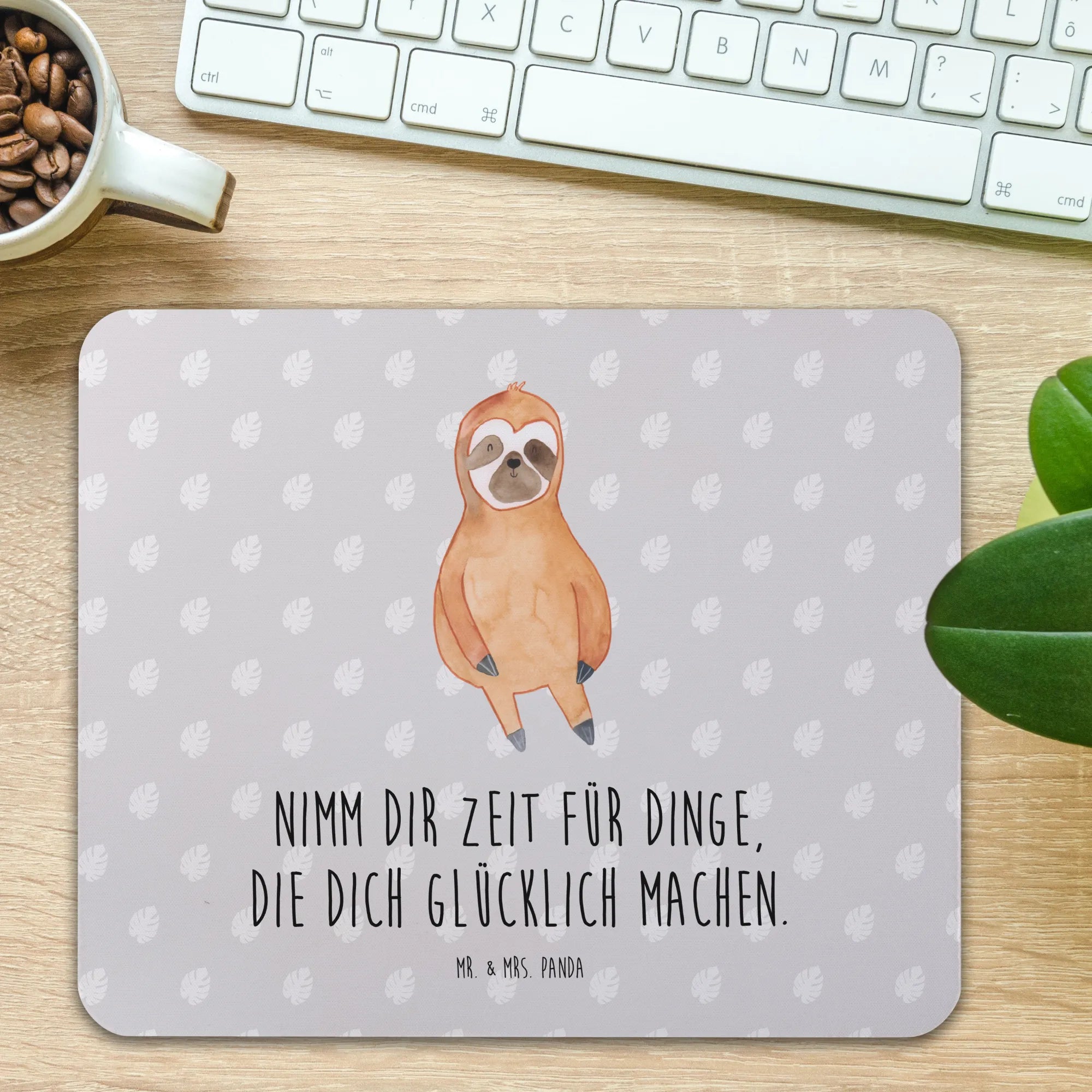 Podkładka pod mysz leniwiec Zadowolony - z napisem - Czarny