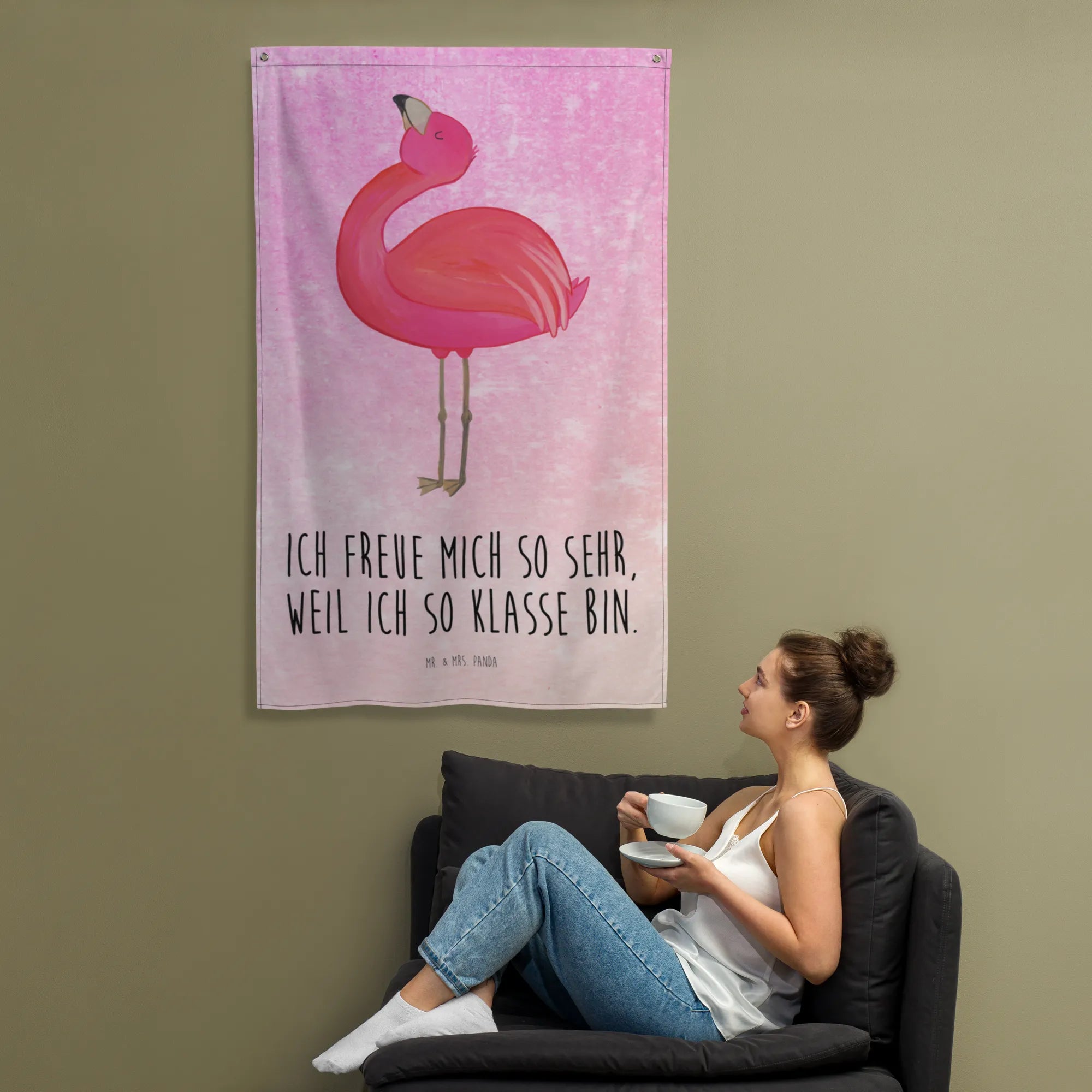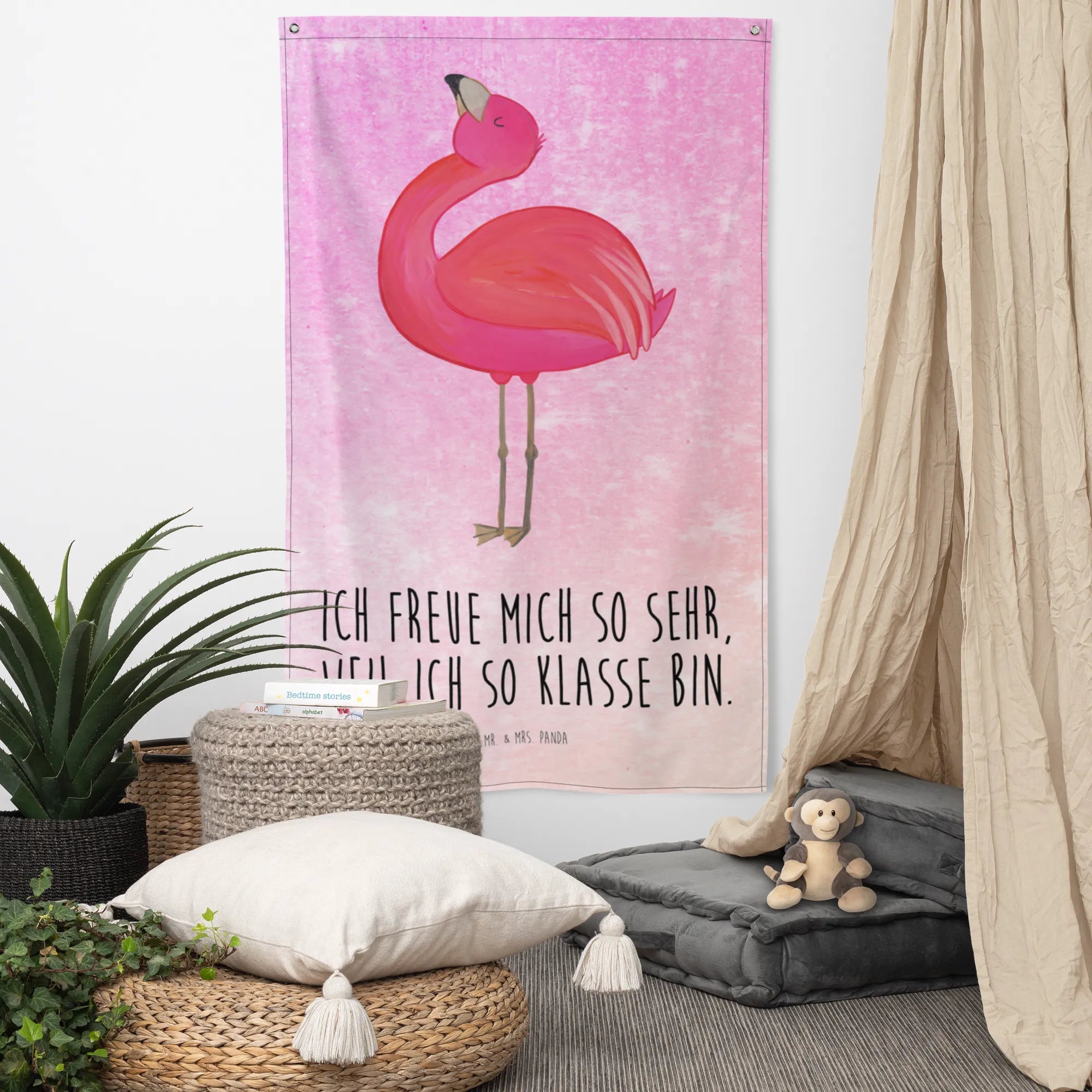 Verschenke Freude und Selbstliebe mit unserem wunderschönen Wandteppich "Flamingo stolz" aus der beliebten Flamingo-Kollektion von Mr. & Mrs. Panda! 🦩 Dieser zauberhafte Wandbehang verbindet die Eleganz des stolzen Flamingos mit einem beherzten Gefühl der Freude und Selbstakzeptanz.