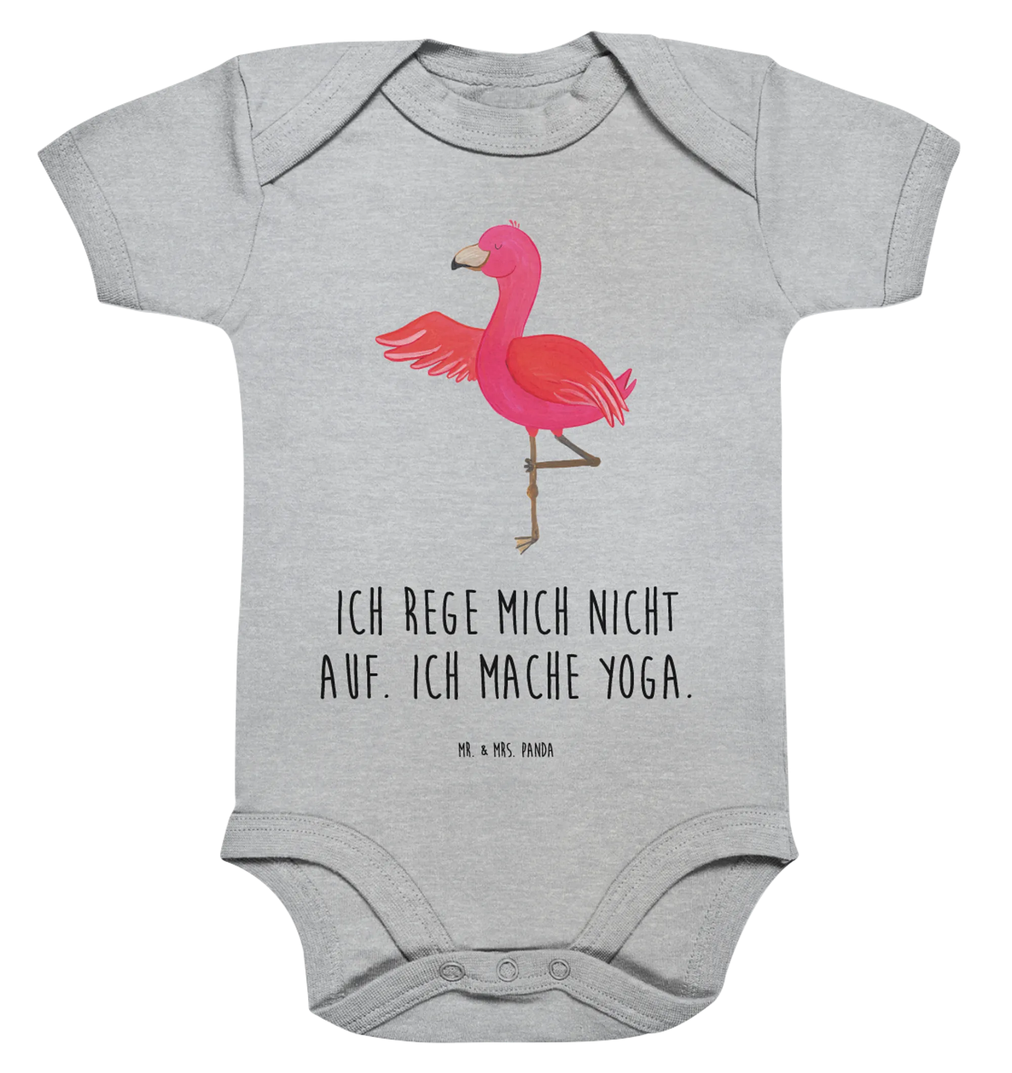 Organiczne body dla niemowląt Flamingo joga - 3. - 6. Monat - z napisem