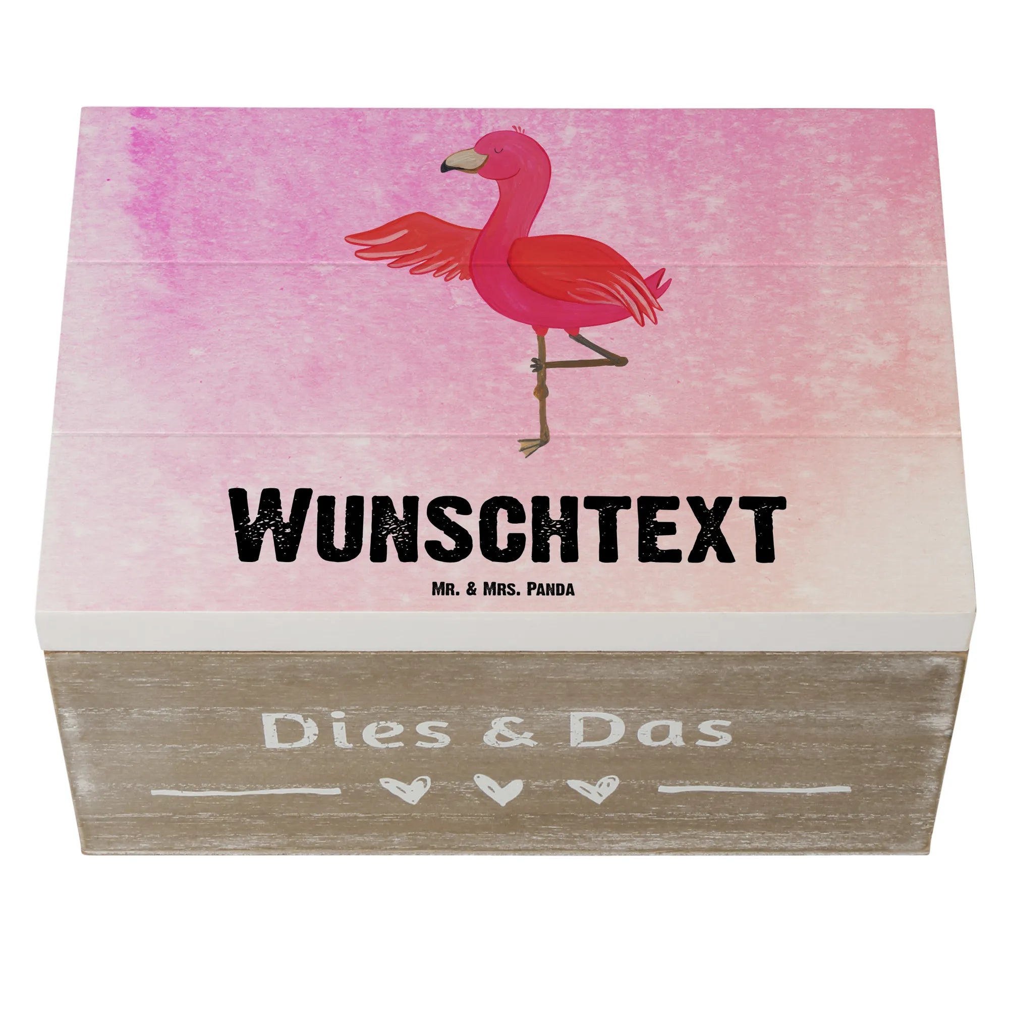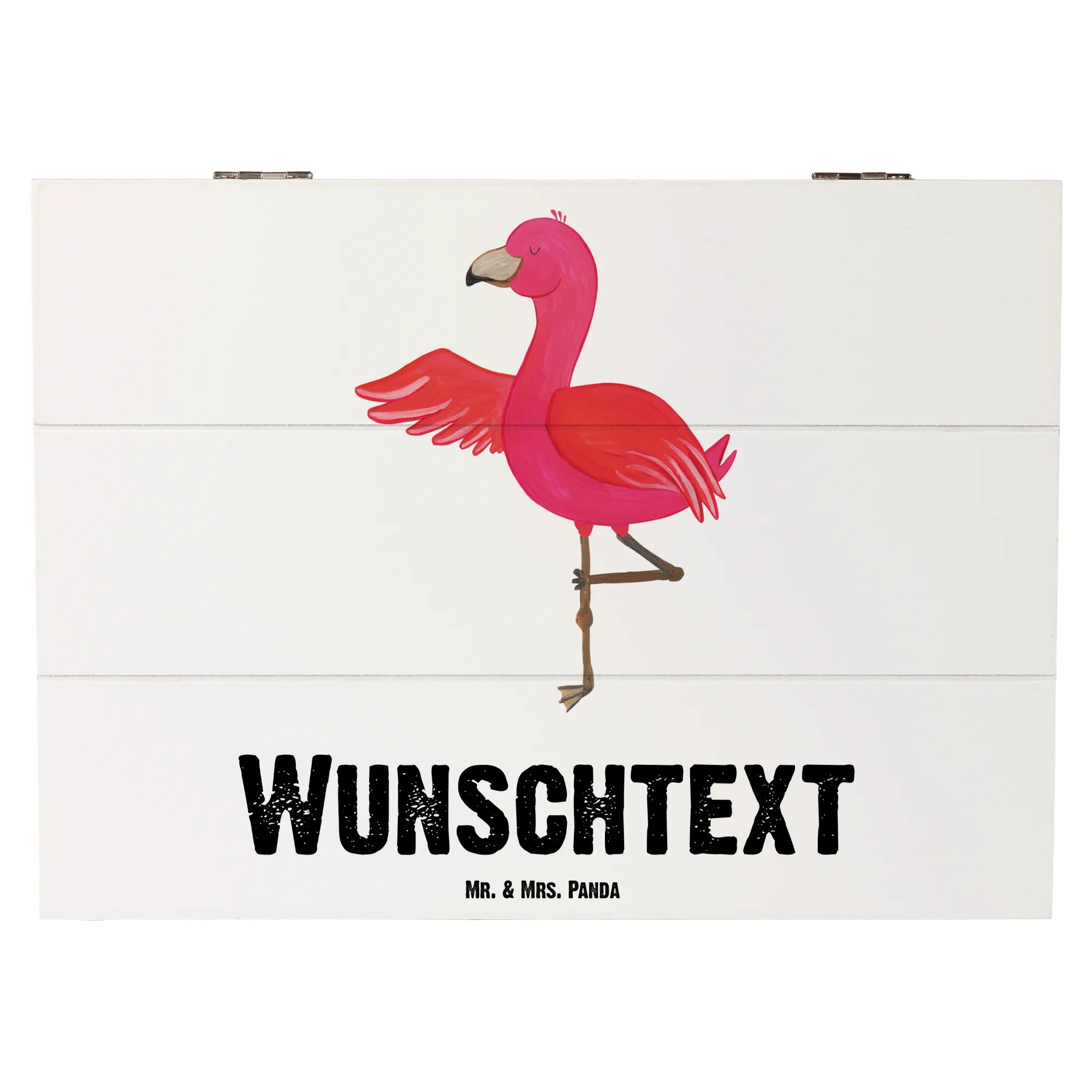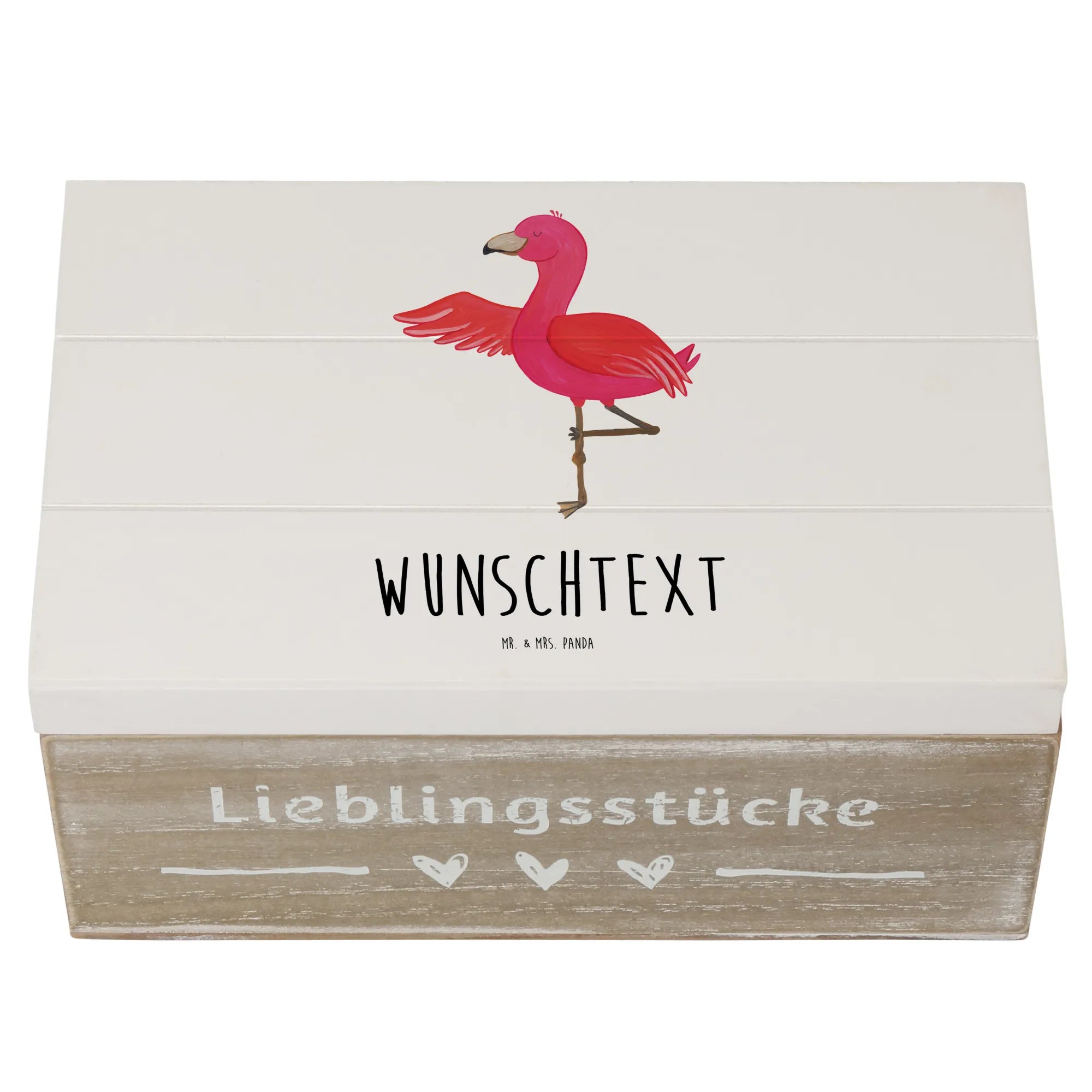 Personalizowane drewniane pudełko Flamingo joga - 22 x 15 cm - biały