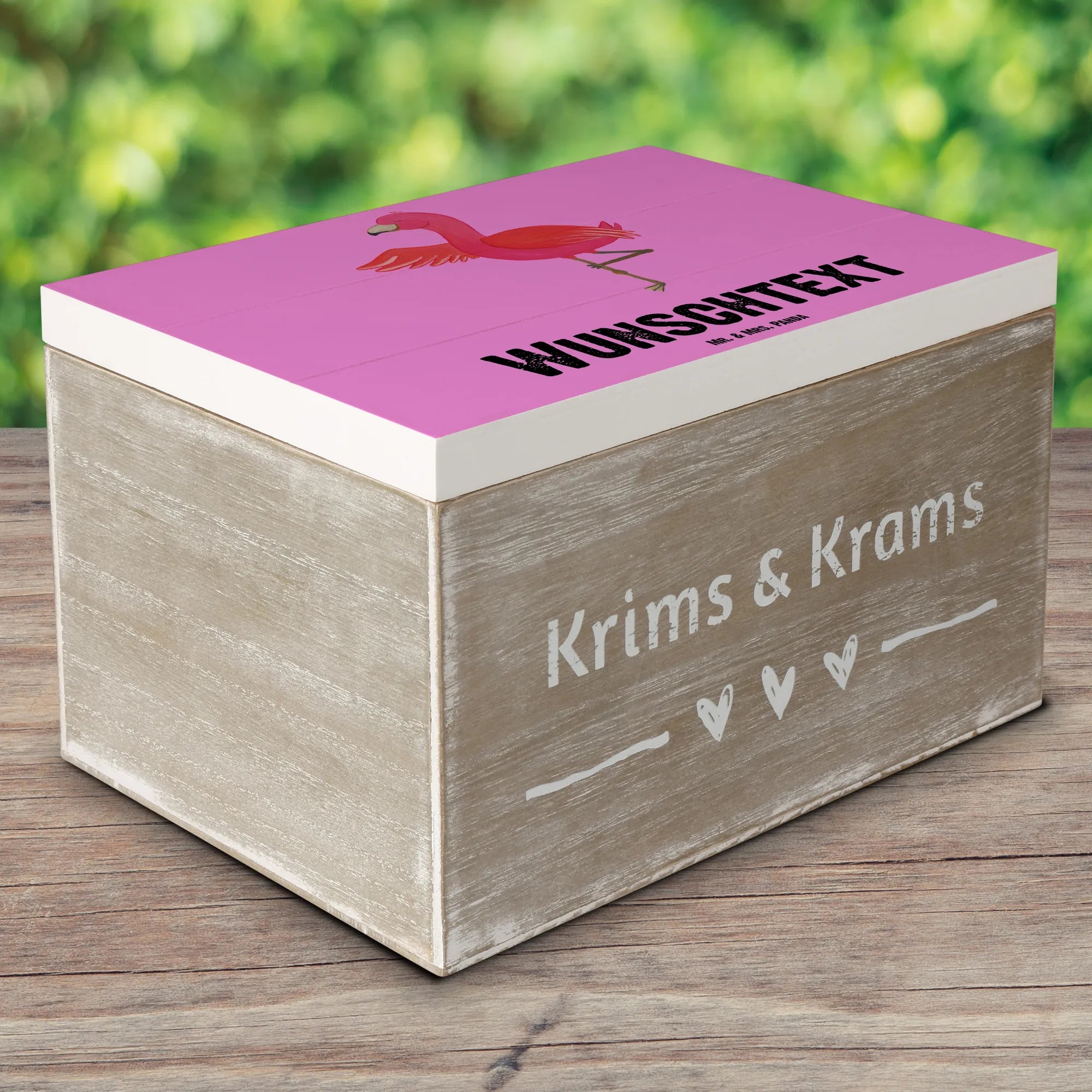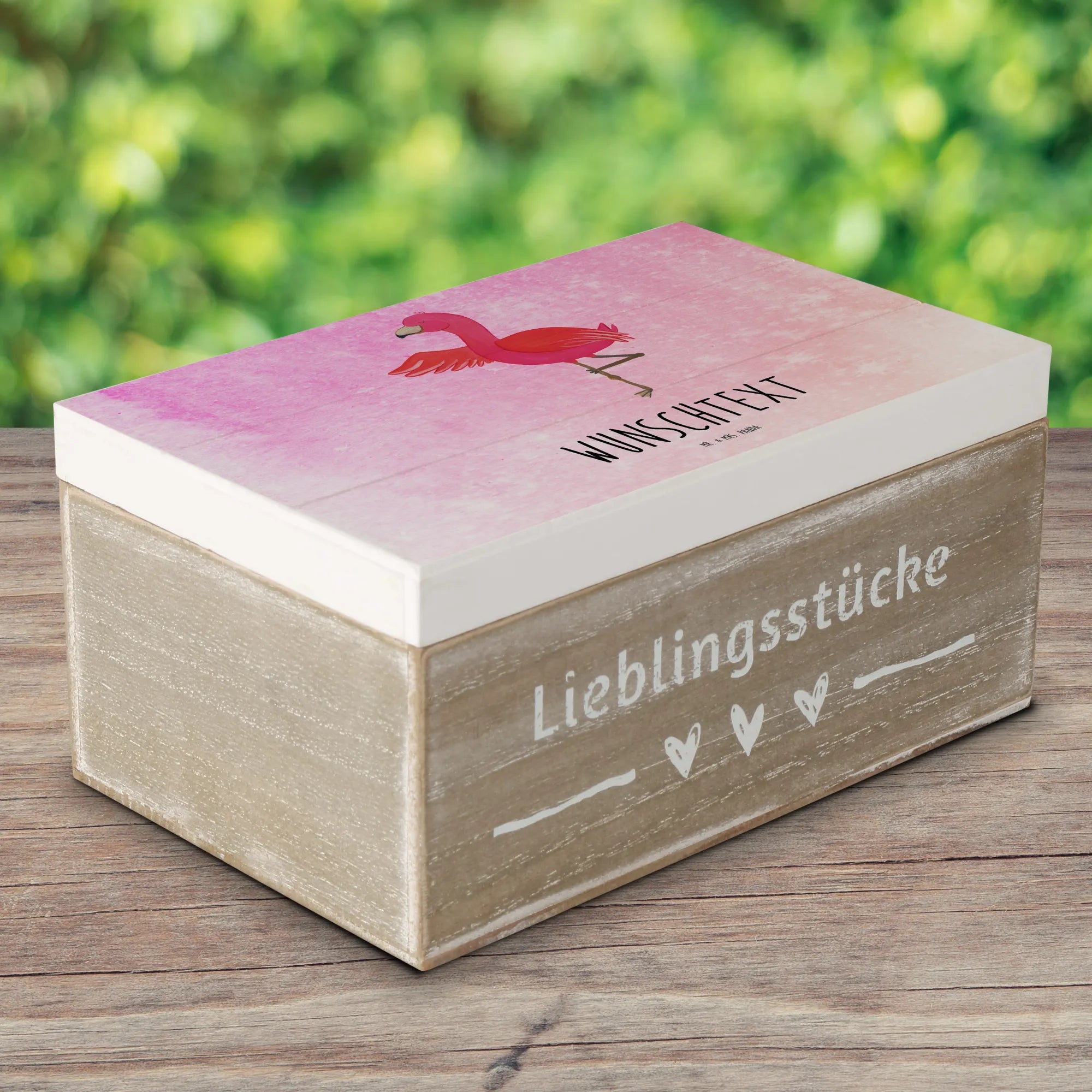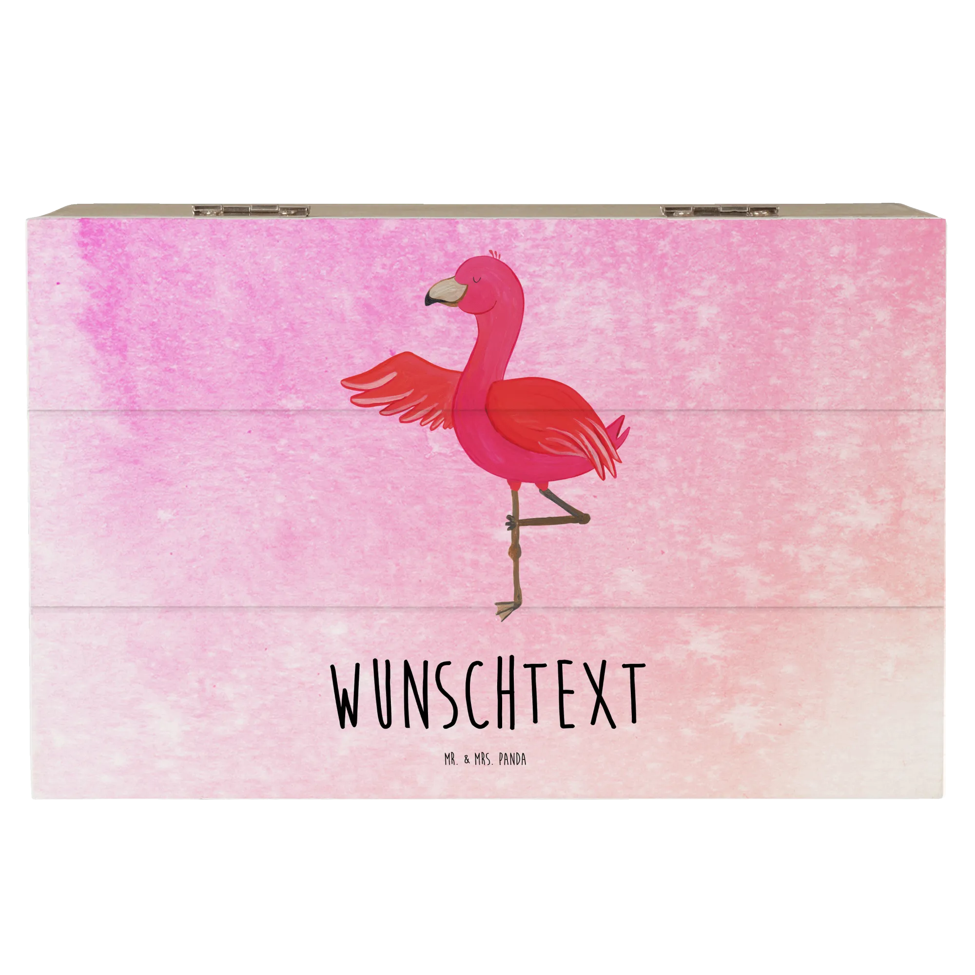 Personalizowane drewniane pudełko Flamingo joga - 22 x 15 cm - biały