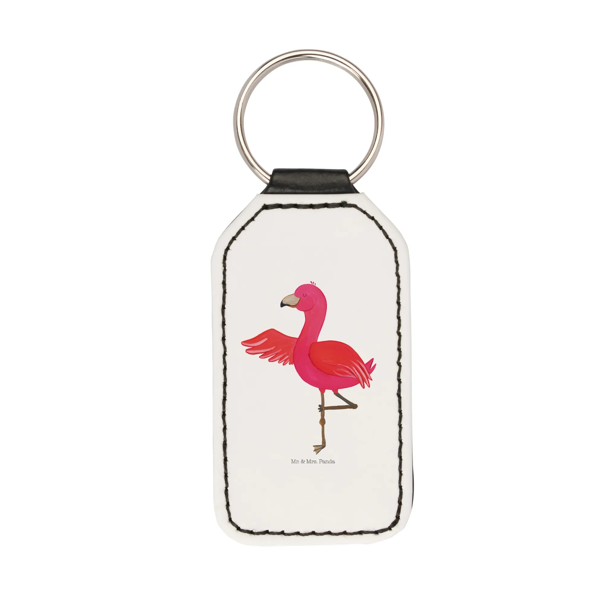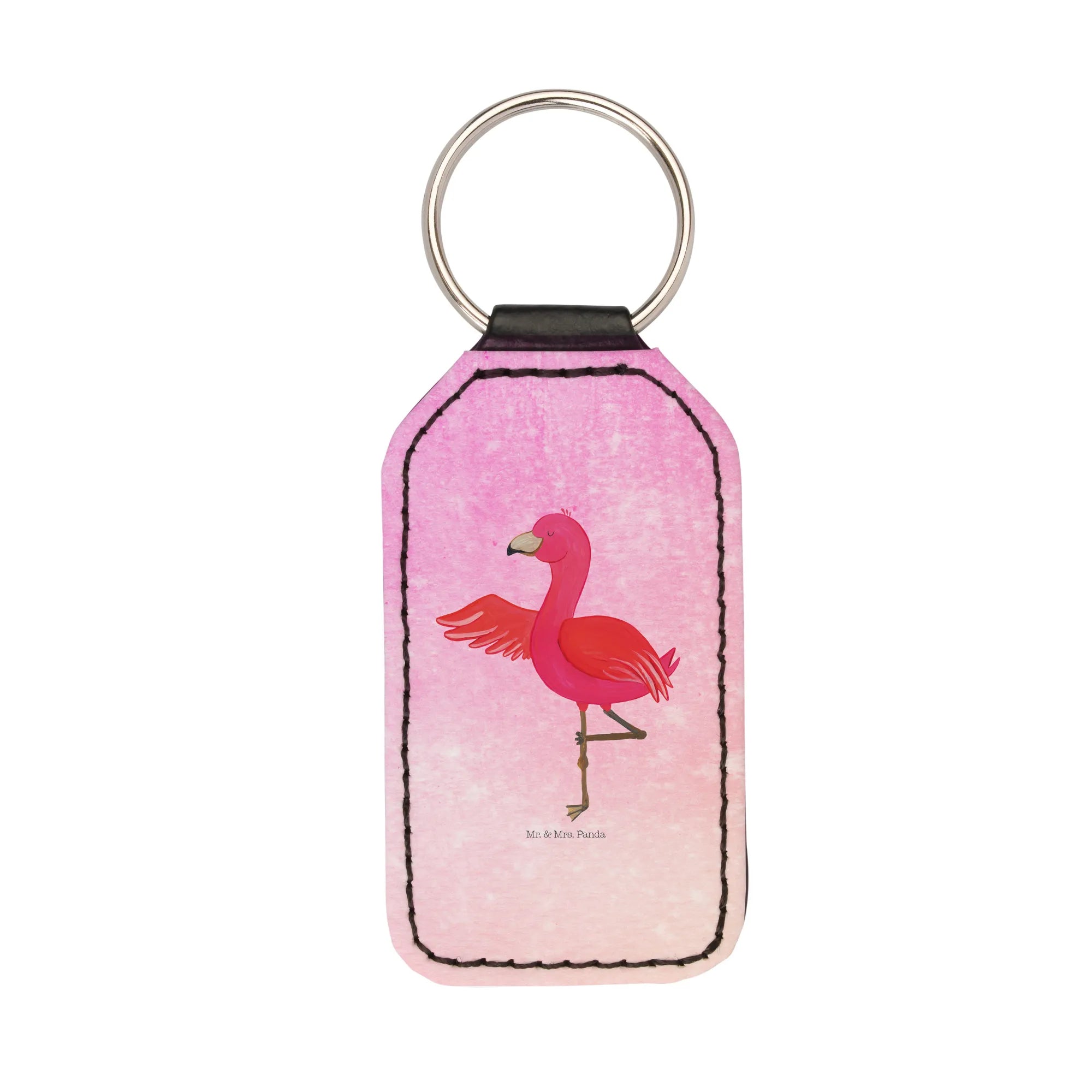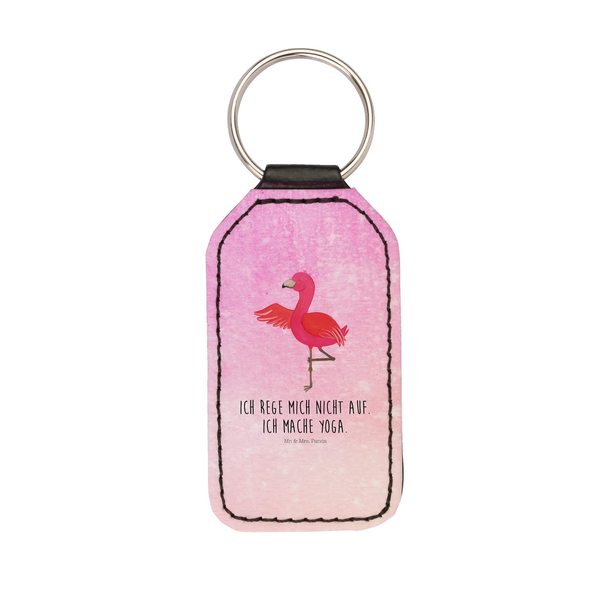 Prostokątny brelok Flamingo joga - z napisem - Akwarelowy róż