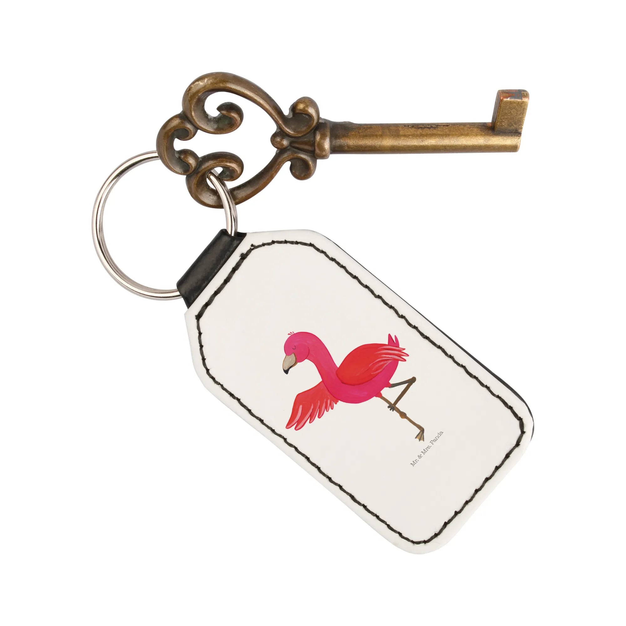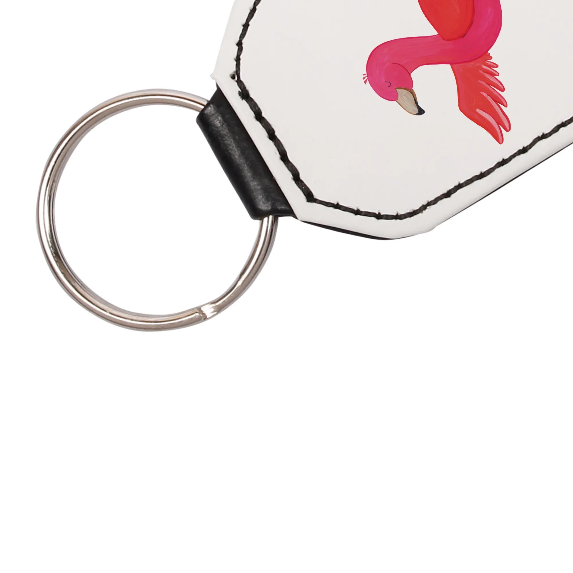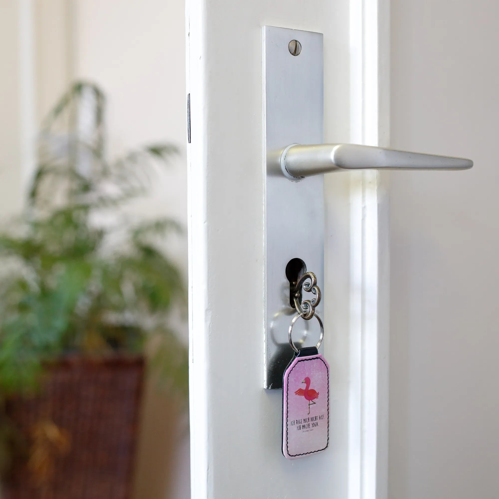 Prostokątny brelok Flamingo joga - z napisem - Akwarelowy róż