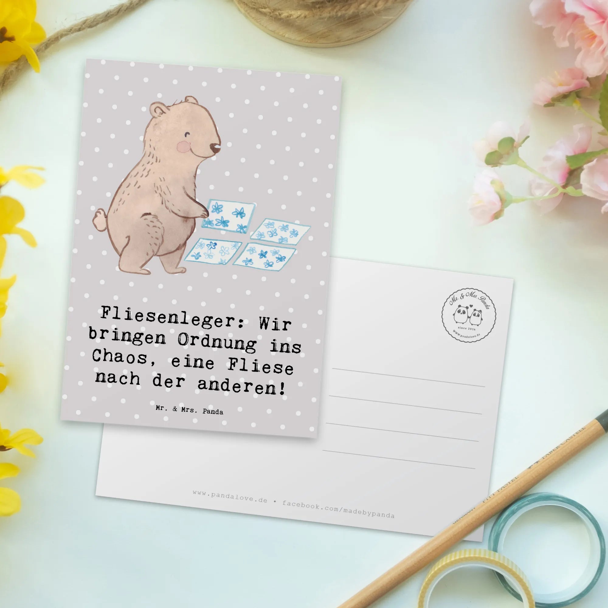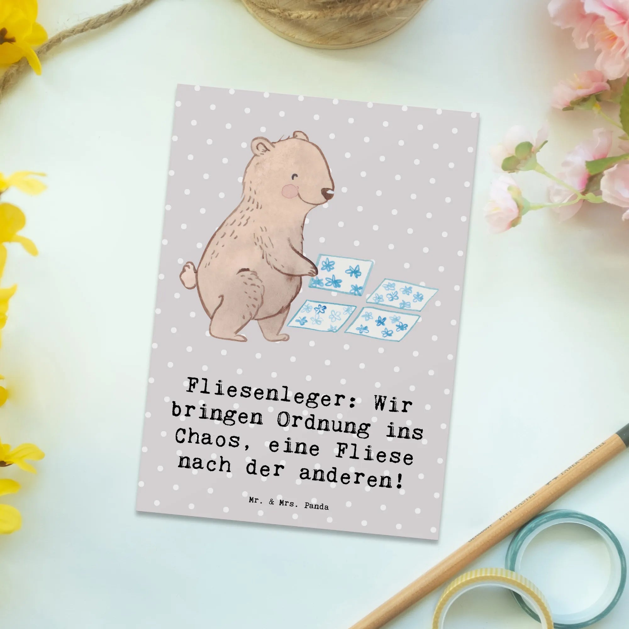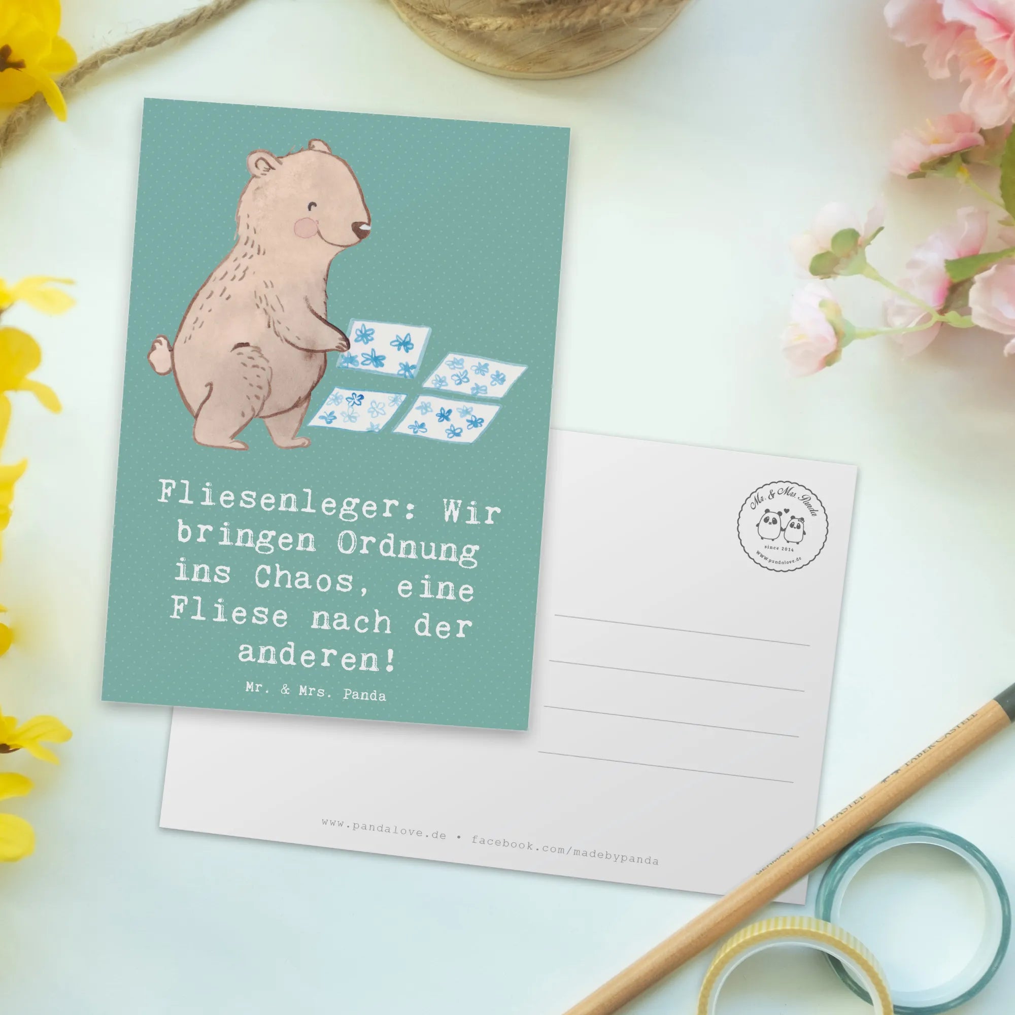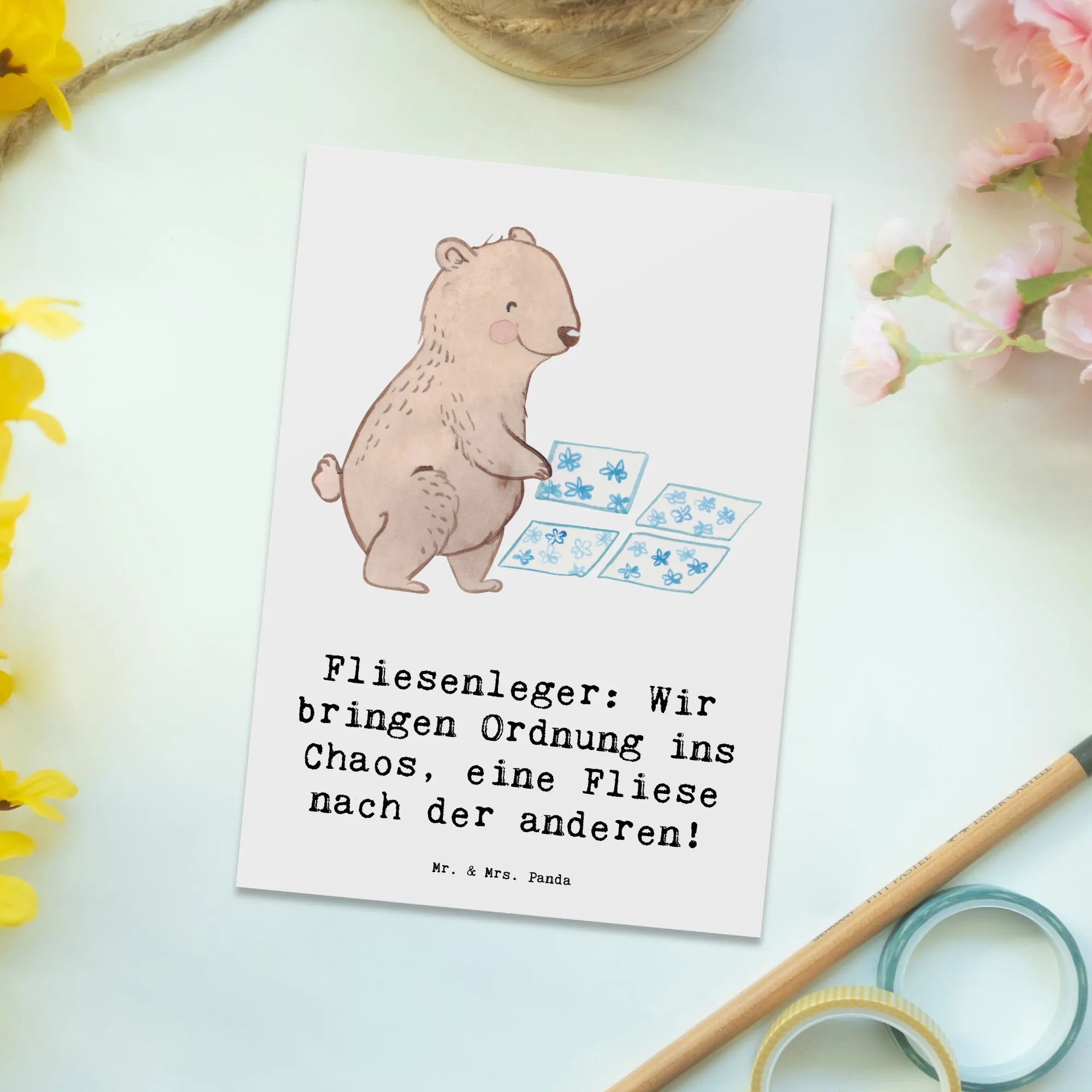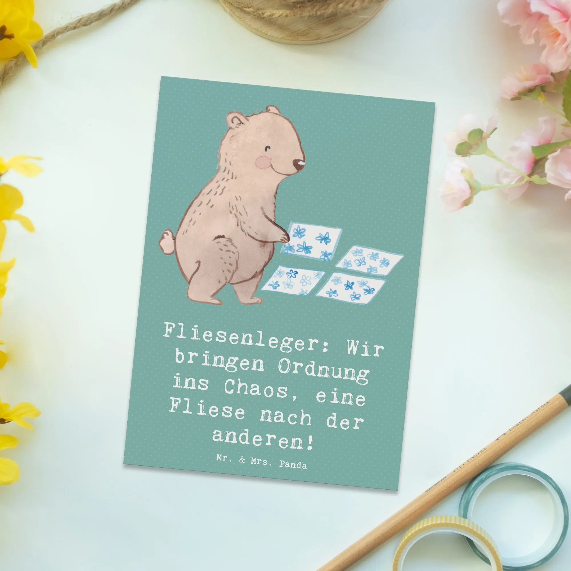 Postkarte Fliesenleger: Wir bringen Ordnung ins Chaos, eine Fliese nach der anderen! - Meeresbrise