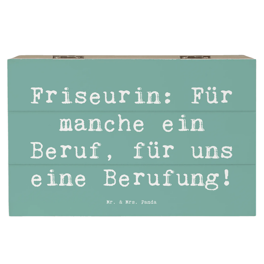 Die wunderschöne Holzkiste 'Friseurin: Für manche ein Beruf, für uns eine Berufung!' von Mr. & Mrs. Panda ist das perfekte Geschenk für alle, die in der kreativen Welt der Friseure arbeiten.
