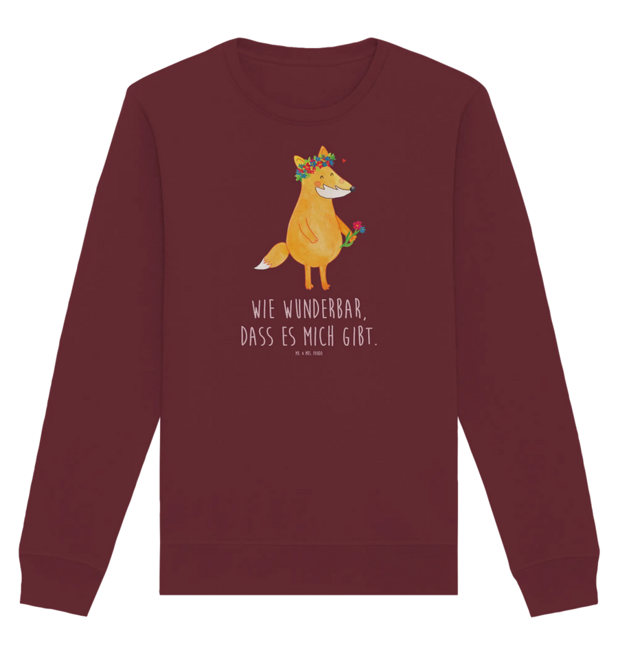 Organiczny Sweter lis Kwiaty - Größe L - z napisem - Burgundy