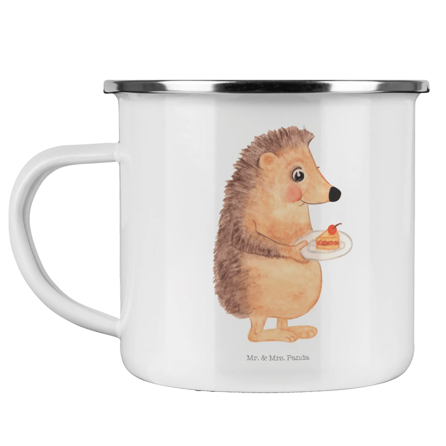 Kempingowy kubek emaliowany jeż kawałek ciasta - bez napisu - biały