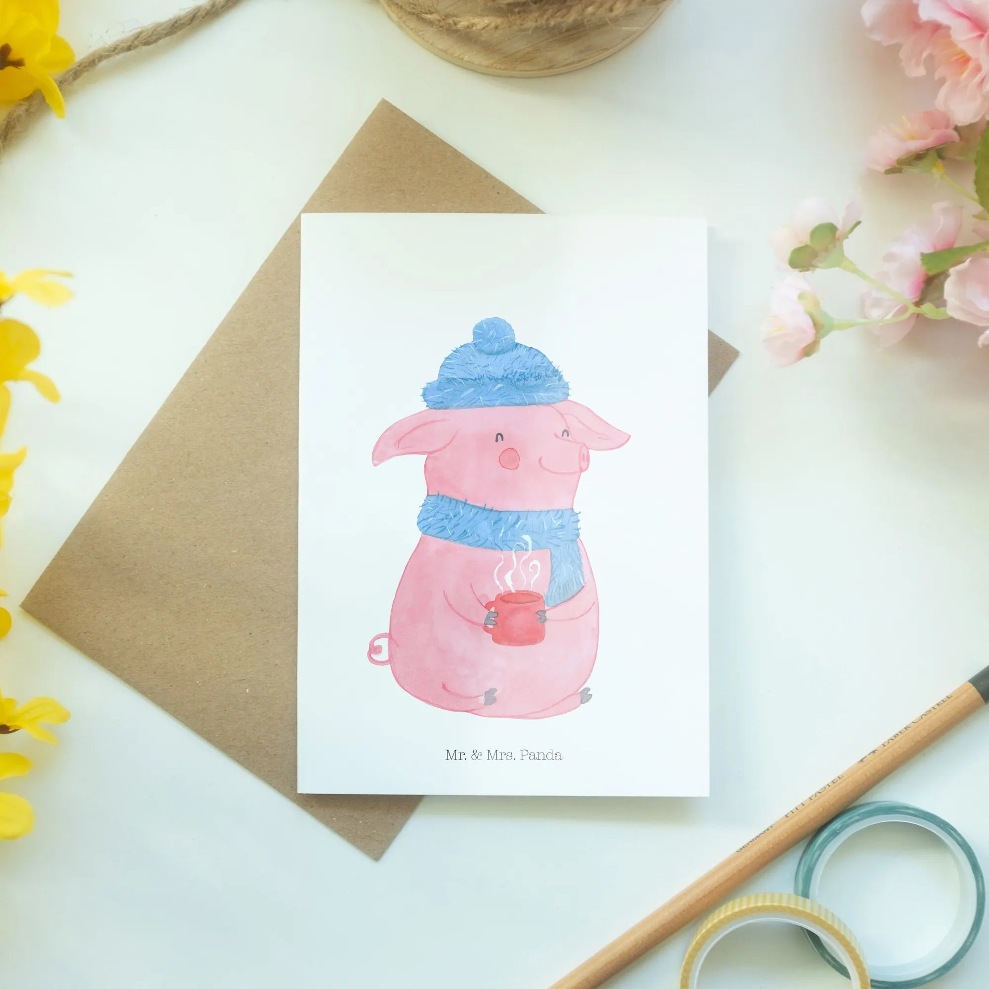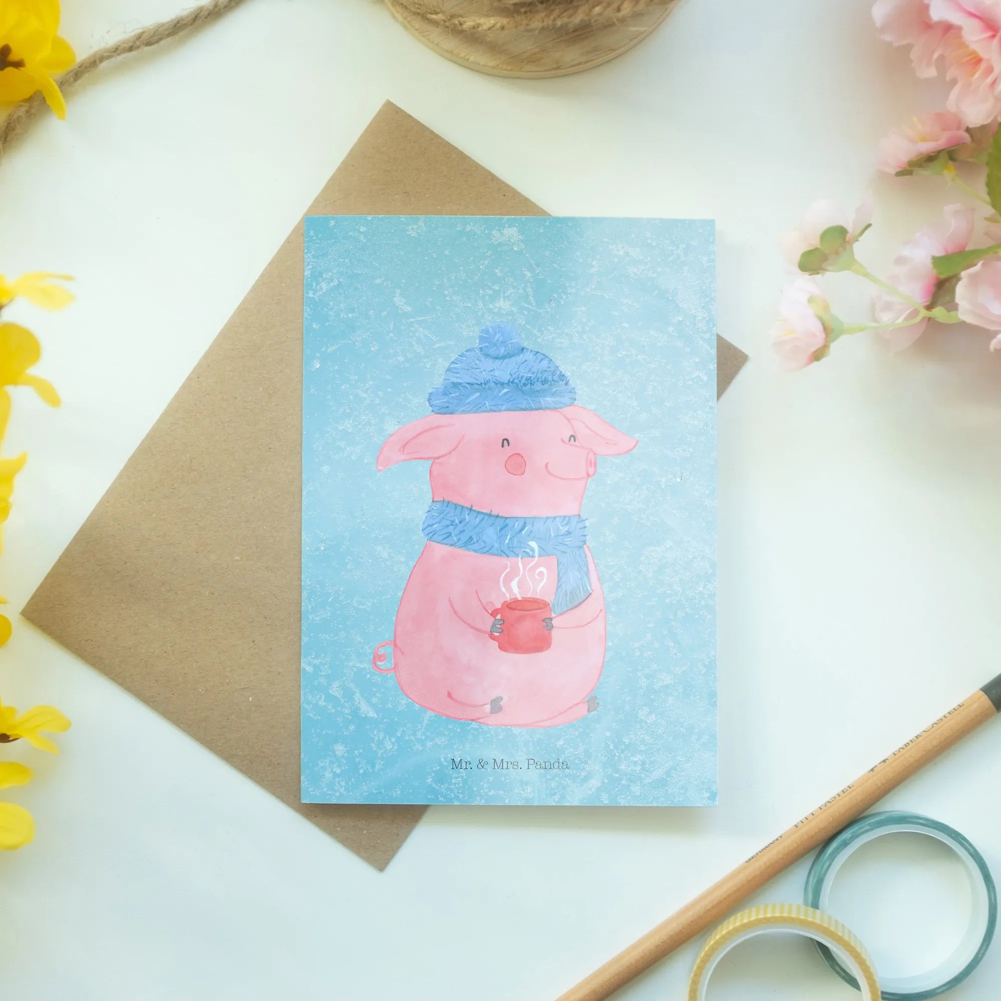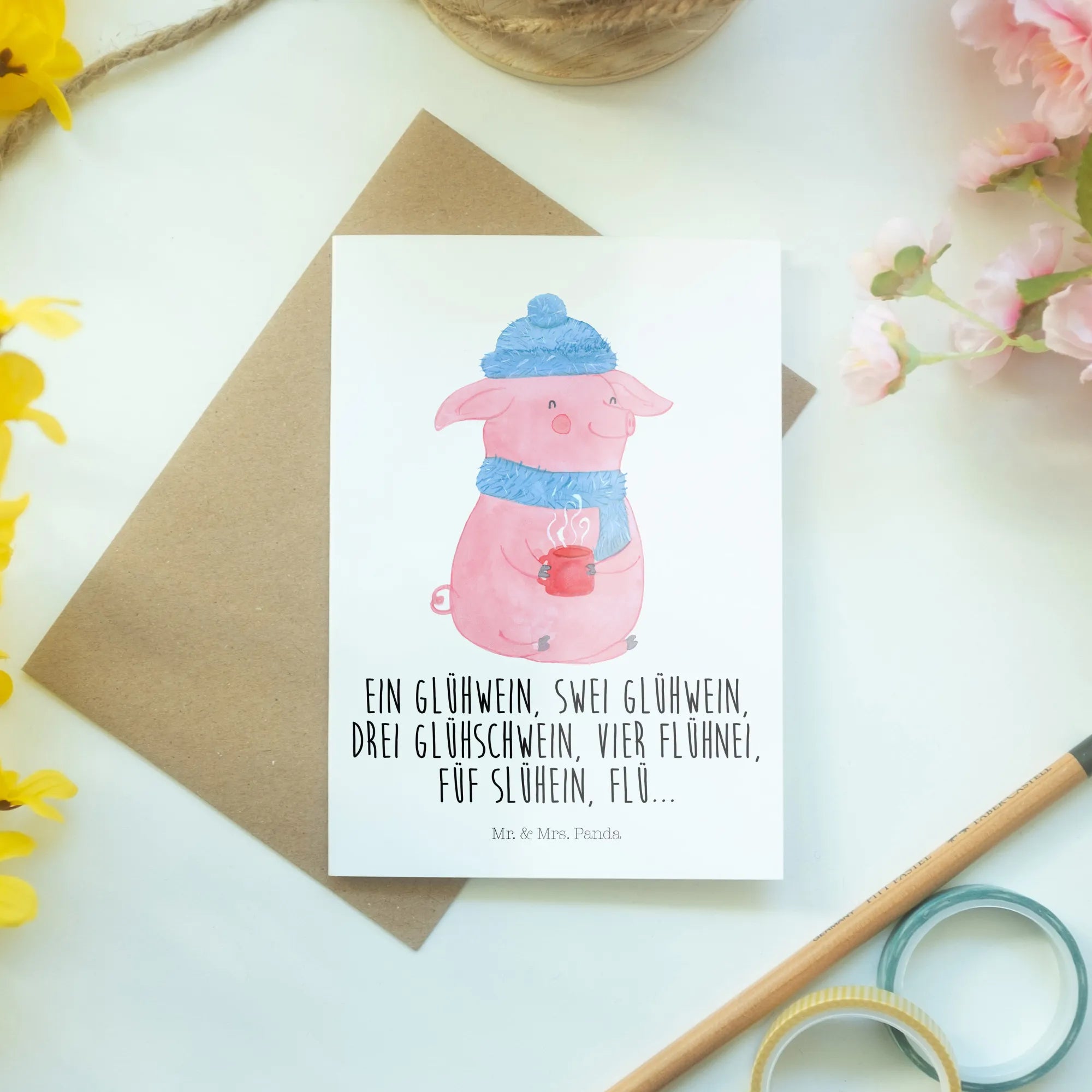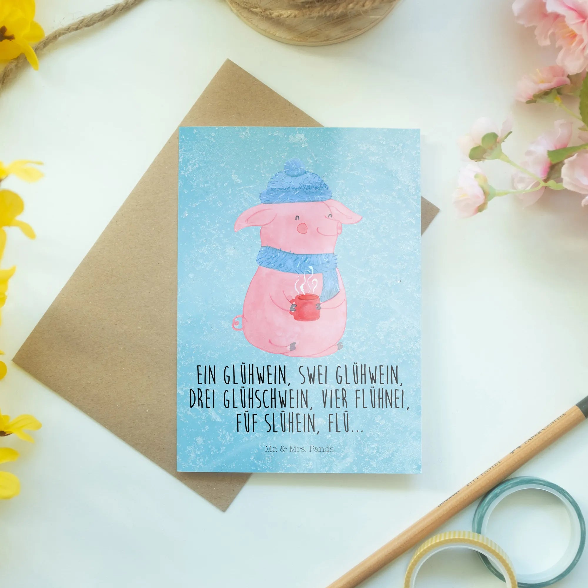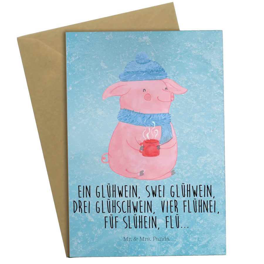 Kartka okolicznościowa Świnka grzane wino - z napisem - Eisblau
