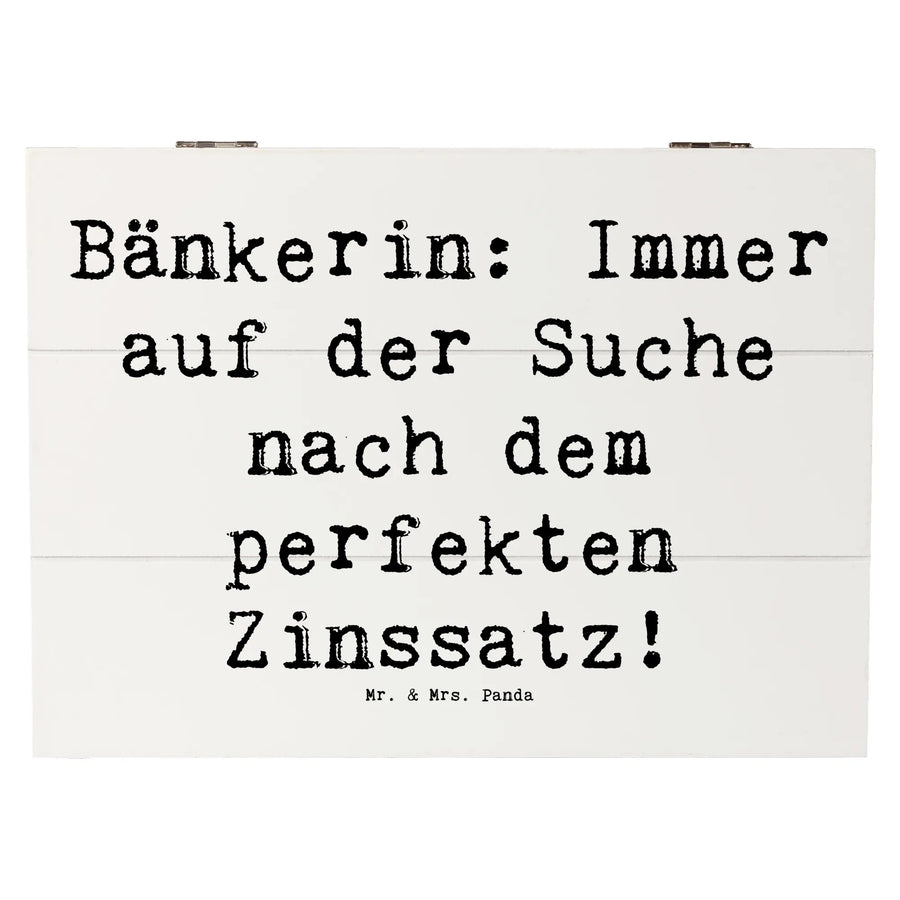 Holzkiste Spruch Bänkerin Zinssatz - 25 x 18 cm - Weiß