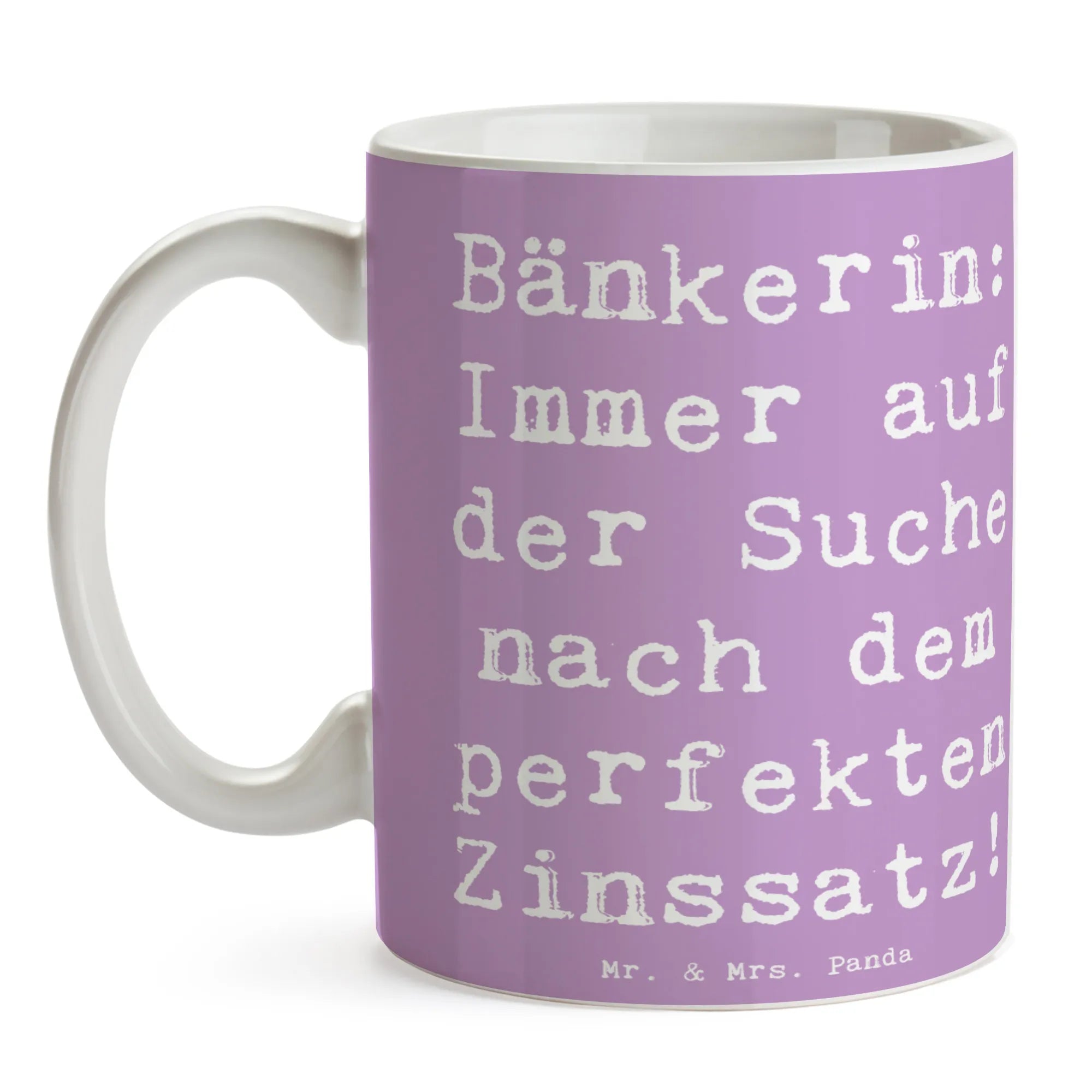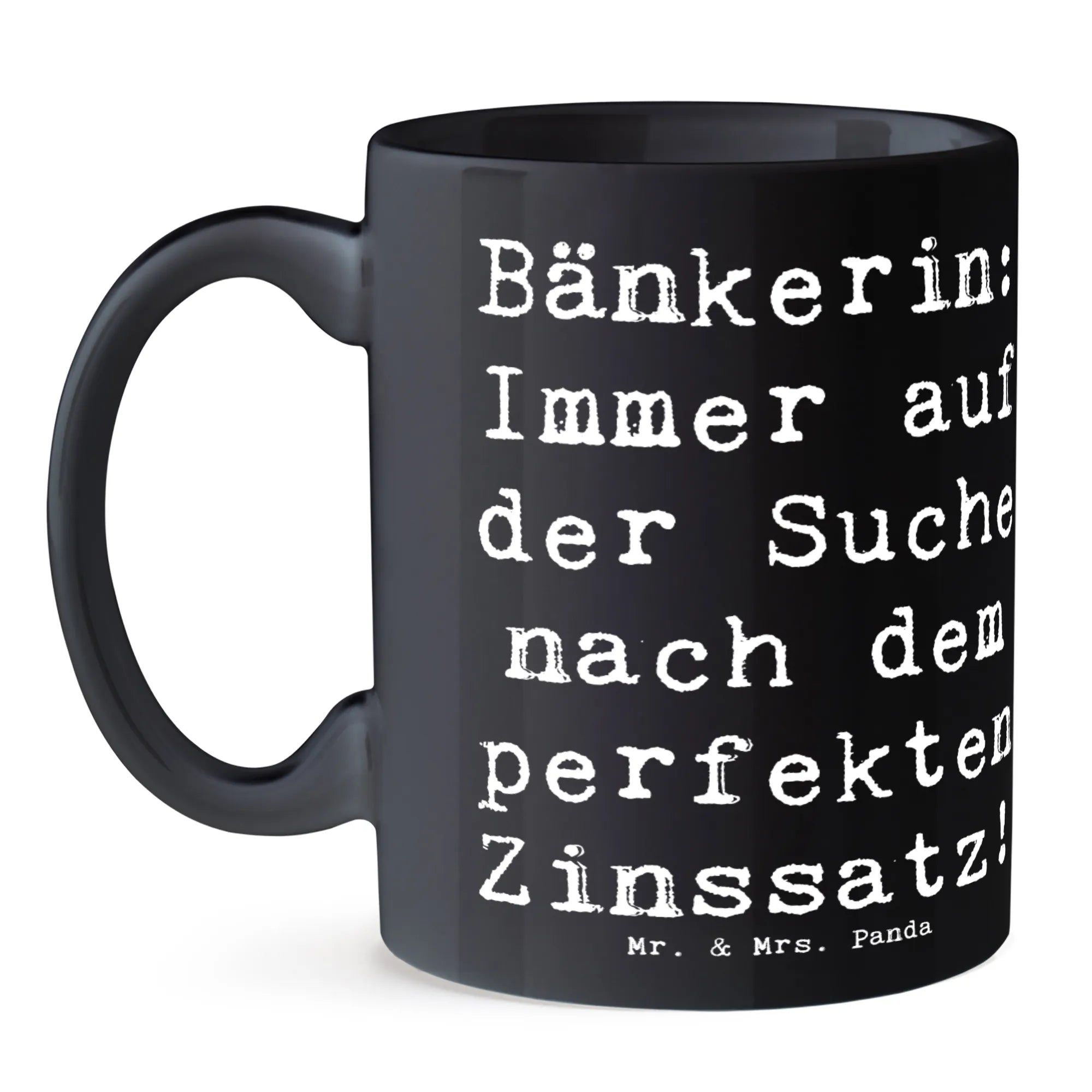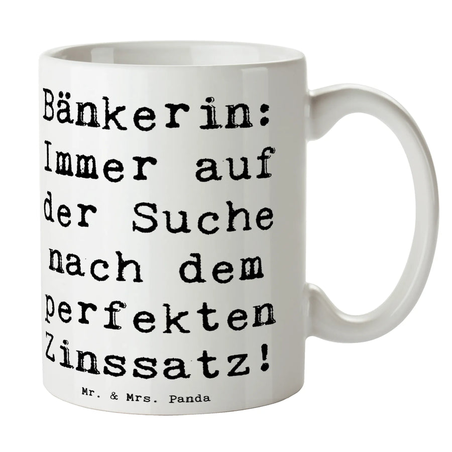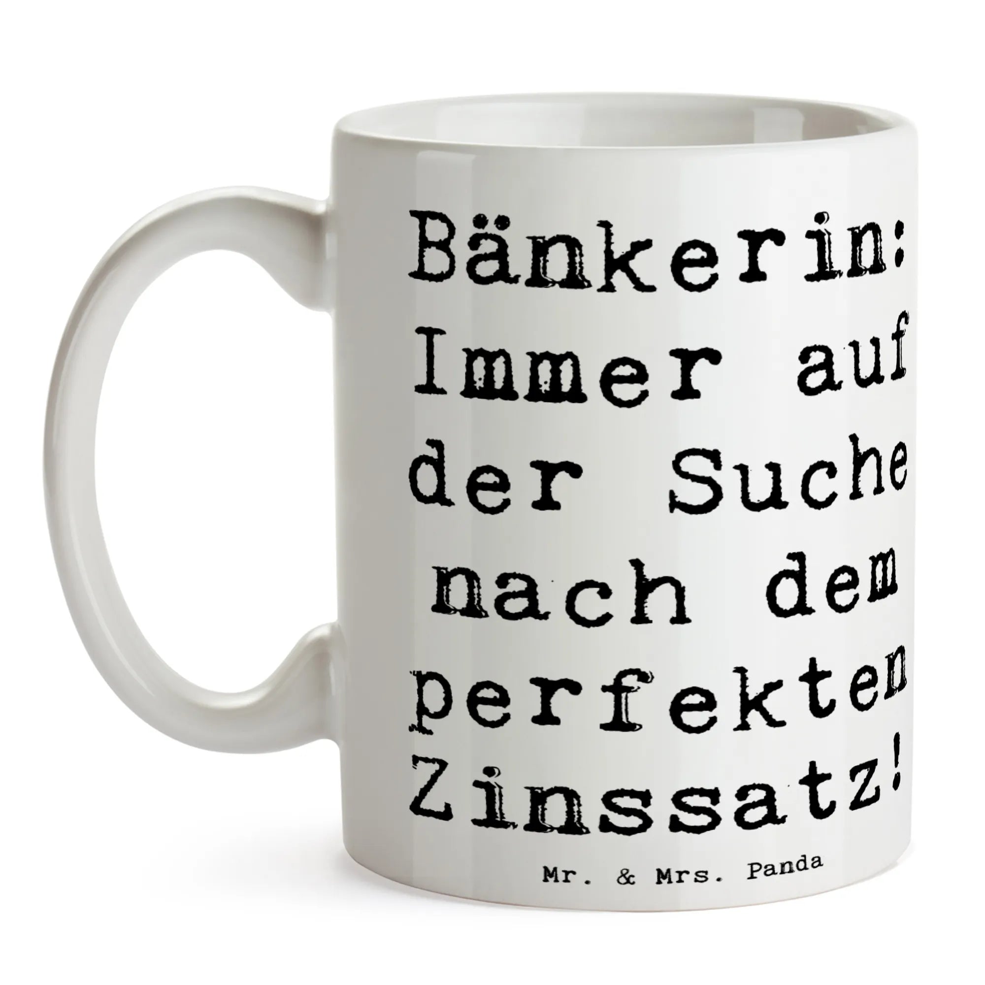 Mug Cytat Bänkerin: Immer auf der Suche nach dem perfekten Zinssatz! - Biały