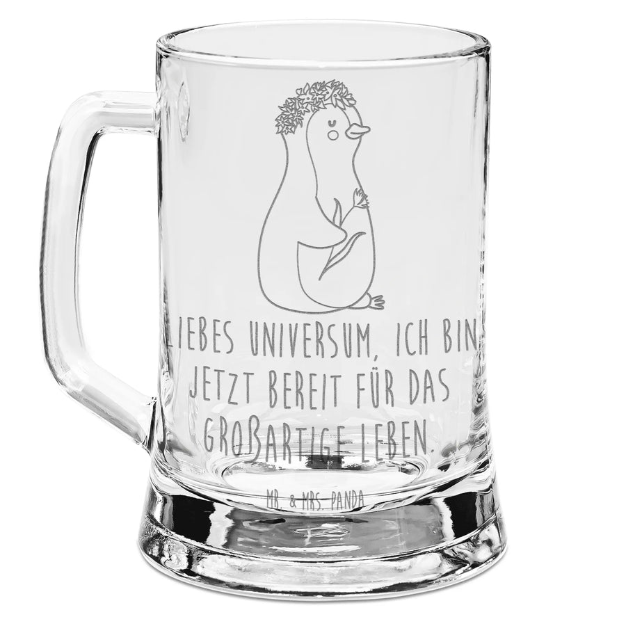 Grawerowany Kufel Piwa pingwin kwiaty - z napisem