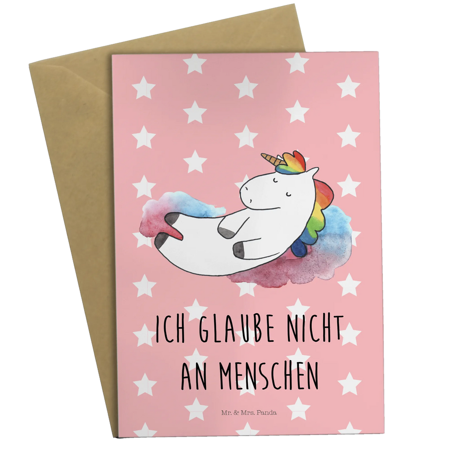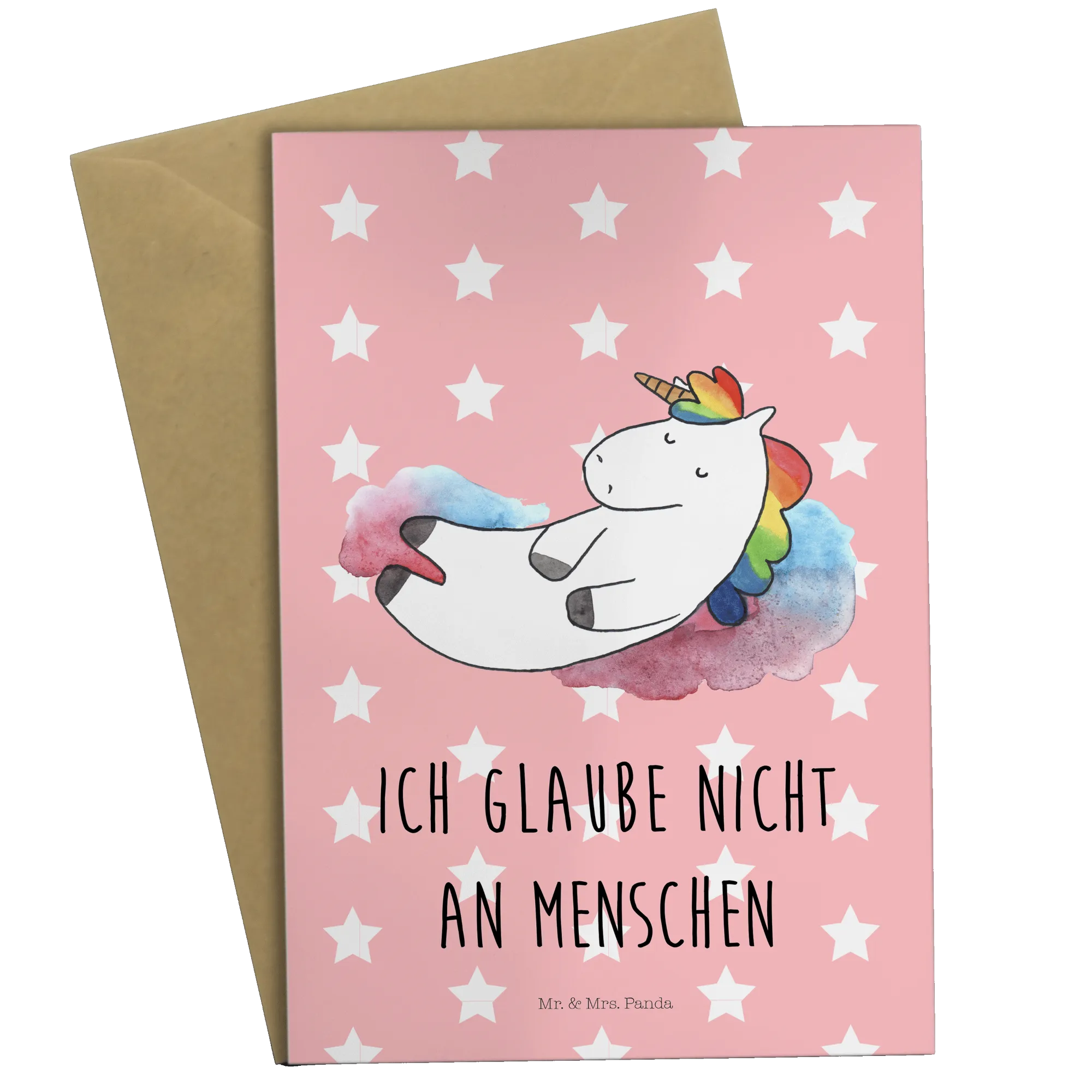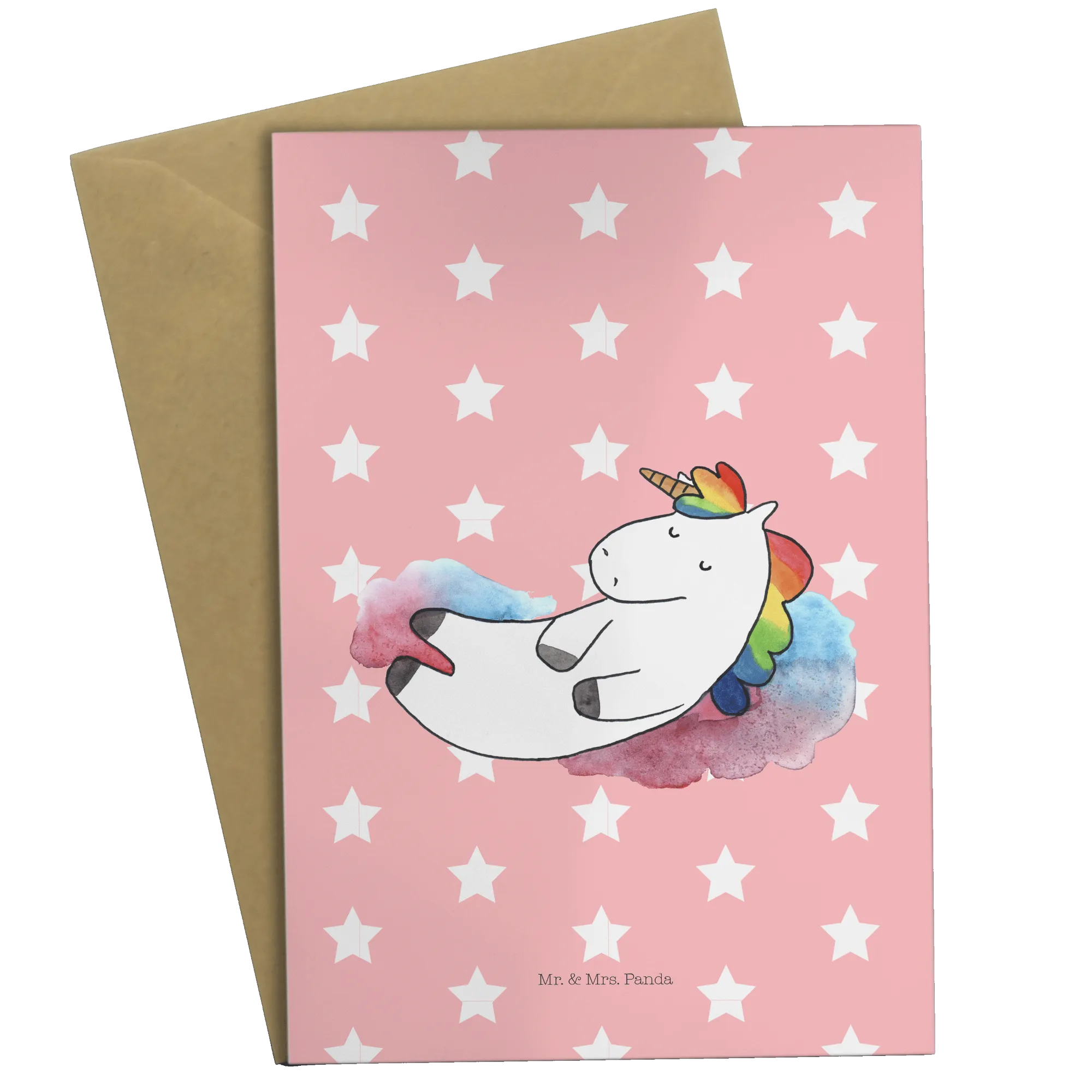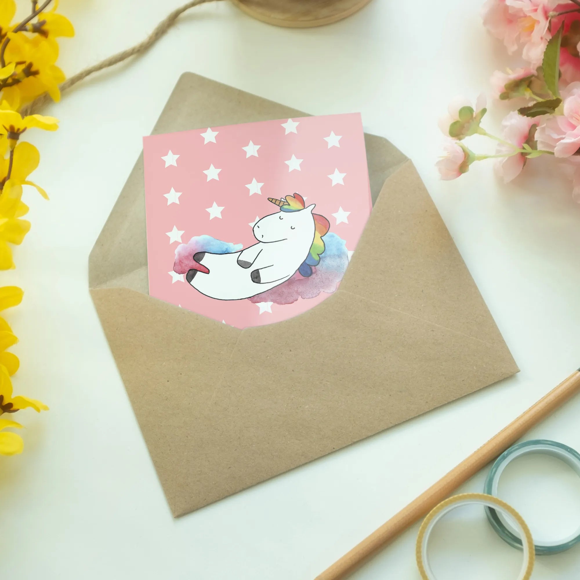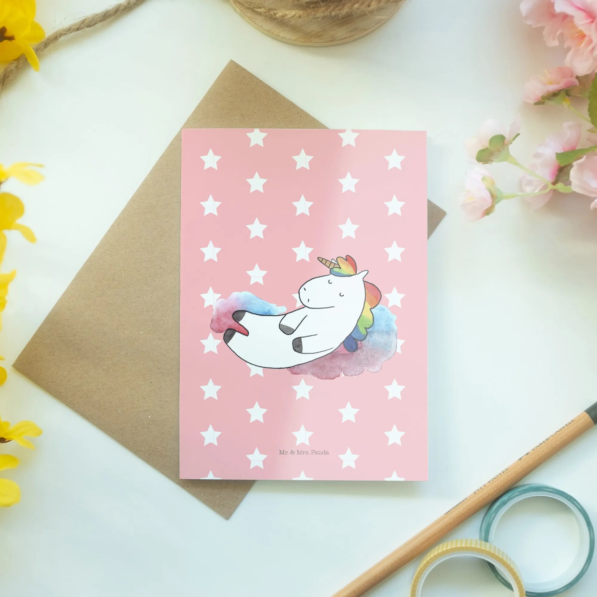 Kartka okolicznościowa Jednorożec Siódme niebo - z napisem - Różowy Czerwony