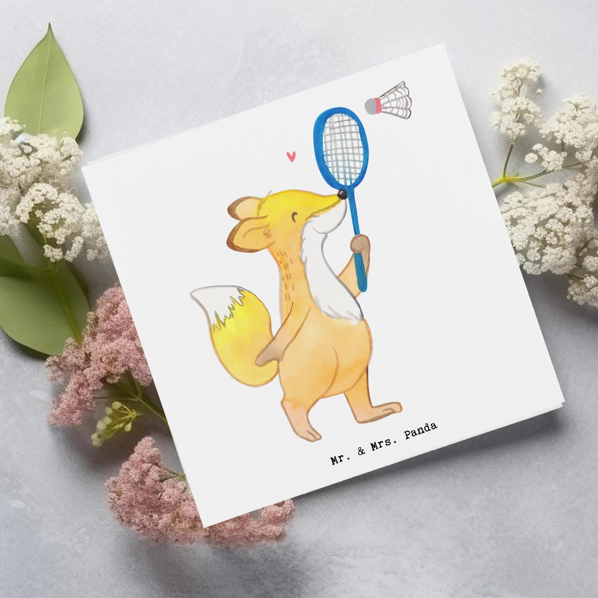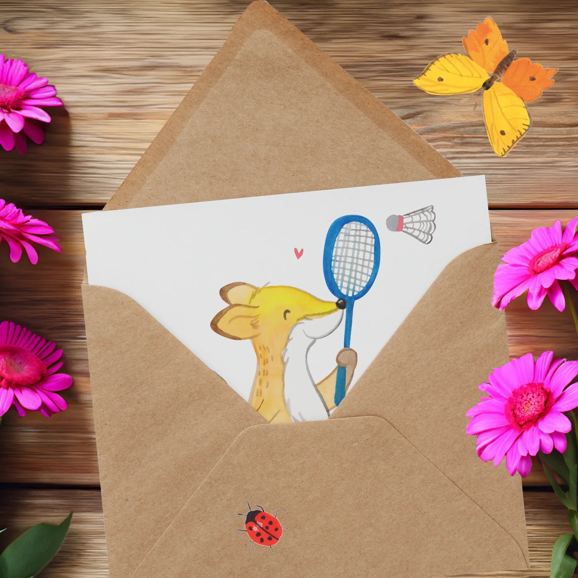 Deluxe Karte Fuchs Federball spielen - mit Spruch - Weiß
