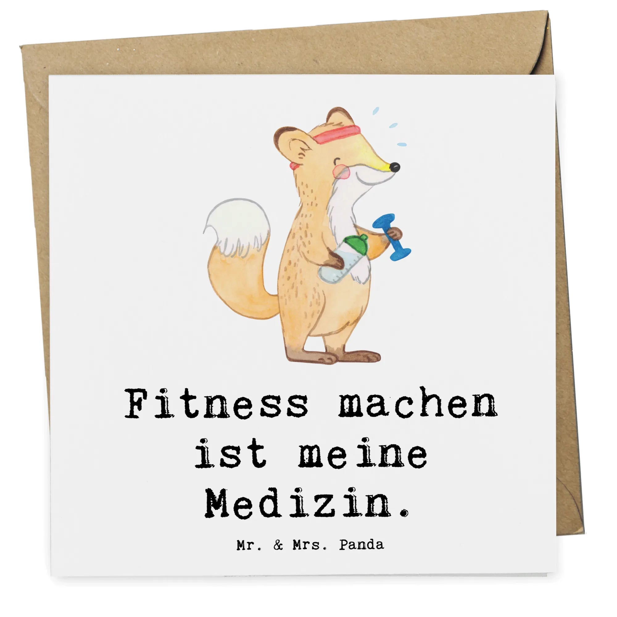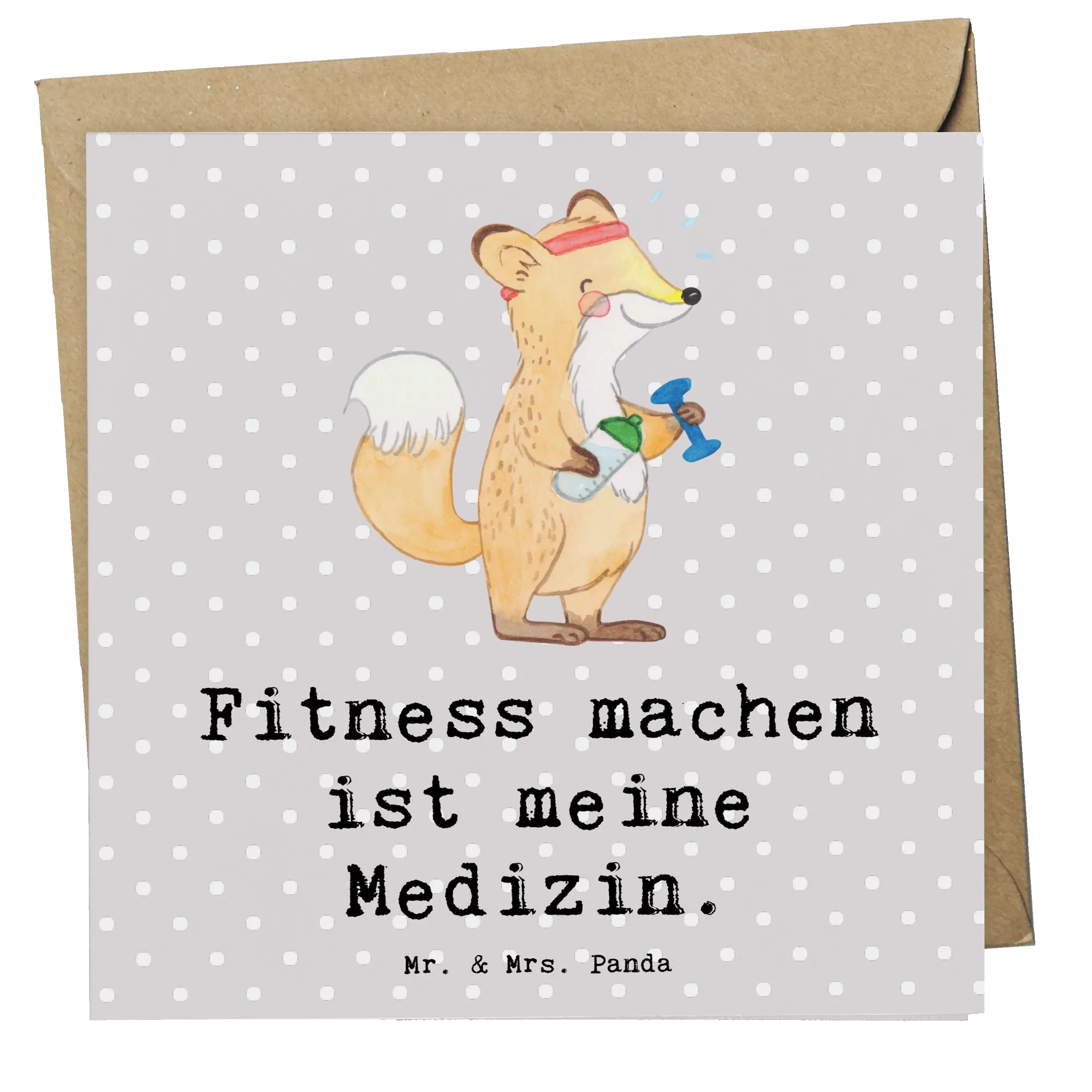 Mit ihrem zauberhaften Design zeigt die Karte einen süßen Fuchs, der mit einer Trinkflasche in der einen Hand und einer Hantel in der anderen Hand voller Elan Sport treibt. Der Slogan "Fitness machen ist meine Medizin" verdeutlicht, wie wichtig ein gesunder Lebensstil ist.