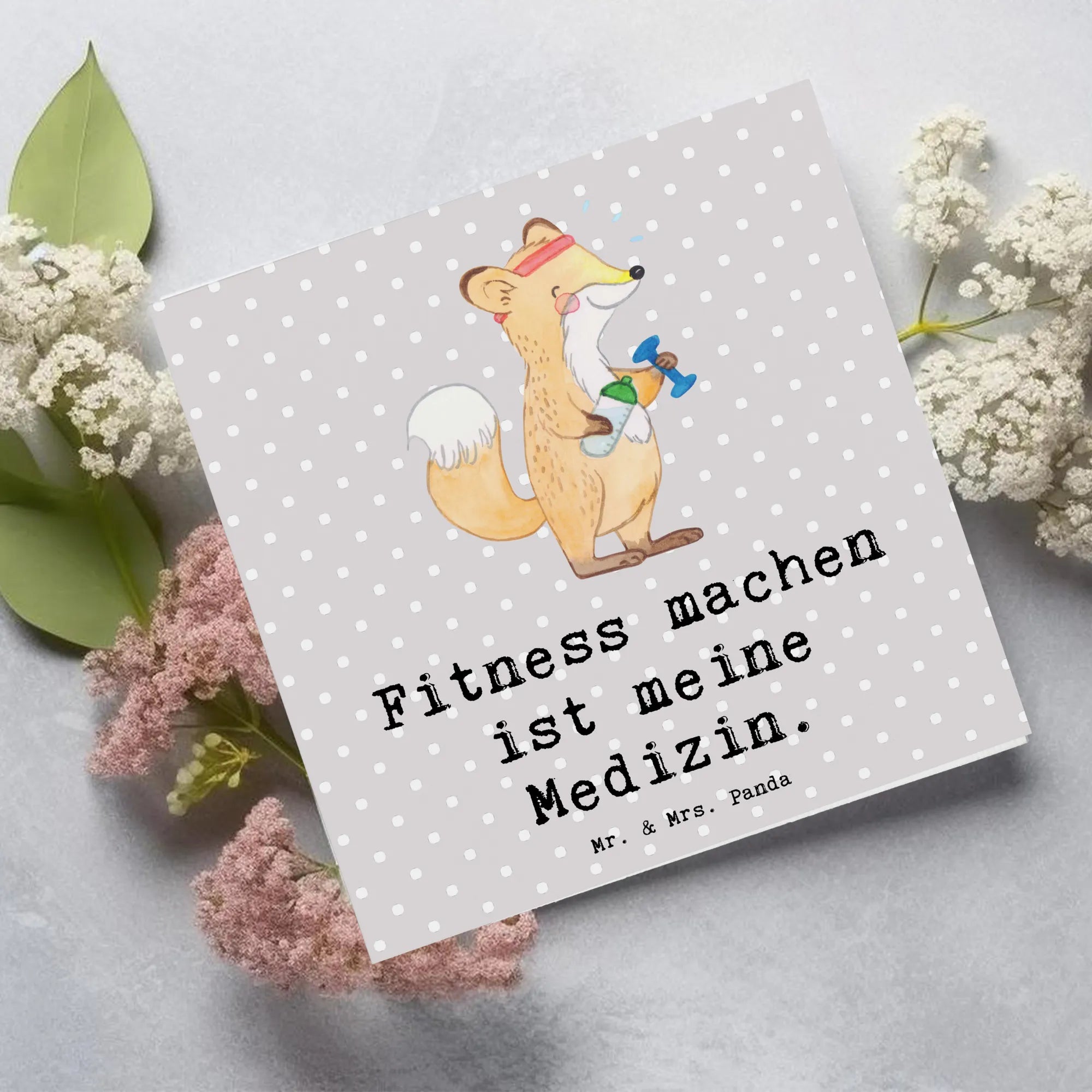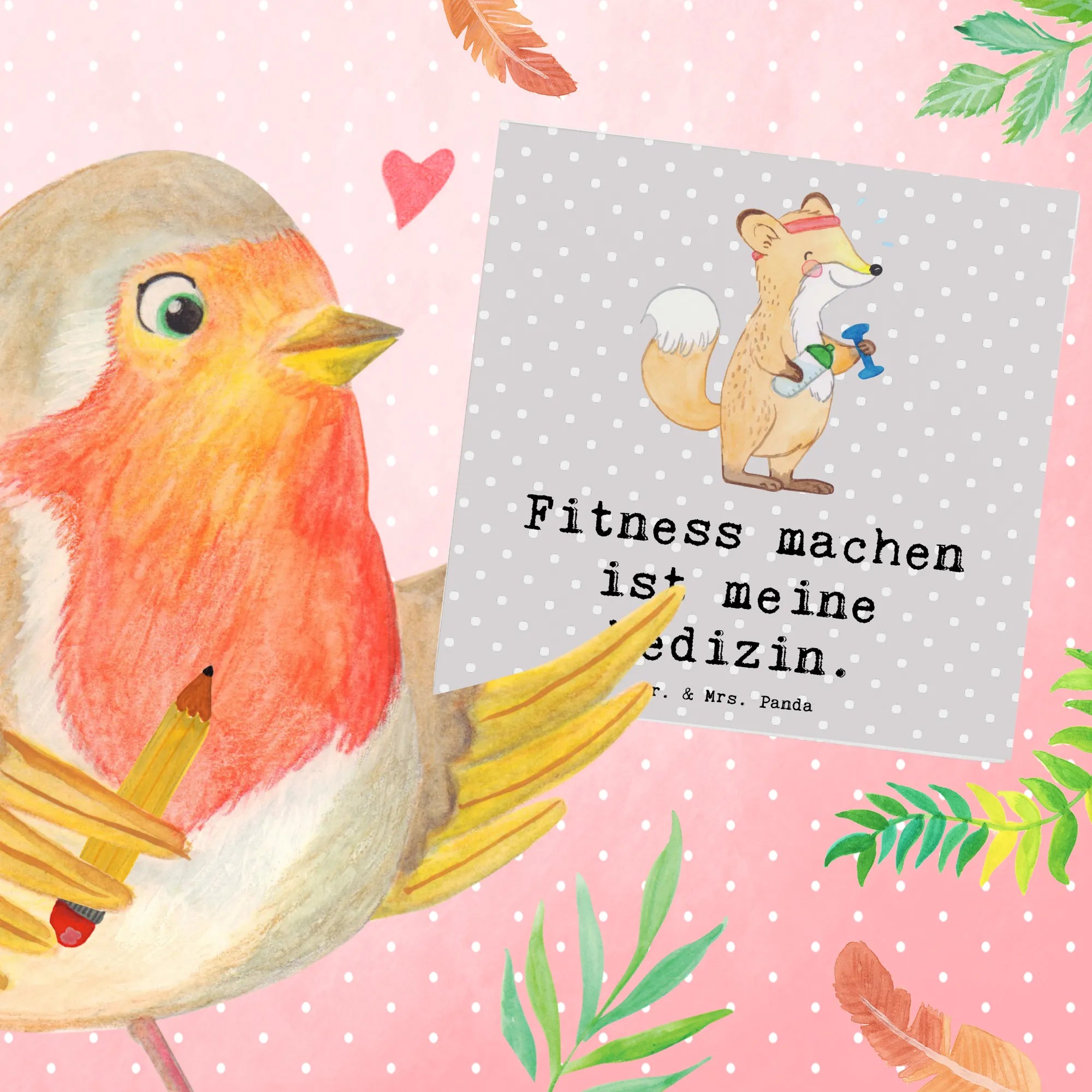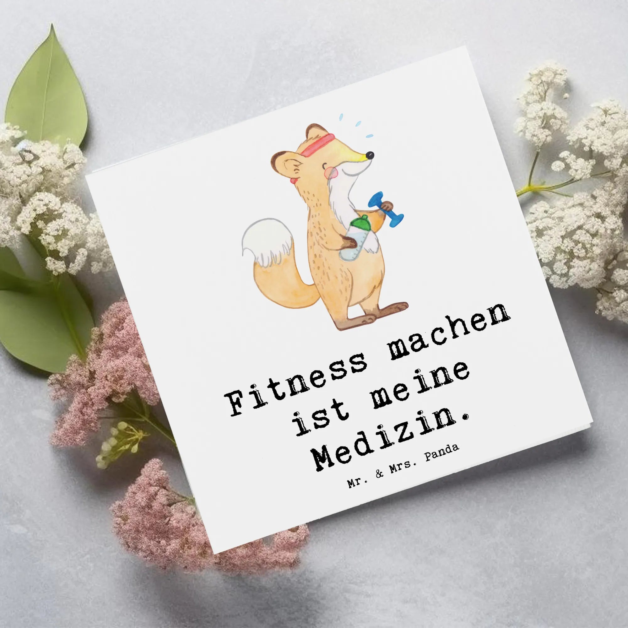 Jeder, der gerne sportlich aktiv ist oder im Fitnessstudio trainiert, wird sich über diesen besonderen Gruß freuen. Der niedliche Fuchs auf der Vorderseite, der eine Hantel in der einen Hand und eine Trinkflasche in der anderen hält, bringt ein Lächeln auf die Gesichter der Empfänger. Unter dem Motiv steht der Satz „Fitness machen ist meine Medizin“. Dieser Spruch trifft nicht nur den Kern der Fitnessphilosophie, sondern passt auch wunderbar für Sportler und Fitnessliebhaber.