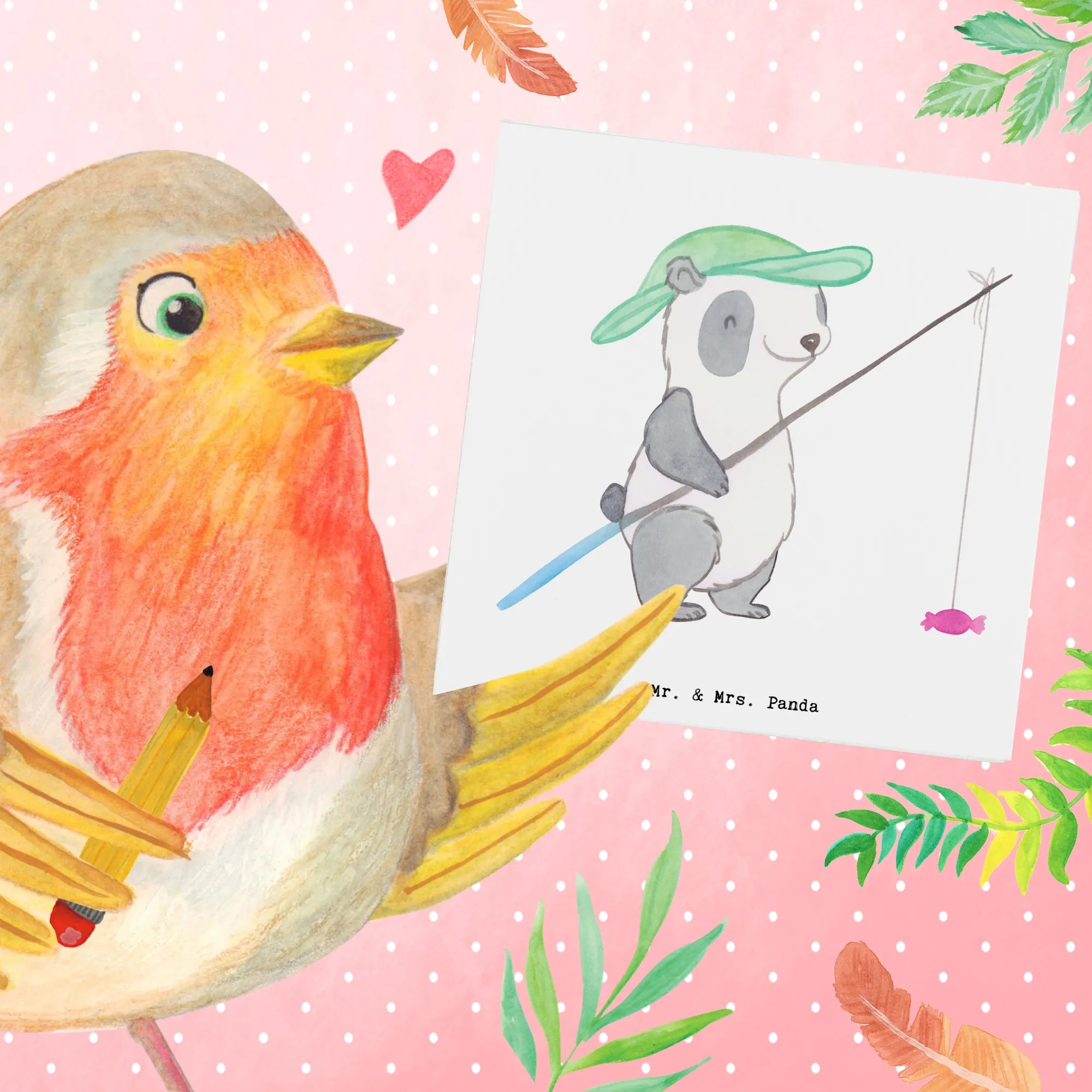 Deluxe Karte Panda Angeln - mit Spruch - Weiß