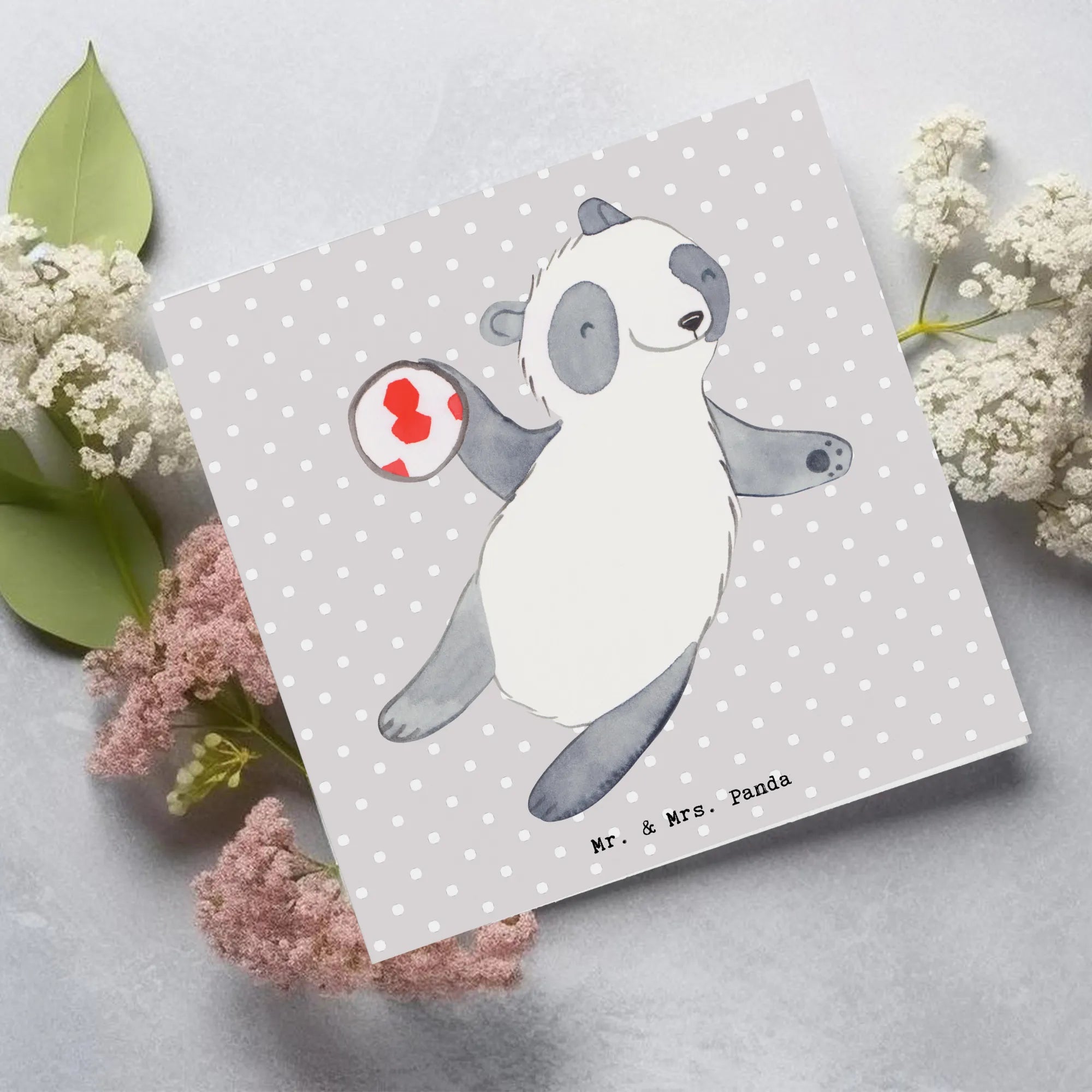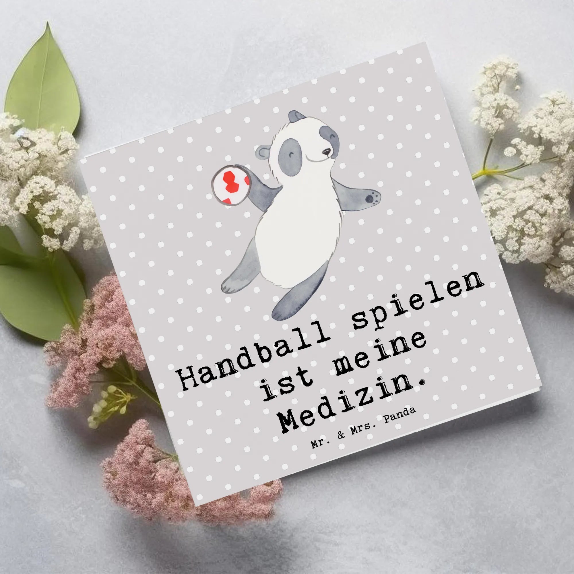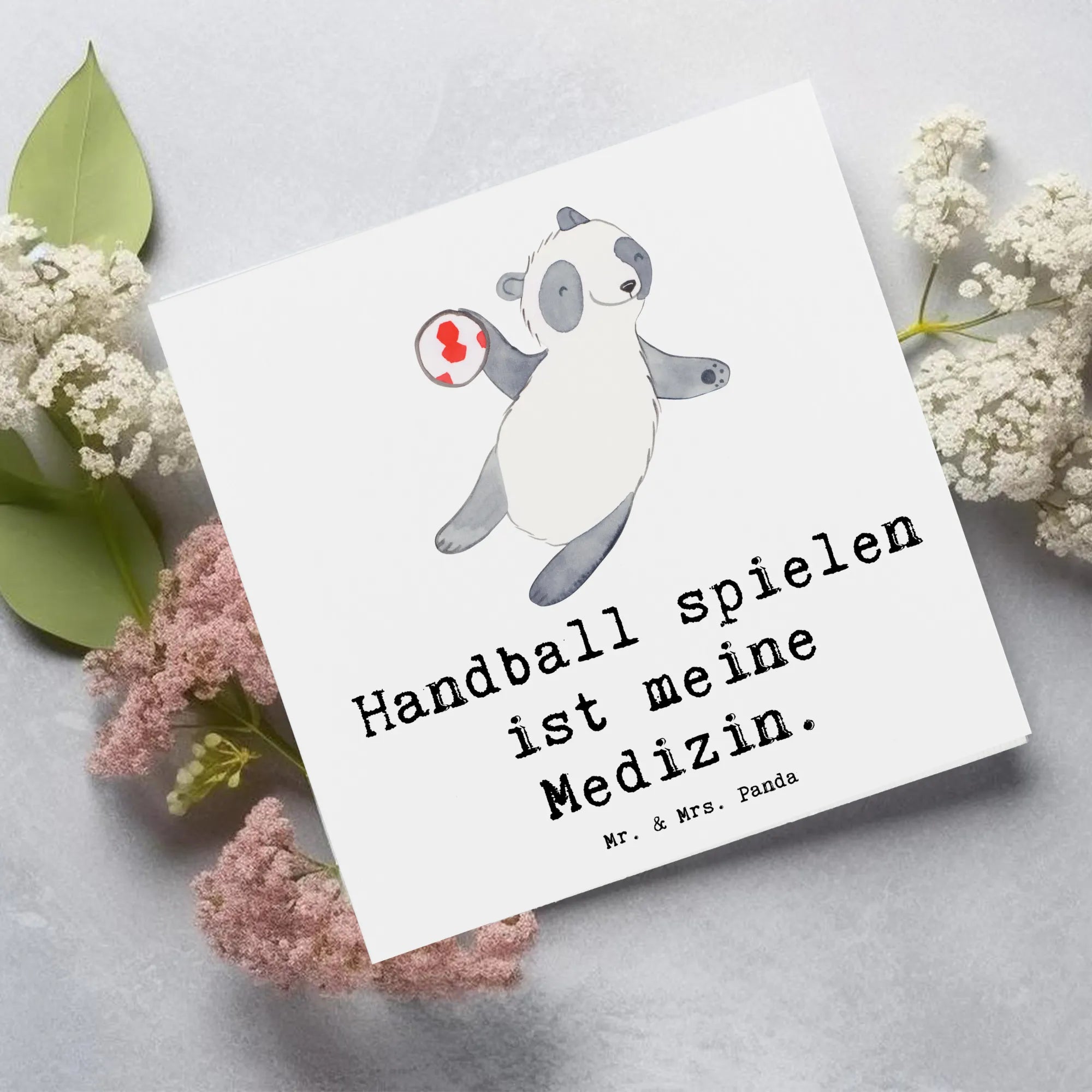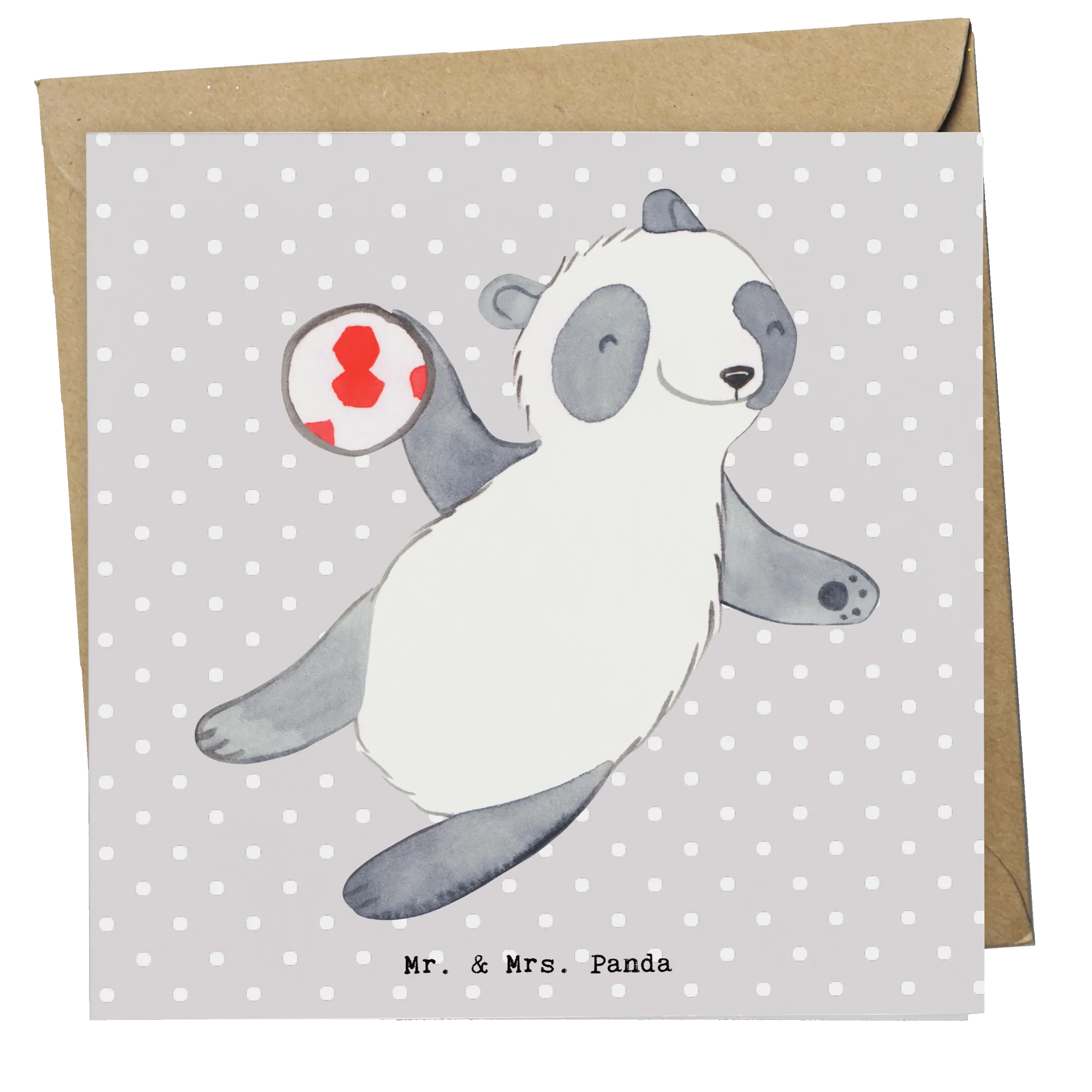 Die Deluxe Karte mit dem süßen Motiv "Panda Handball spielen ist meine Medizin" von Mr. & Mrs. Panda ist das perfekte Geschenk für alle Handball-Fans und Sportbegeisterte! Diese hochwertige, quadratische Karte wurde mit viel Liebe designt und verkörpert die Leidenschaft für den Handballsport auf eindrucksvolle Weise. Das Motiv zeigt einen fröhlichen Panda, der mit vollem Körpereinsatz Handball spielt und strahlt pure Lebensfreude aus.