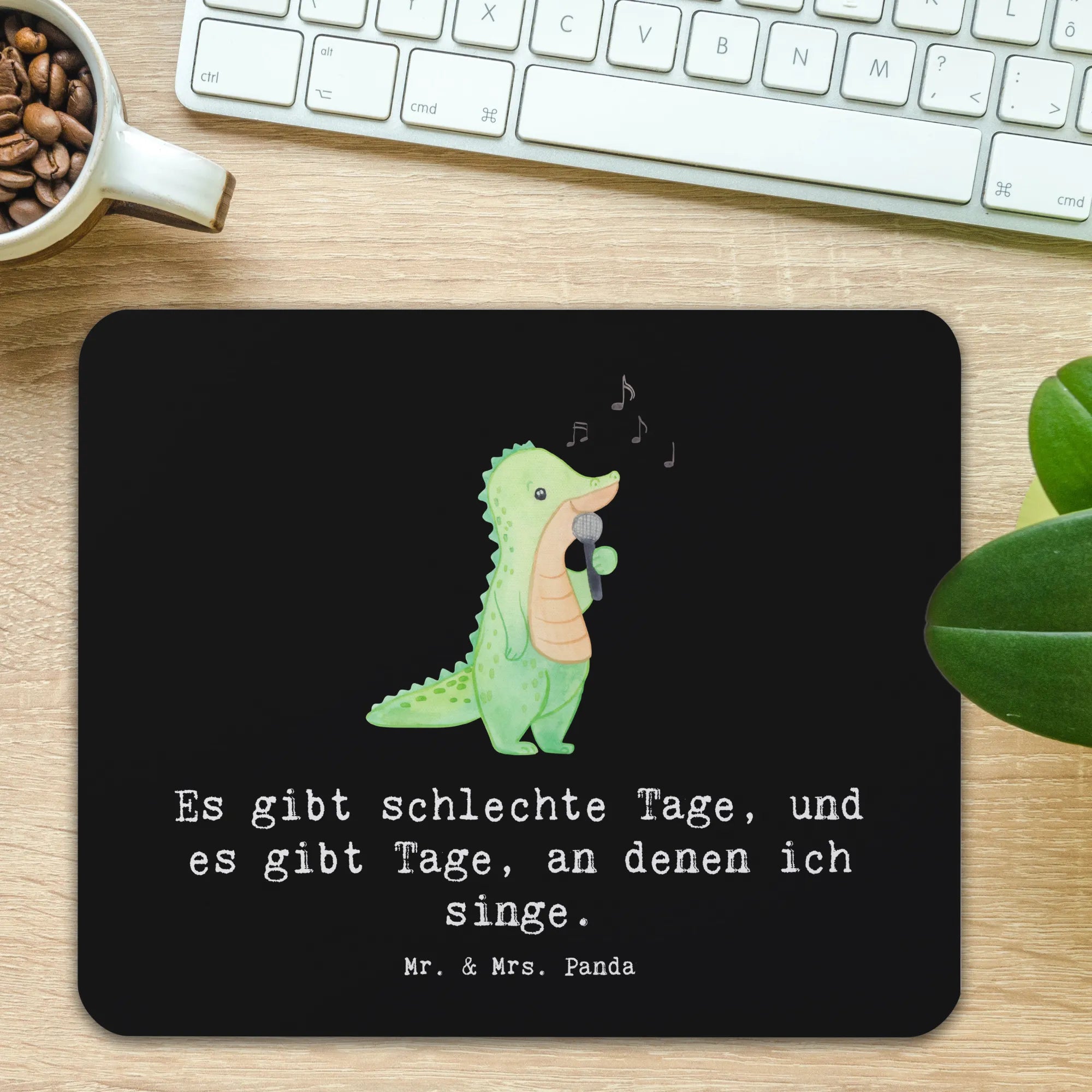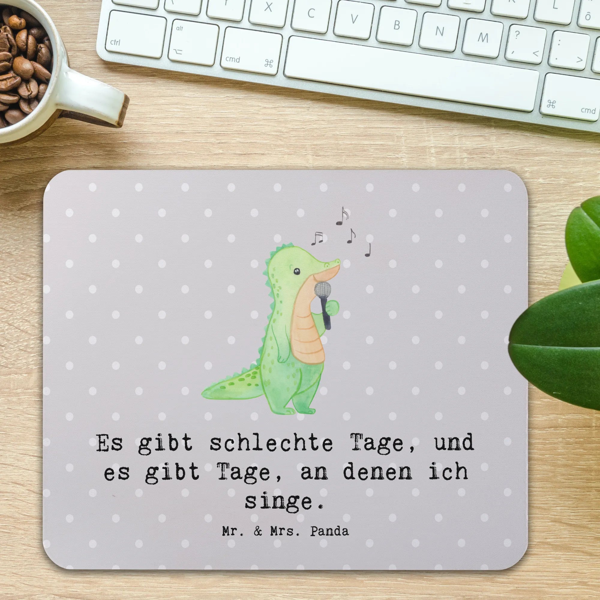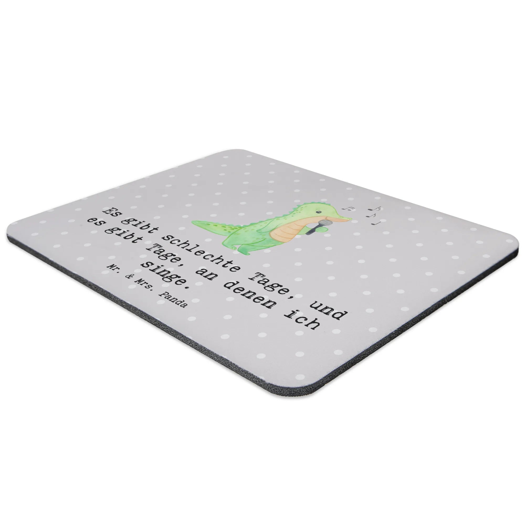 Bist du auf der Suche nach dem perfekten Geschenk für einen Hobbysänger oder einen Musikliebhaber? Dann ist das Mauspad "Krokodil Singen Tage" aus der Kollektion Hobby & Sport von Mr. & Mrs. Panda genau das Richtige! Dieses einzigartige Mauspad ist nicht nur praktisch, sondern auch ein wahrer Hingucker. Es zeigt ein zauberhaftes Krokodil, das begeistert ein wunderschönes Lied singt. Mit dem passendem Slogan "Es gibt schlechte Tage, und es gibt Tage, an denen ich singe." bringt es ein Lächeln auf dein Gesicht und sorgt für gute Laune im Arbeitsalltag oder im Homeoffice.