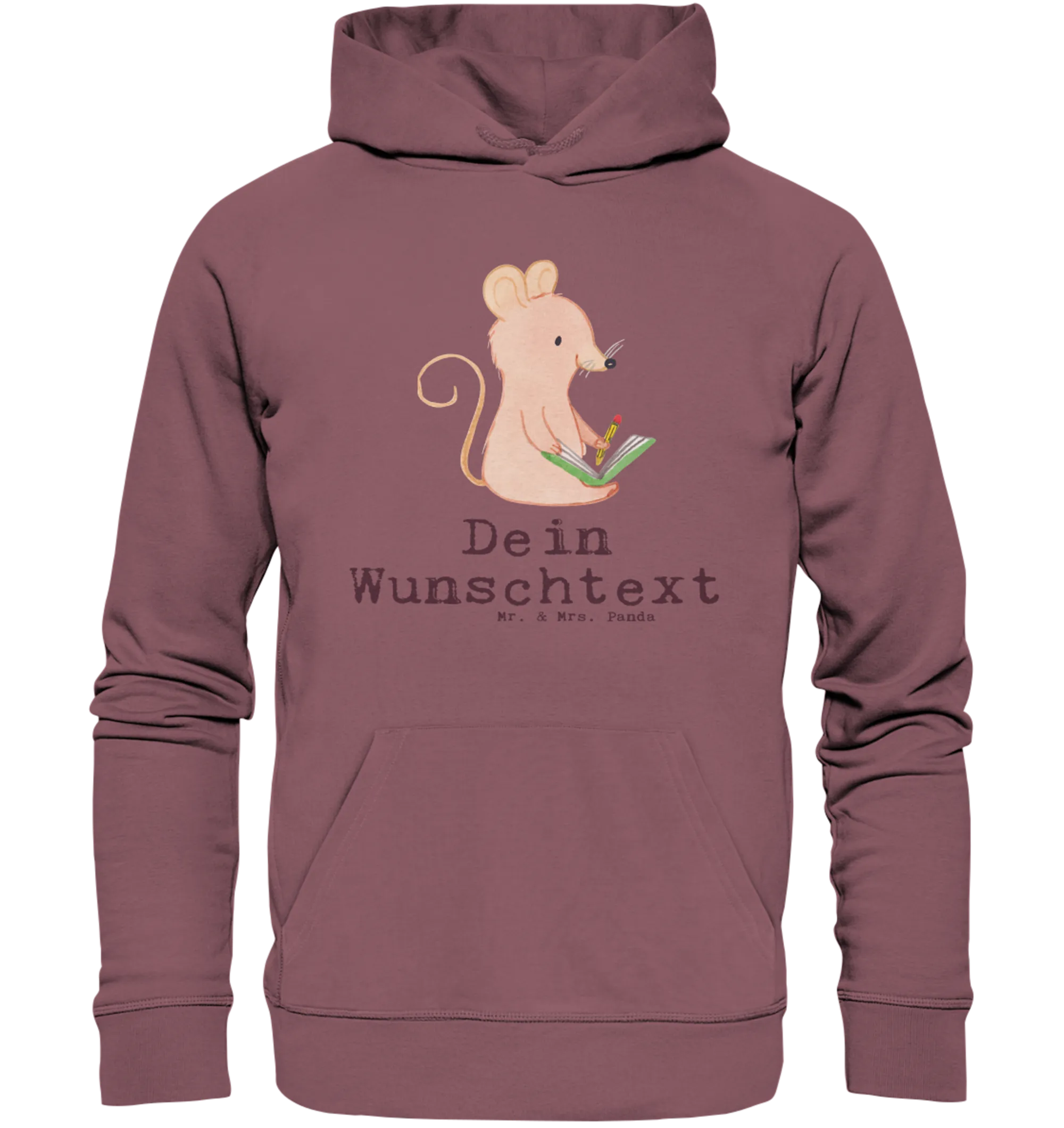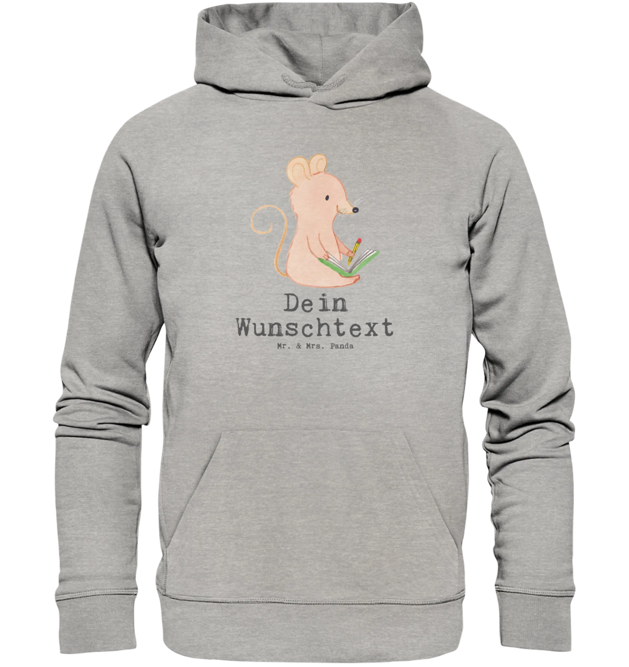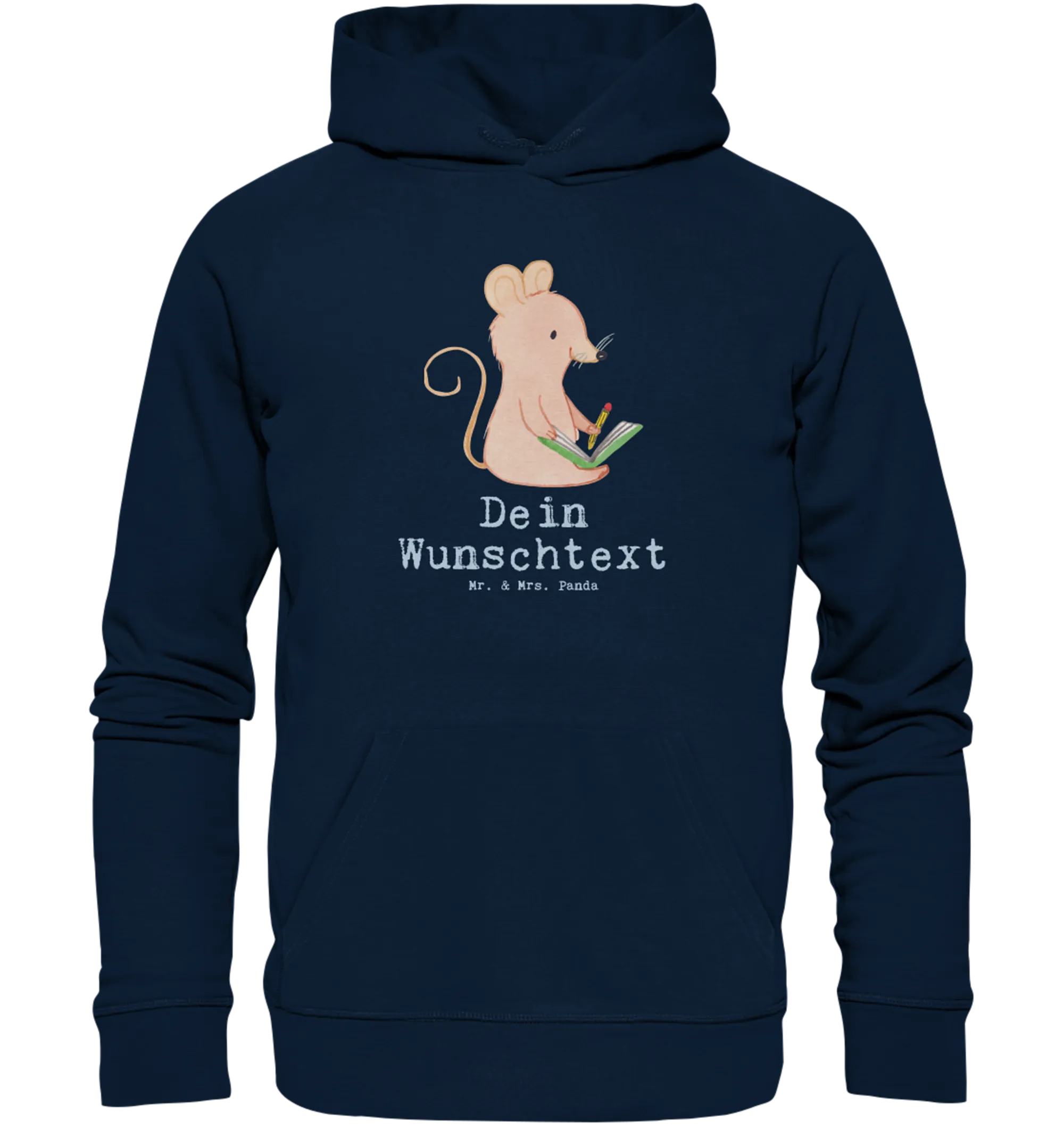 Entdecke den wundervollen personalisierten Hoodie mit dem Motiv "Maus Kreatives Schreiben Tage" aus der Kollektion Hobby & Sport von Mr. & Mrs. Panda!