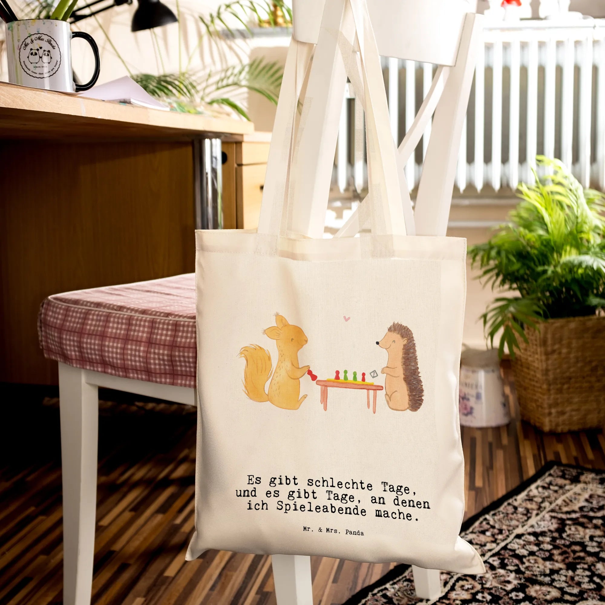 Diese zauberhafte Tragetasche kombiniert niedliche Illustration und praktischen Alltag: Ein Eichhörnchen und sein Igel-Freund genießen einen gemütlichen Spieleabend – dazu der liebevolle Spruch: Es gibt schlechte Tage, und es gibt Tage, an denen ich Spieleabende mache. Perfekt für alle, die Gesellschaftsspiele, Brettspiele und gesellige Abende lieben.