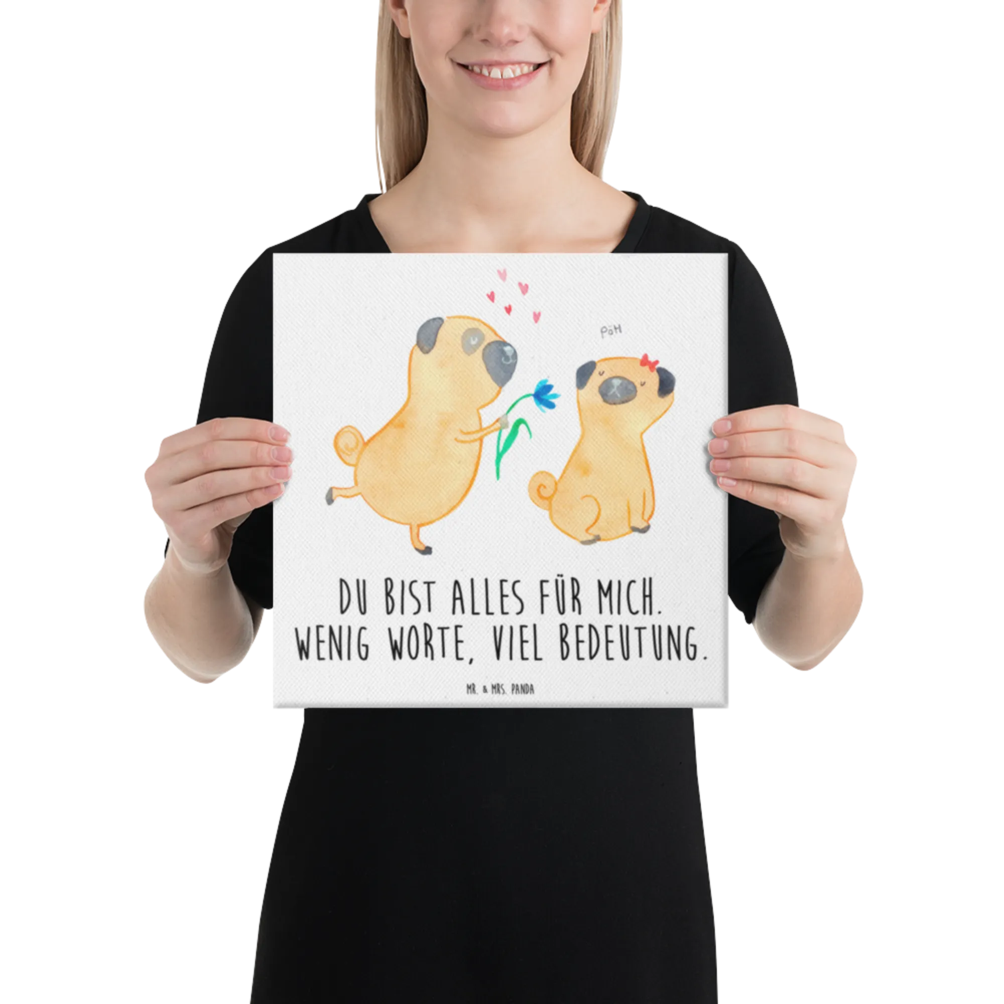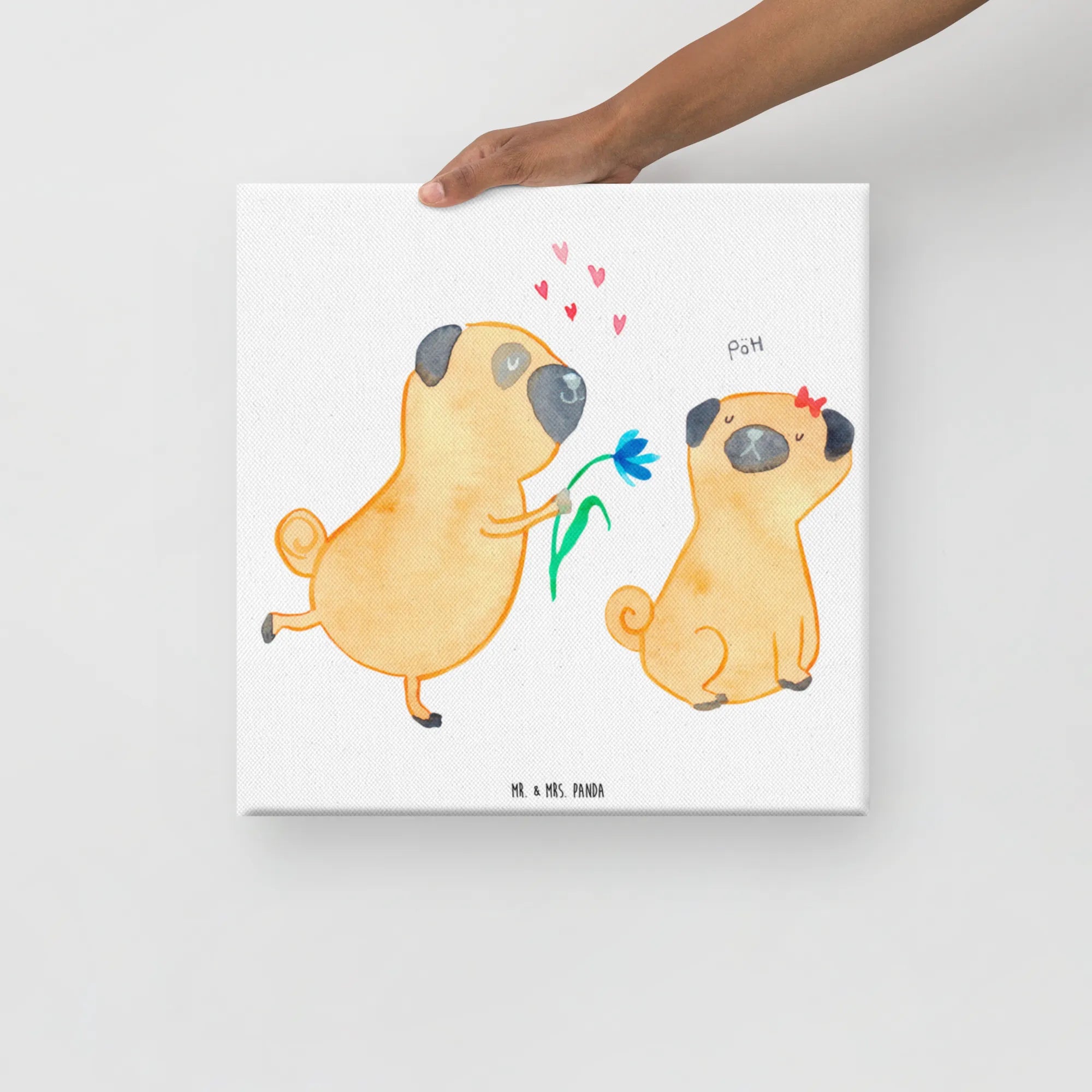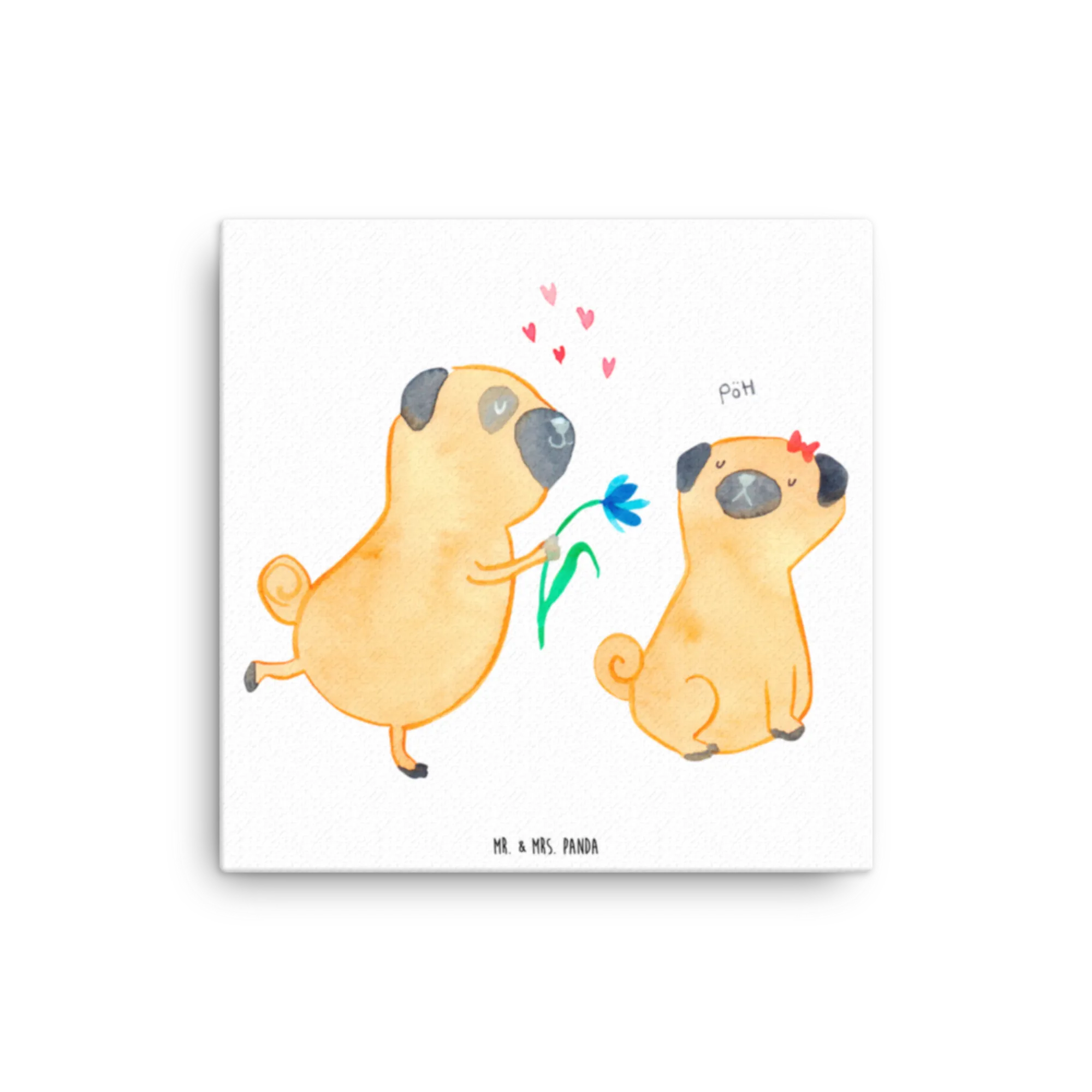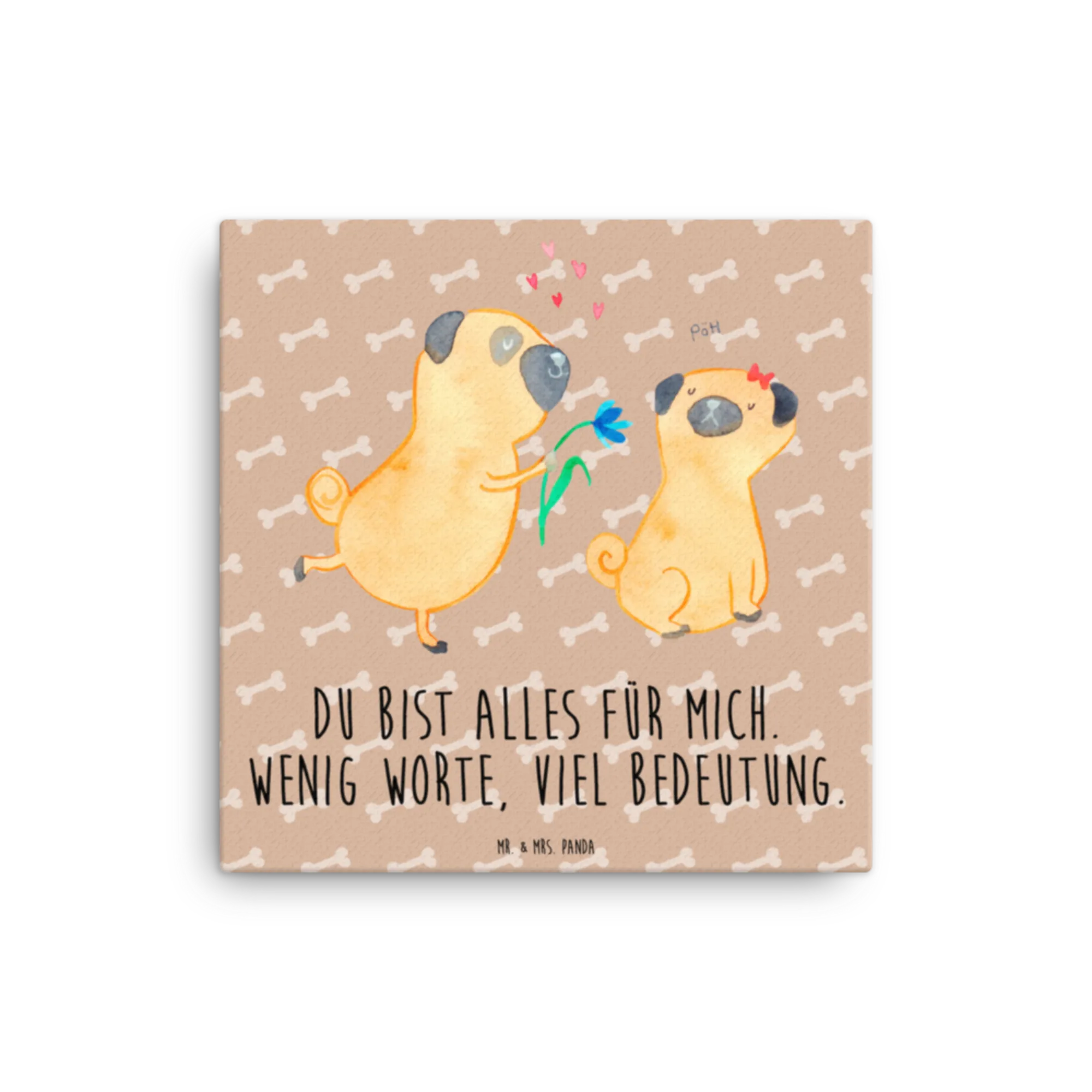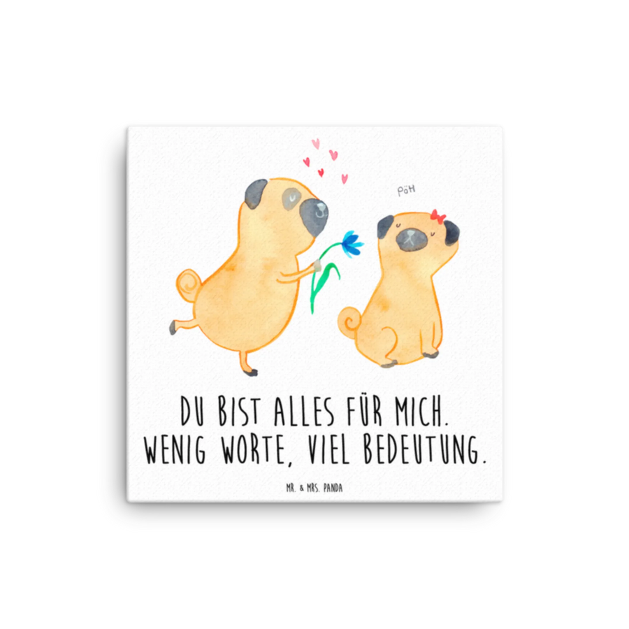 Obraz na płótnie mops Zakochani - 30 x 30 cm - z napisem - biały
