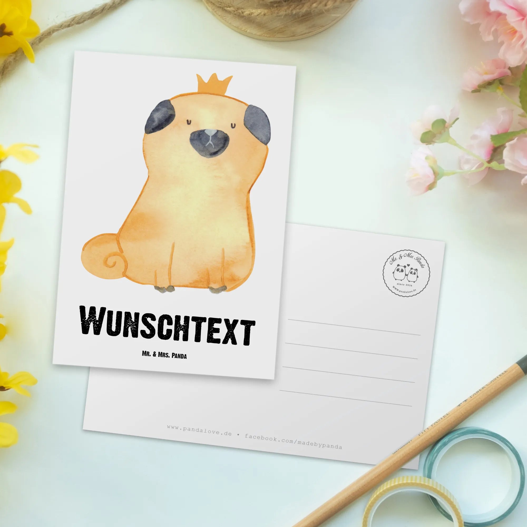 Personalizowana kartka pocztowa mops korona