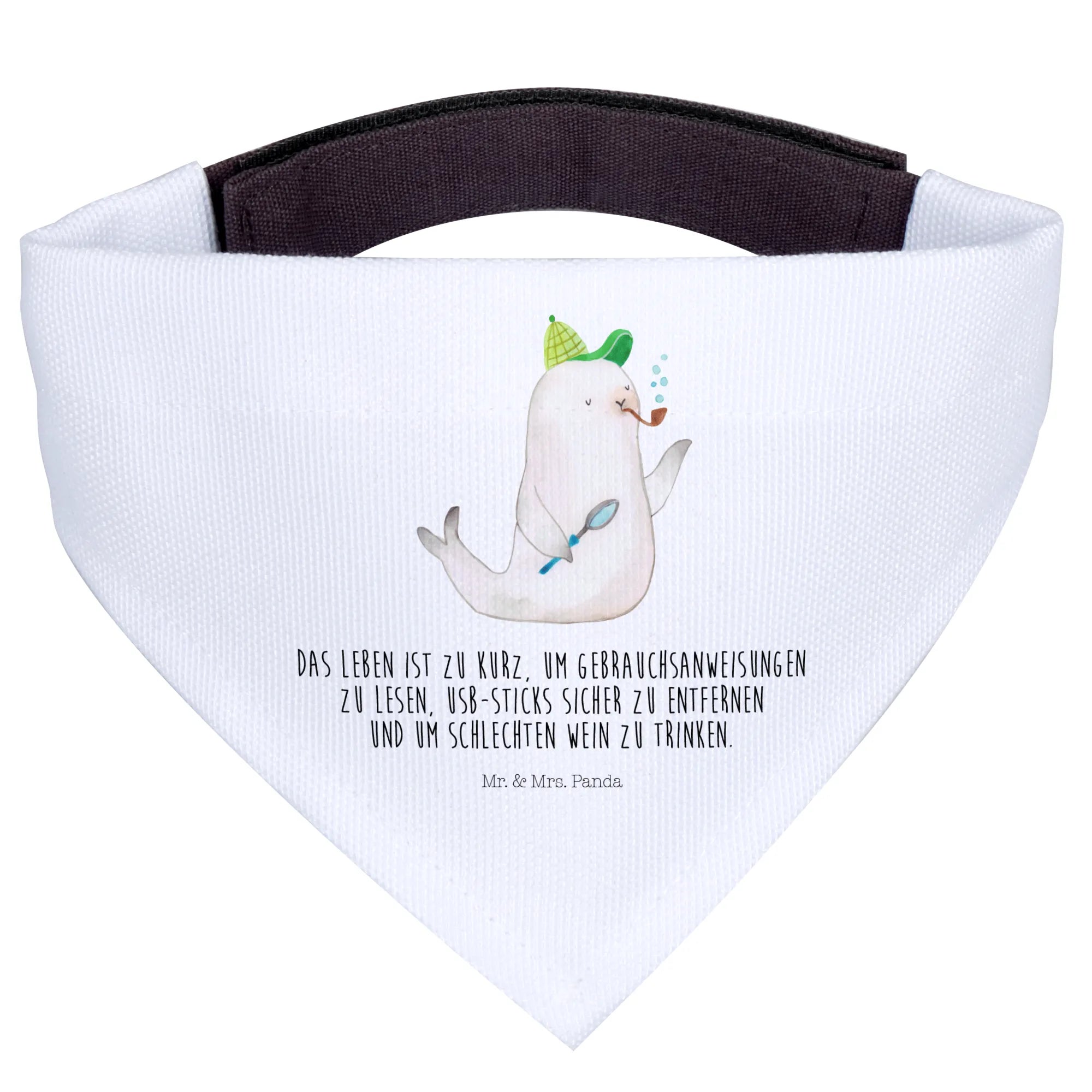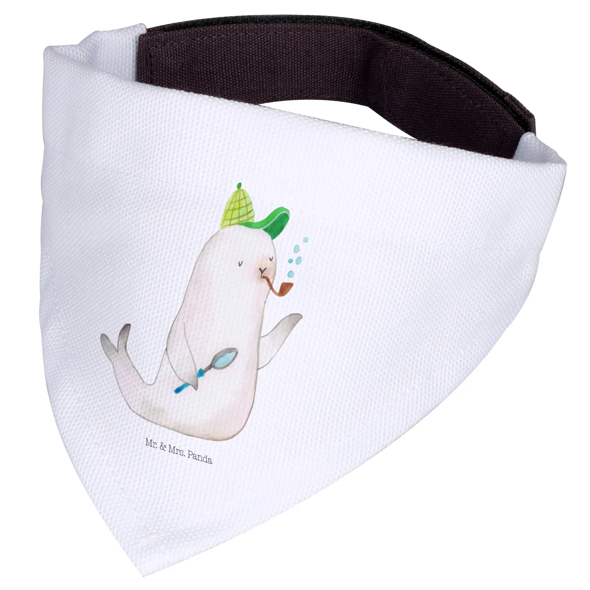 Bandana dla psa M foka Sherlock - Hundehalstuch M - z napisem - biały