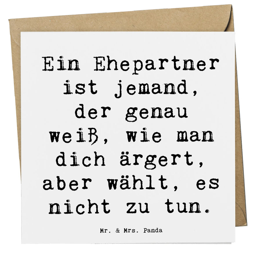 Entdecke die perfekte Grußkarte für Deinen Ehepartner! Unsere Deluxe Karte aus der bezaubernden Kollektion von Mr. & Mrs. Panda ist mehr als nur ein Stück Papier; sie ist ein Ausdruck von Liebe und Verbundenheit. Mit einem romantischen Design, das den Slogan "Ein Ehepartner ist jemand, der genau weiß, wie man dich ärgert, aber wählt, es nicht zu tun." trägt, bringt diese Karte ein Lächeln auf die Gesichter derer, die Du liebst.