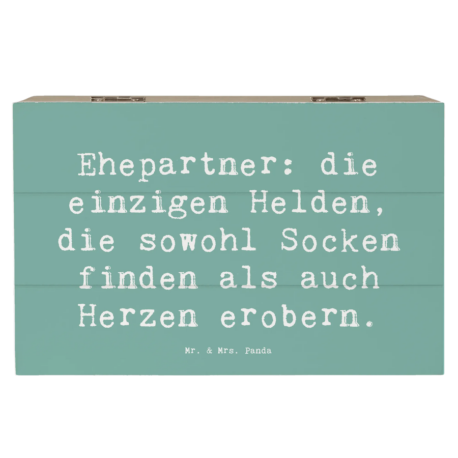 Entdecke die bezaubernde Holzkiste von Mr. & Mrs. Panda, die das perfekte Geschenk für Deinen Ehepartner ist! Mit liebevollen Motiven und dem witzigen Spruch: 'Ehepartner: die einzigen Helden, die sowohl Socken finden als auch Herzen erobern.' ist diese wunderschöne Kiste nicht nur ein echter Hingucker, sondern auch eine wunderbare Möglichkeit, Erinnerungen zu bewahren.