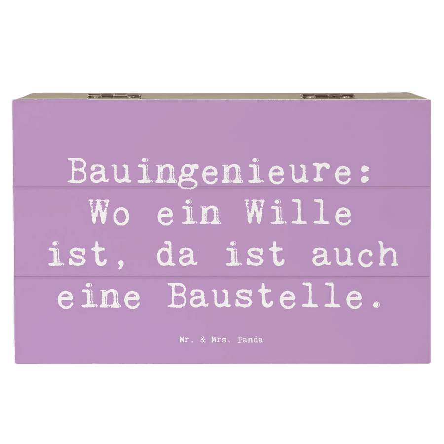 Die Holzkiste "Bauingenieur" von Mr. & Mrs. Panda ist ein liebevolles Geschenk für alle Bauingenieure und solche, die es werden wollen! Diese wunderschöne Kiste verbindet praktische Anwendung mit persönlichem Charme. Dank ihres einzigartigen Spruchs "Bauingenieure: Wo ein Wille ist, da ist auch eine Baustelle" ist sie mehr als nur ein Aufbewahrungsort.