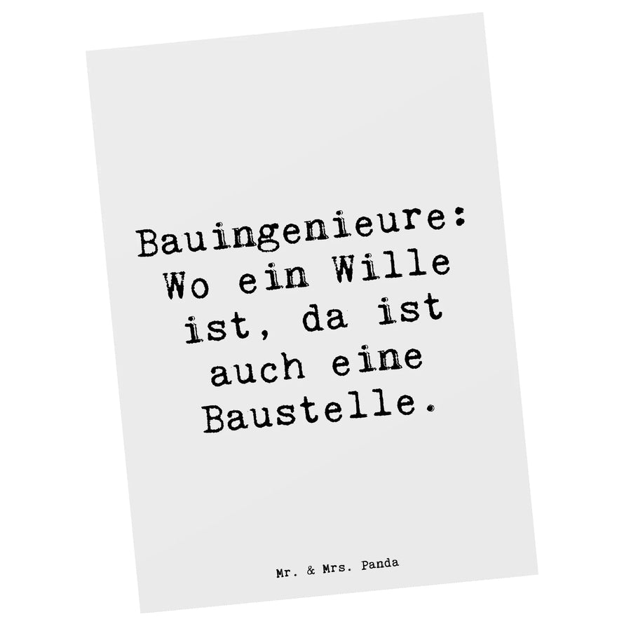 Postkarte Spruch Bauingenieure: Wo ein Wille ist, da ist auch eine Baustelle. - Weiß