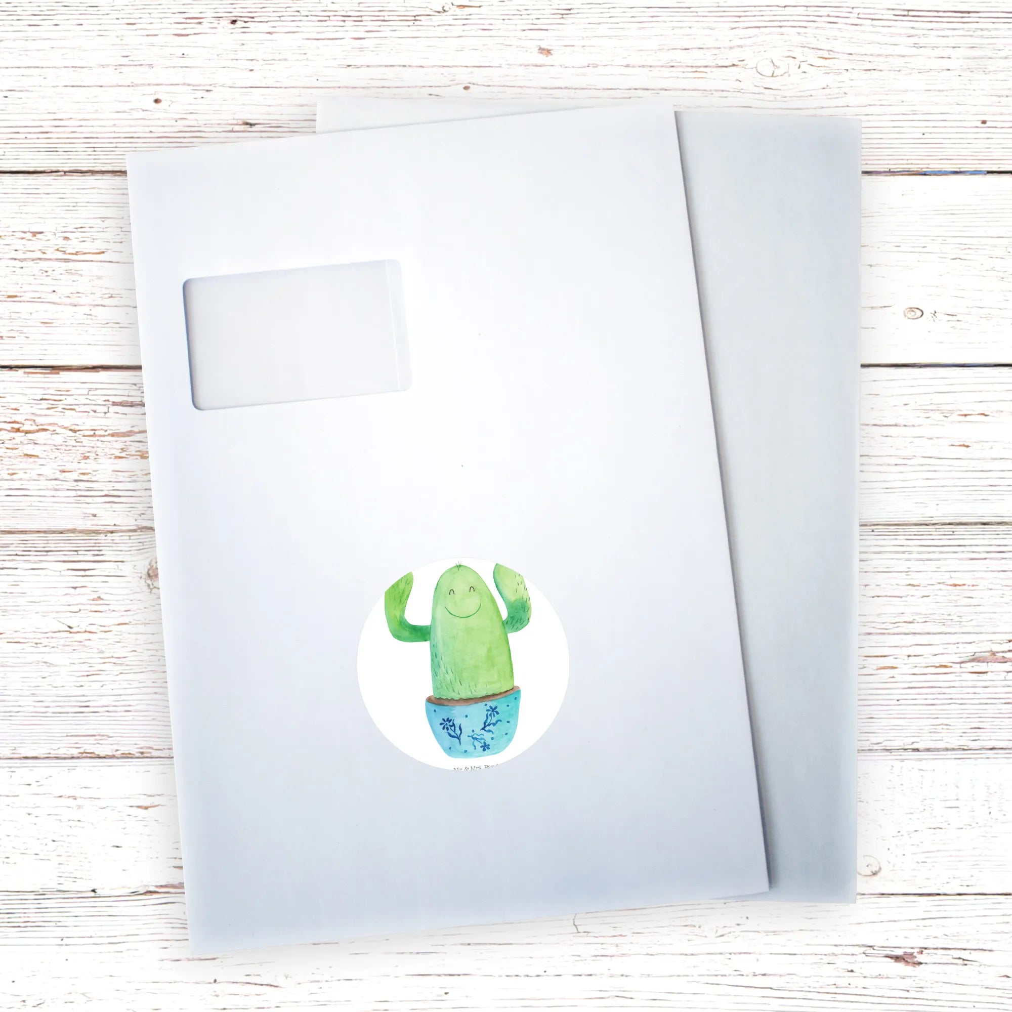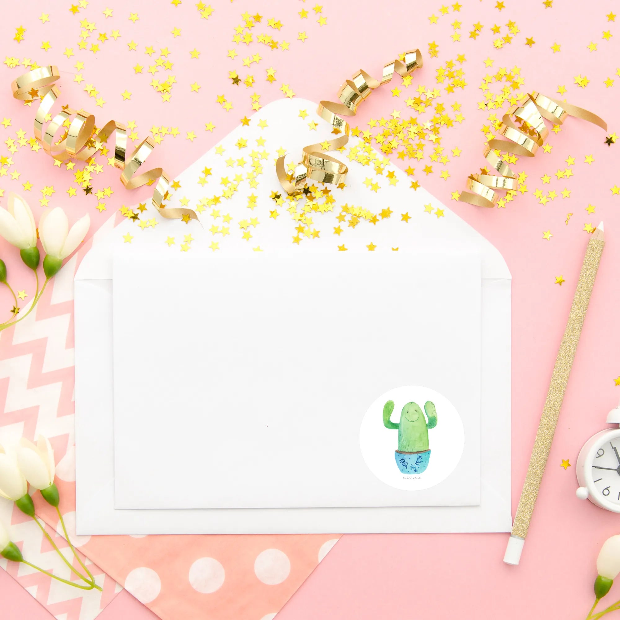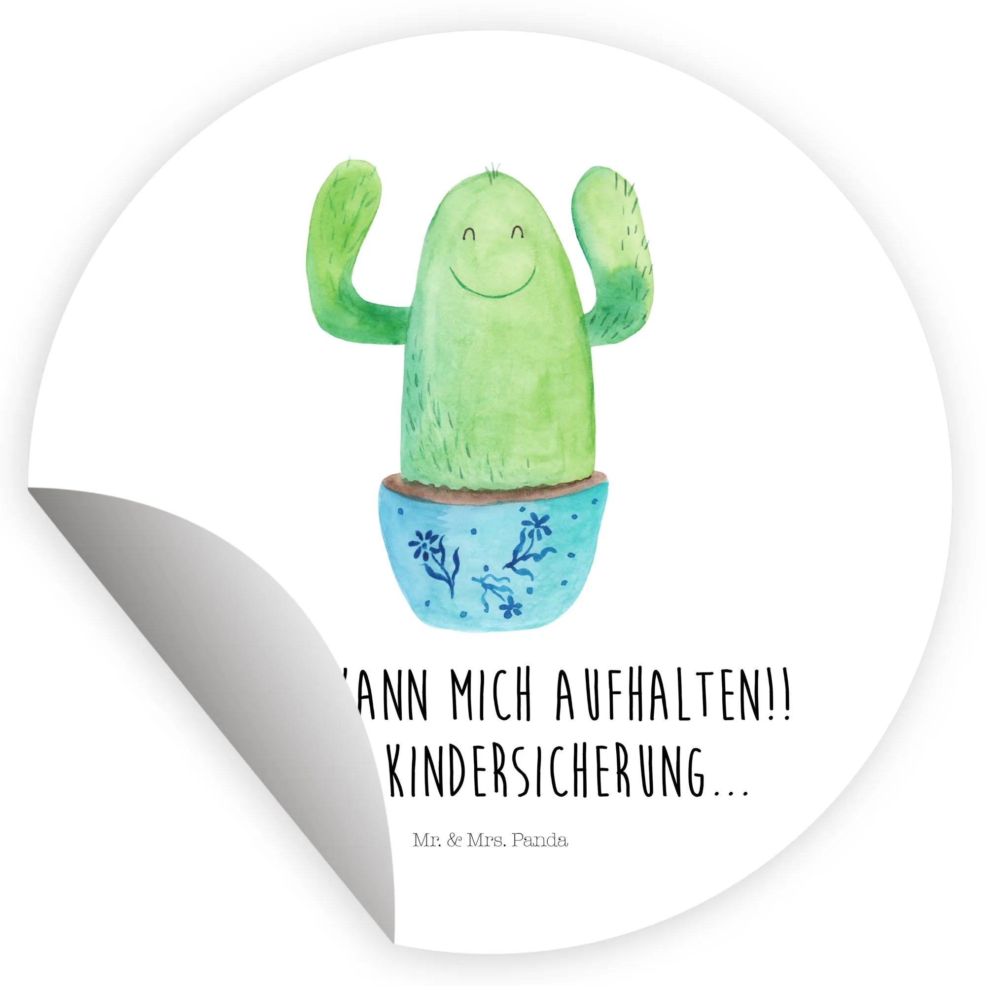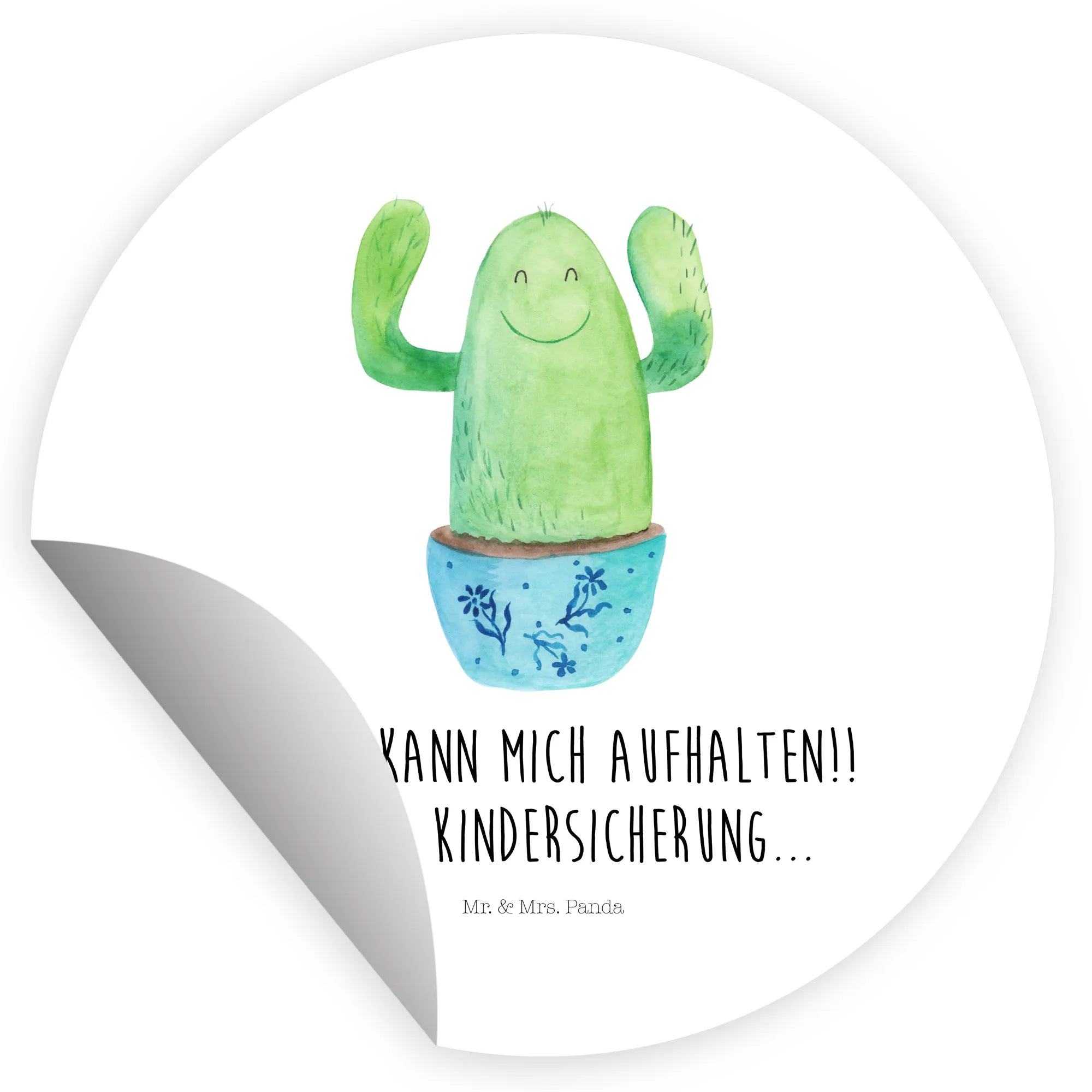 120mm okrągła naklejka kaktus Szczęśliwy - 80mm Rund Aufkleber - z napisem