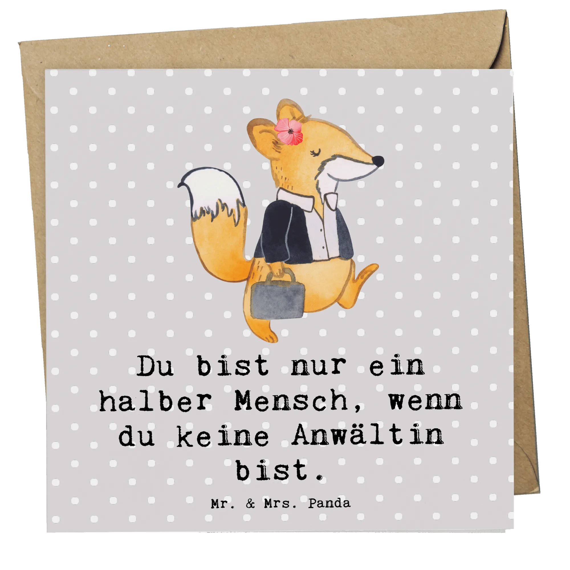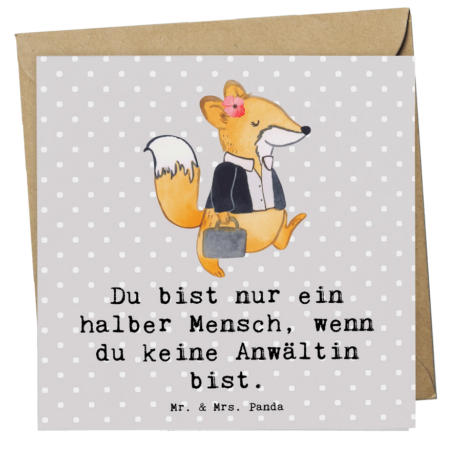 Die Deluxe Karte "Anwältin mit Herz" aus der besonderen Berufe-Kollektion von Mr. & Mrs. Panda ist das perfekte Geschenk für alle, die das Recht lieben und die in ihrem beruflichen Umfeld Großes leisten. Diese wunderschöne und besonders hochwertige quadratische Karte ist aus 300 Gramm starkem Karton gefertigt und mit einem liebvollen Motiv und dem Spruch „Du bist nur ein halber Mensch, wenn du keine Anwältin bist“ bedruckt. Sie ist nicht nur ein wunderbarer Gruß, sondern auch eine tolle Möglichkeit, um Wertschätzung zu zeigen und Danke zu sagen.